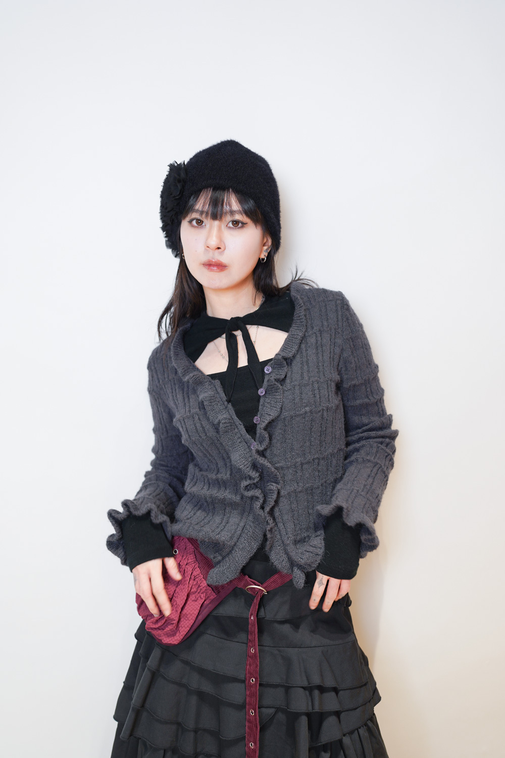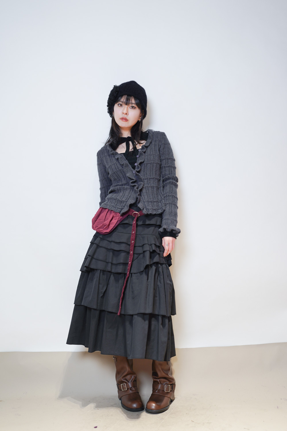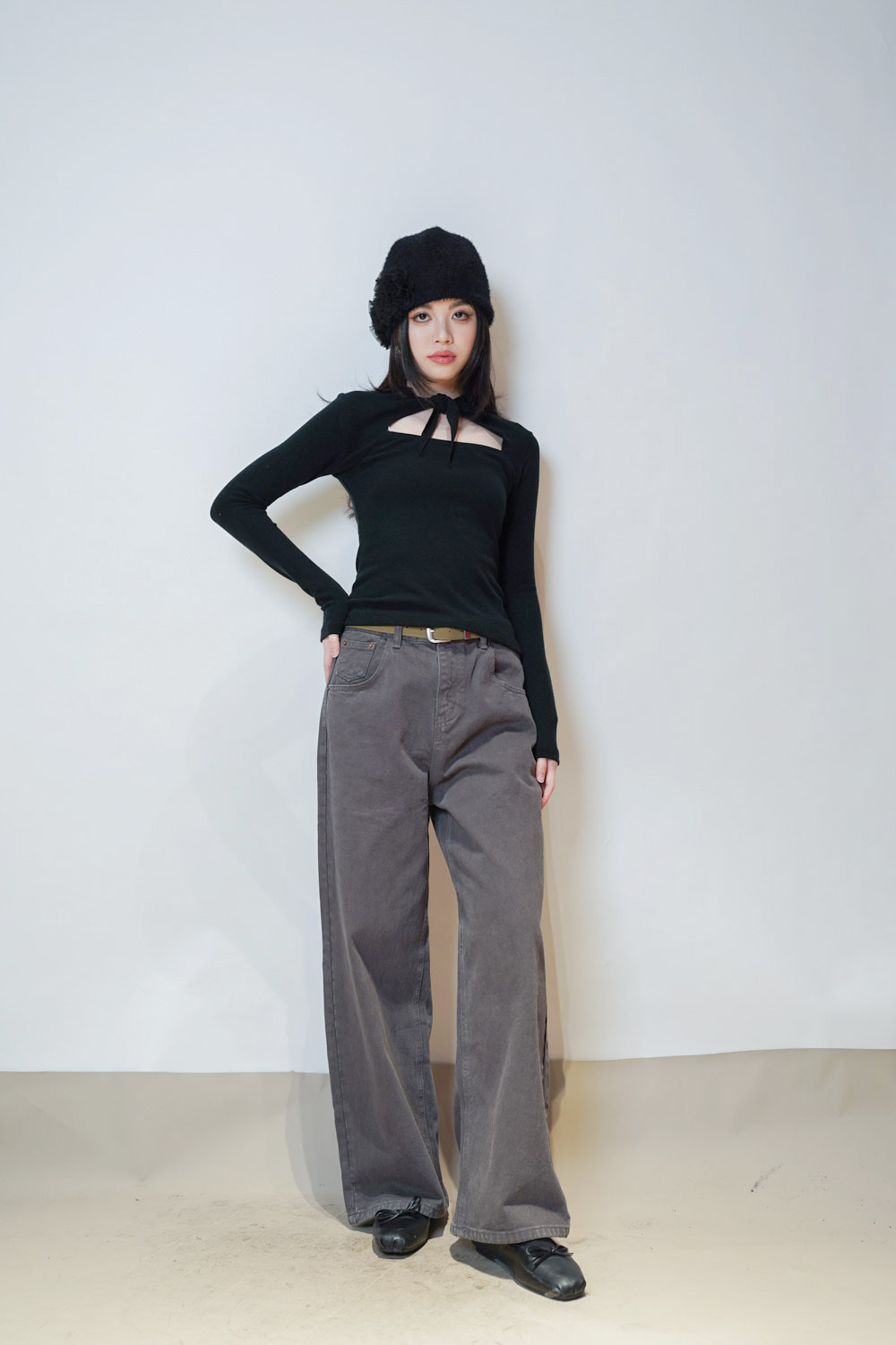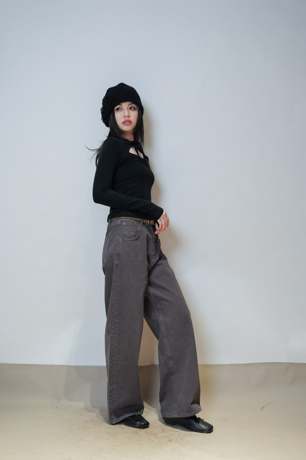 flower round beanies (WHITE/BROWN/BLACK)