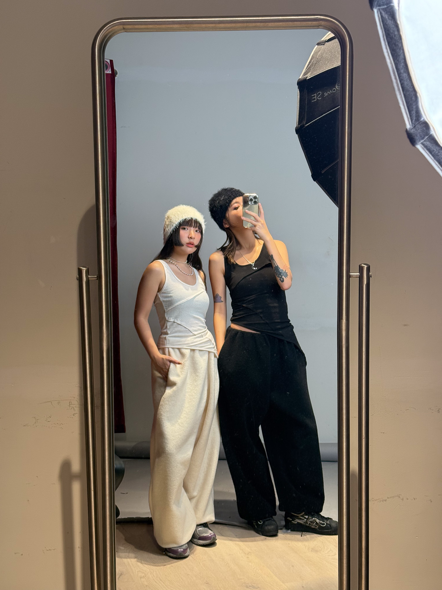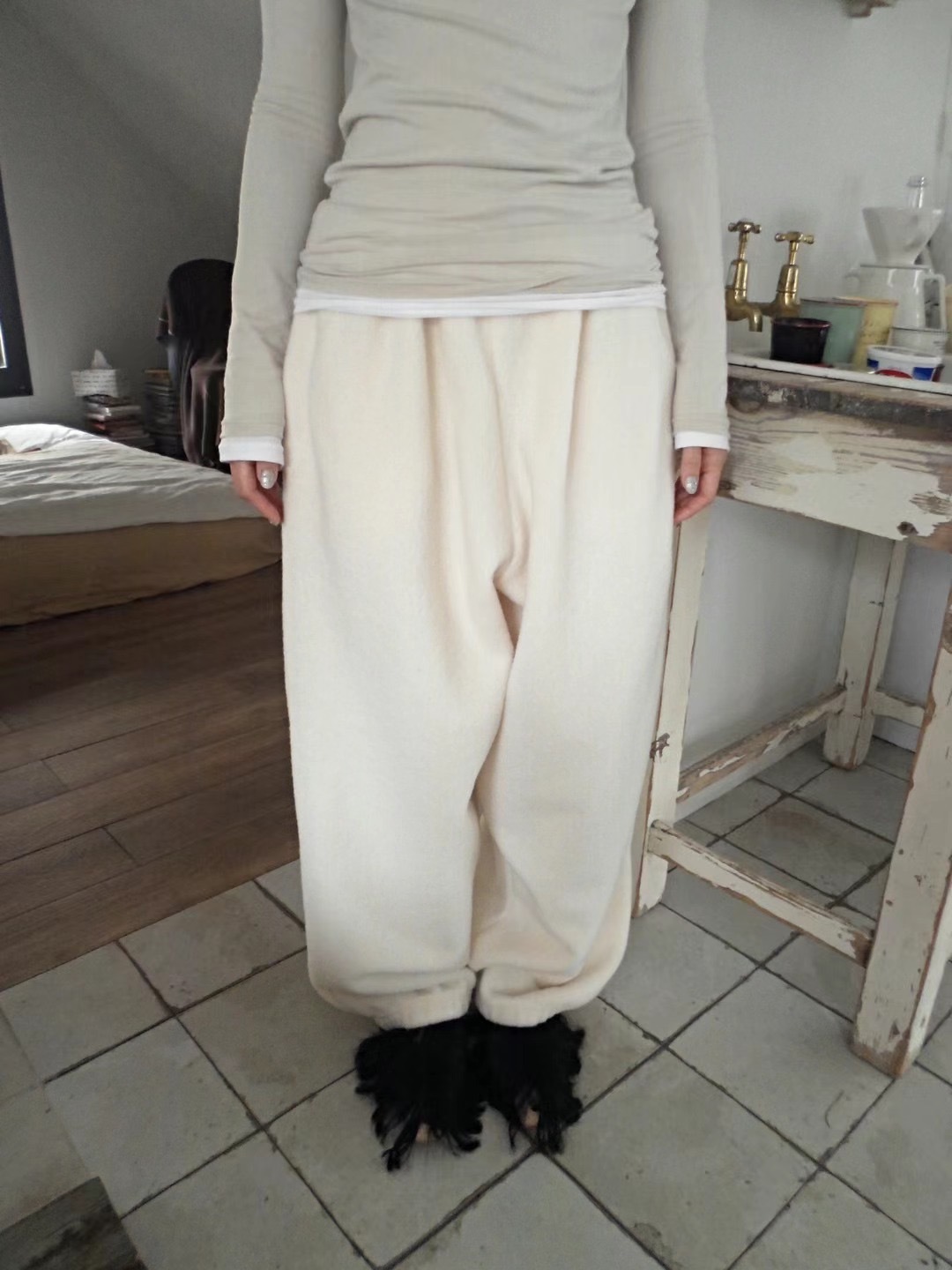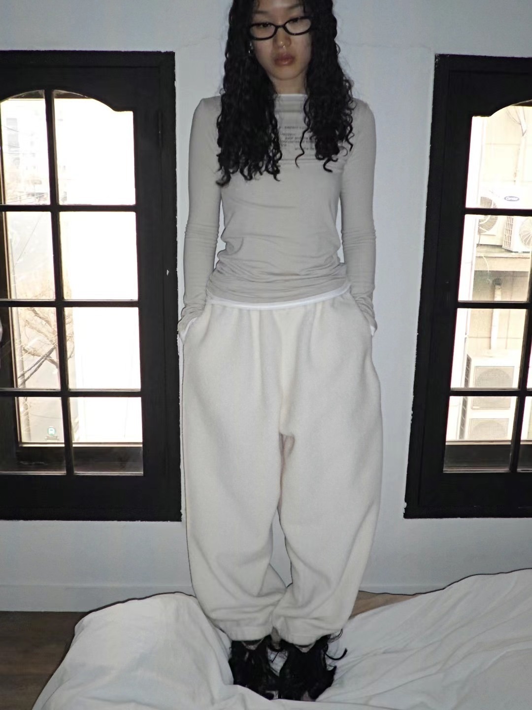 Fluffy Soft Fleece Pants (WHITE) (WHITE / BLACK)