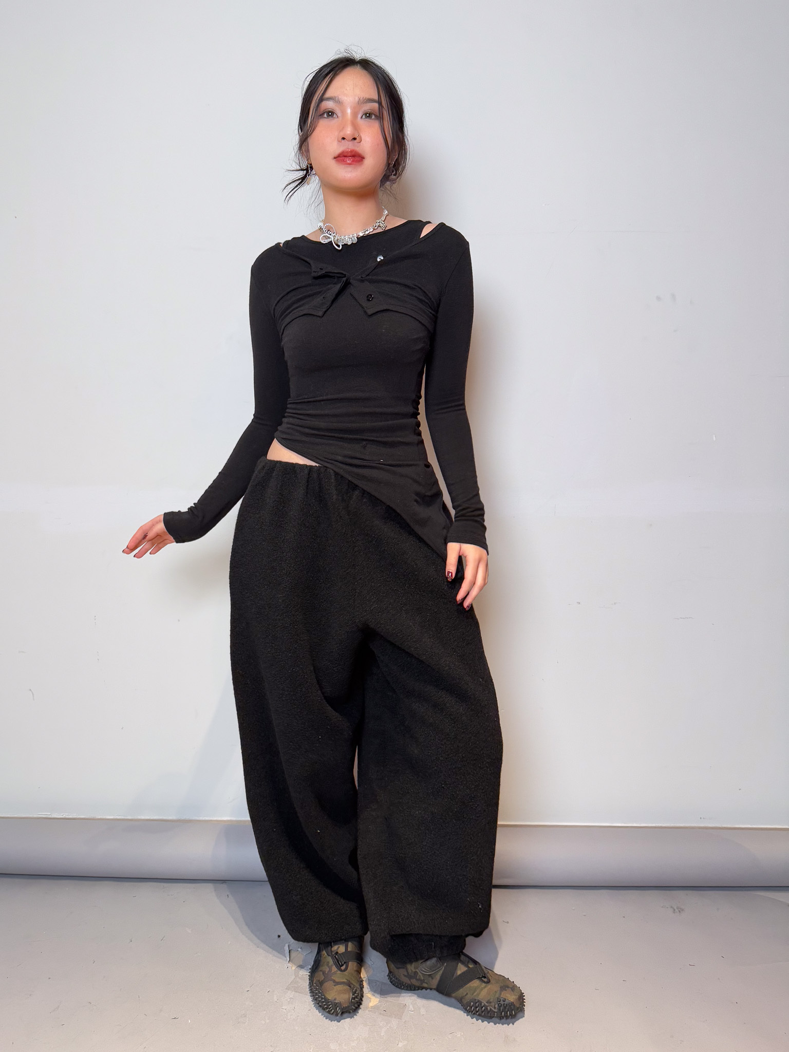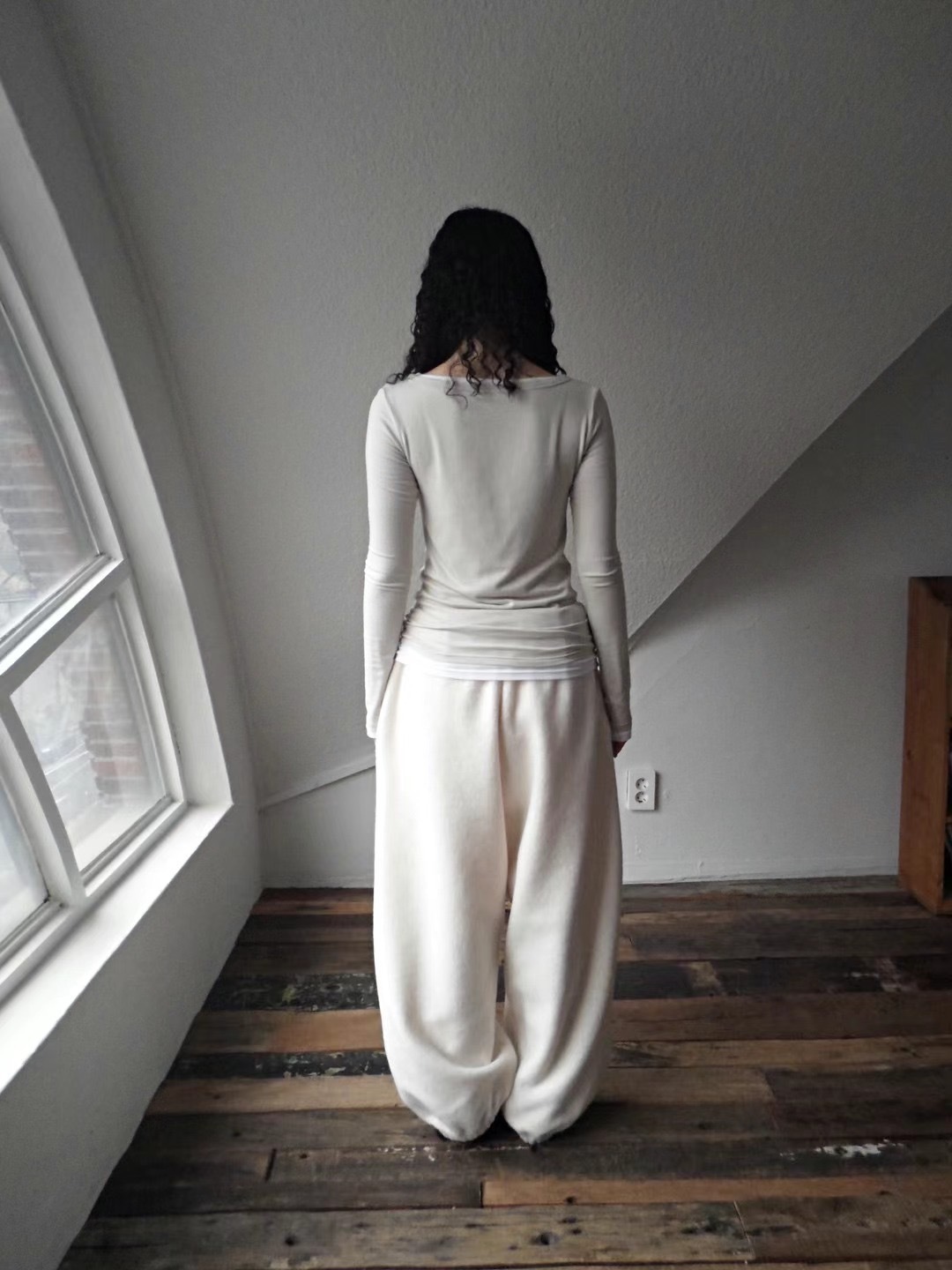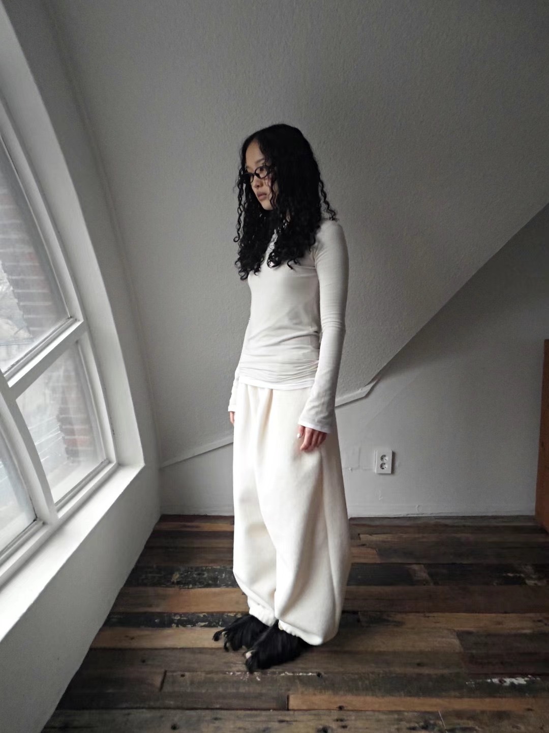 Fluffy Soft Fleece Pants (WHITE) (WHITE / BLACK)