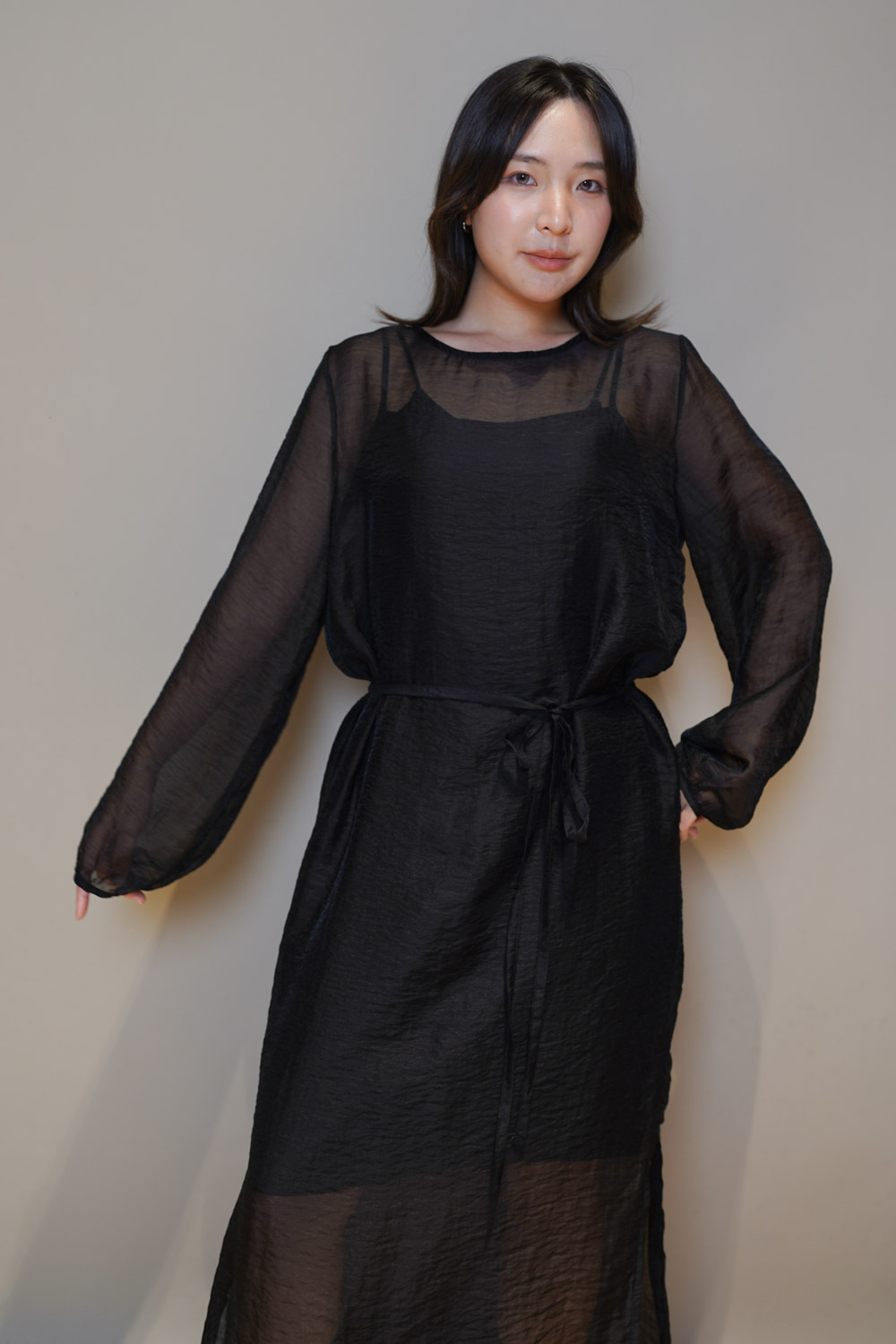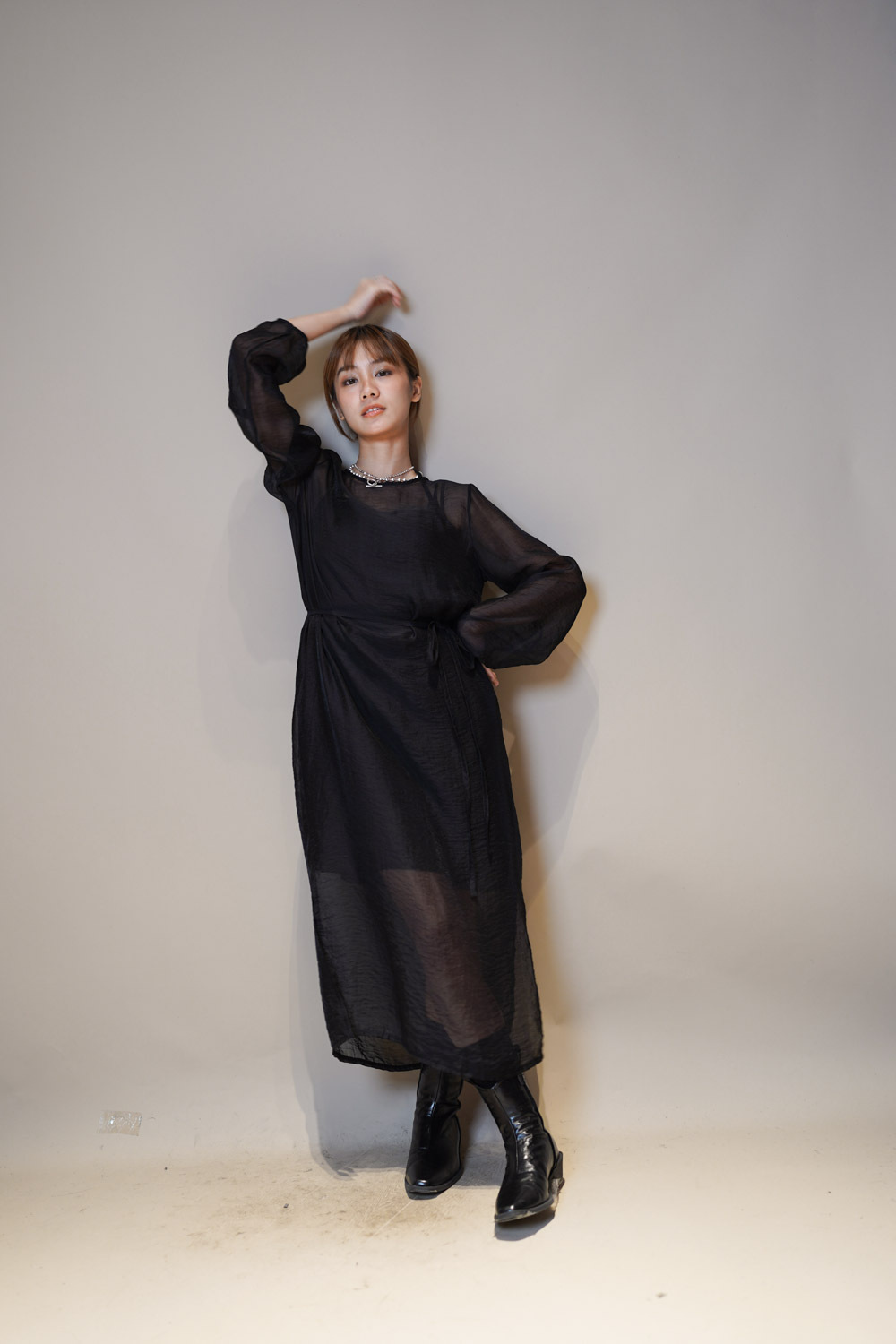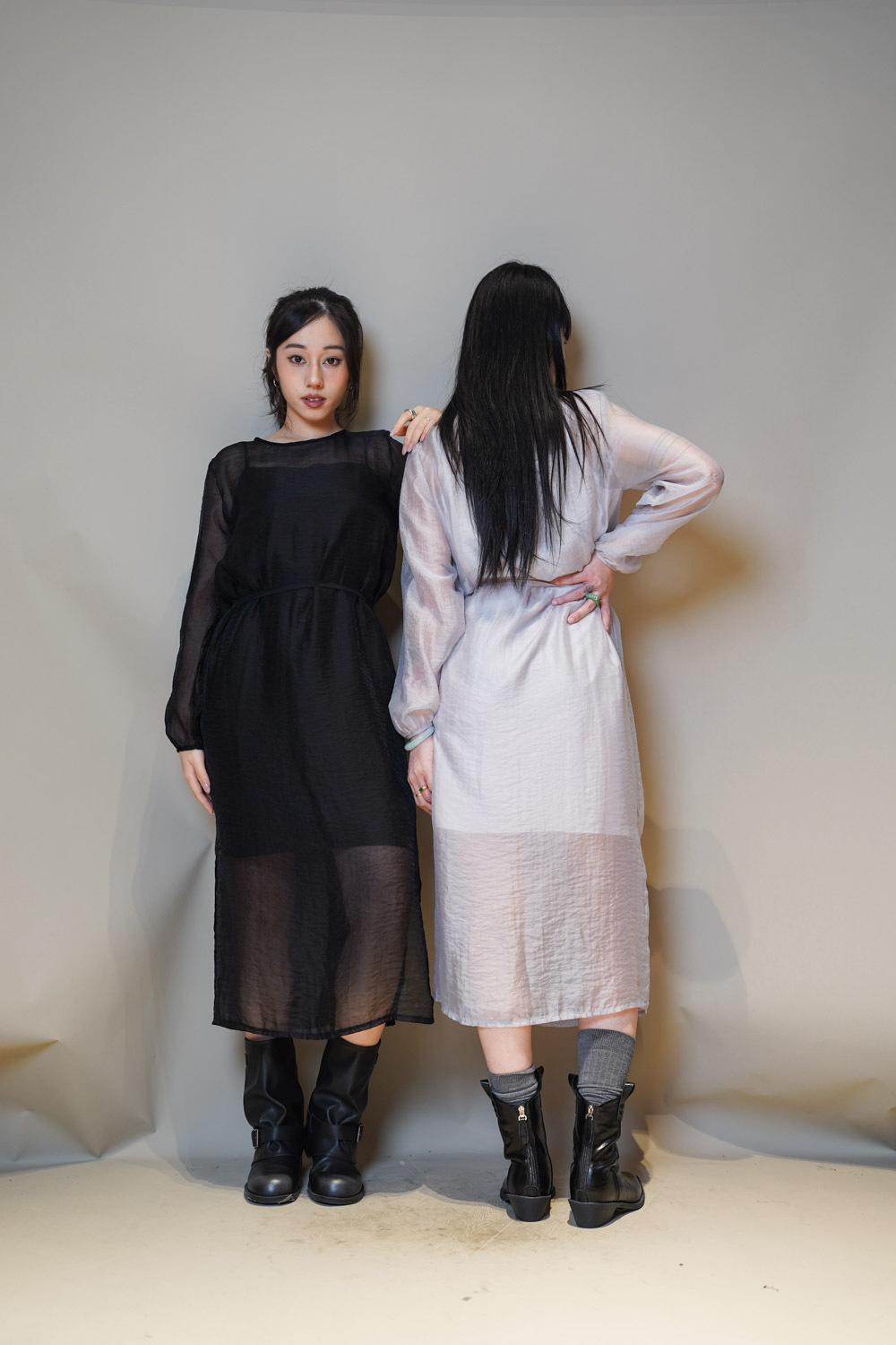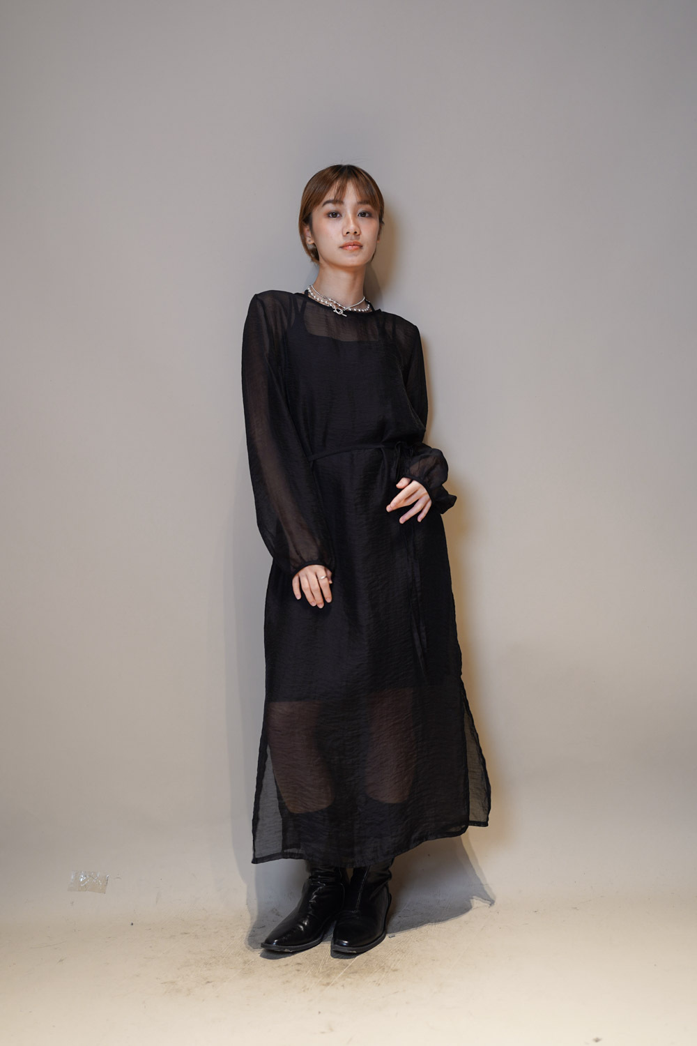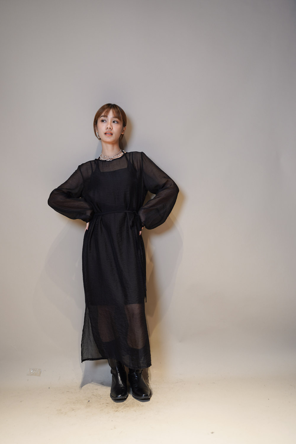 Foggy layered dress with waist belt (LIGHT GREY/BLACK)