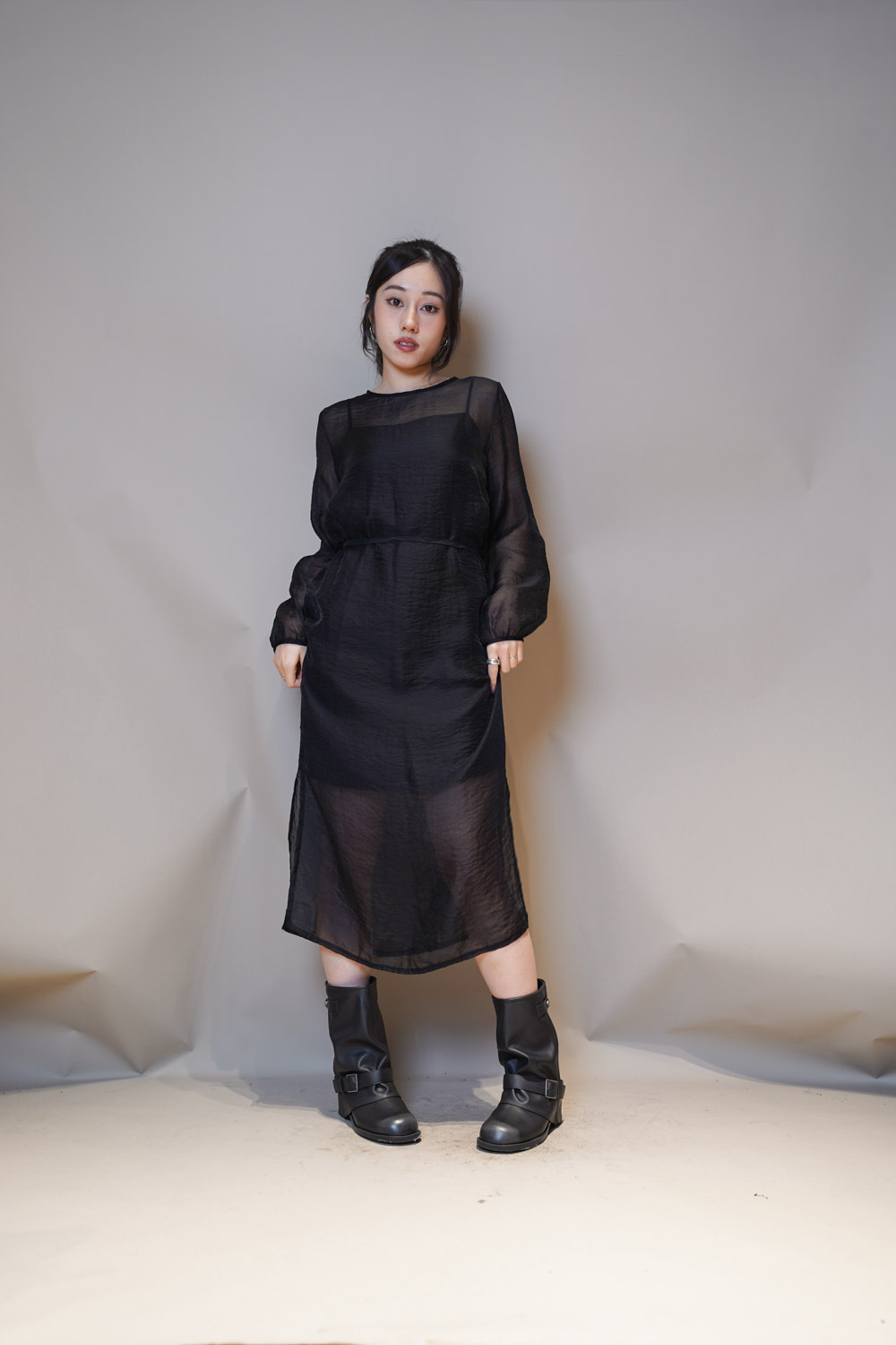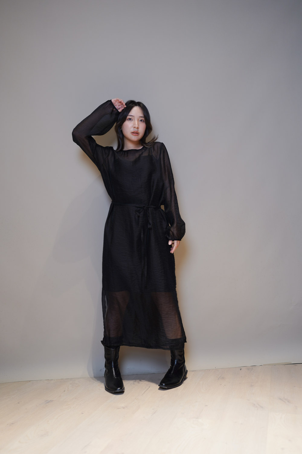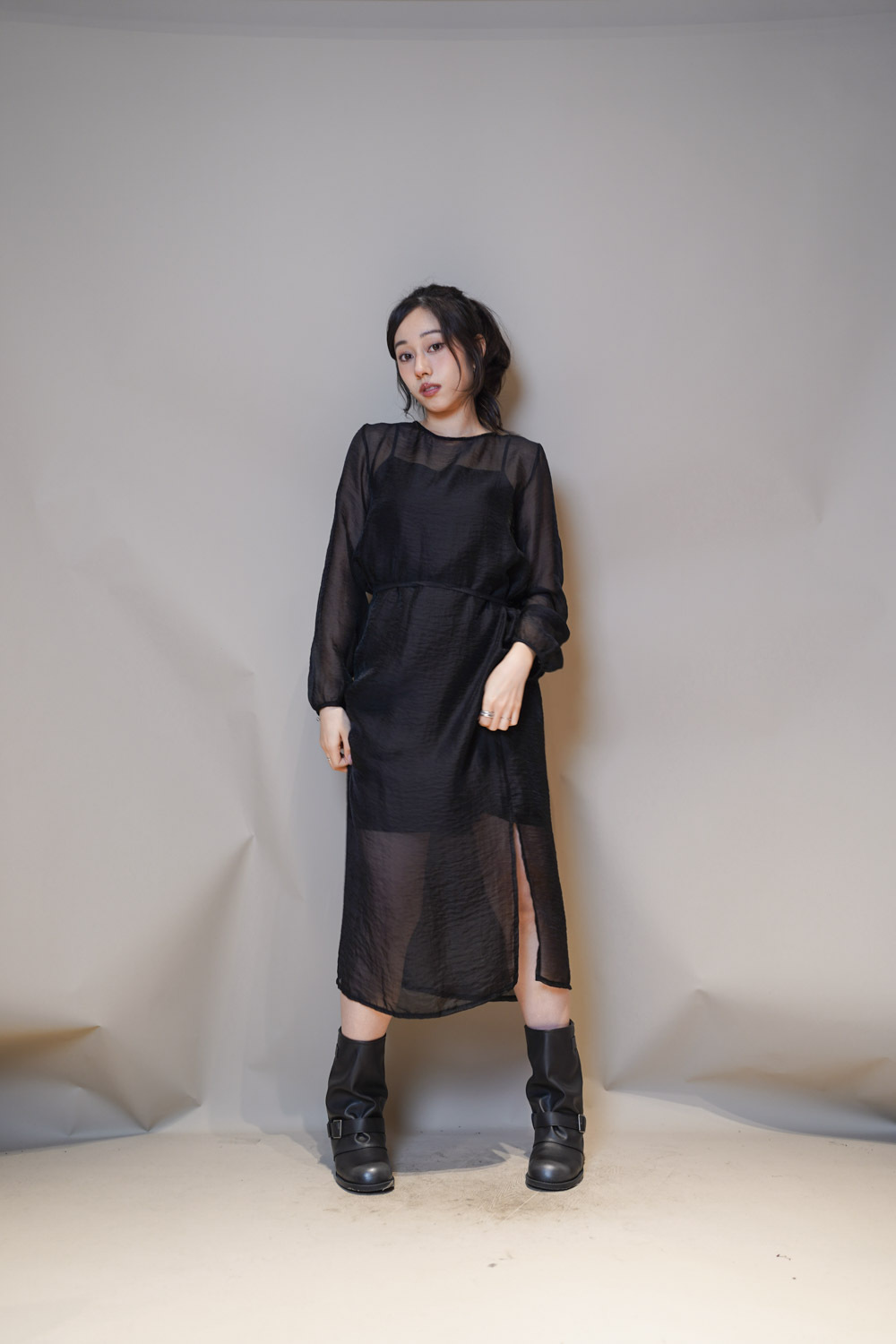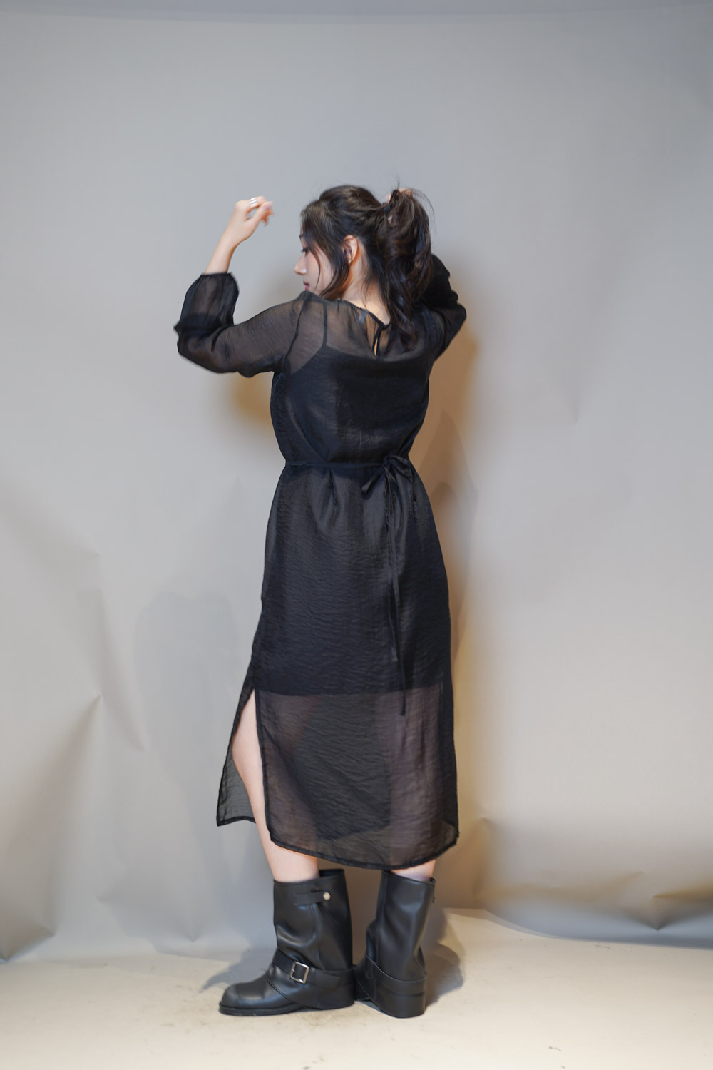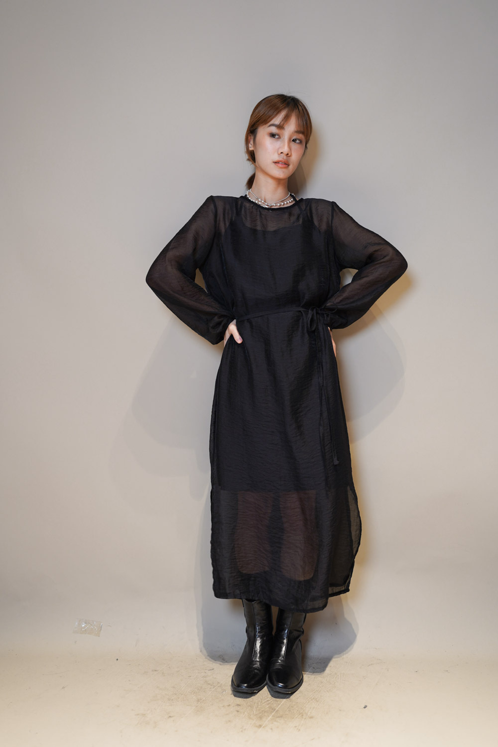 Foggy layered dress with waist belt (LIGHT GREY/BLACK)