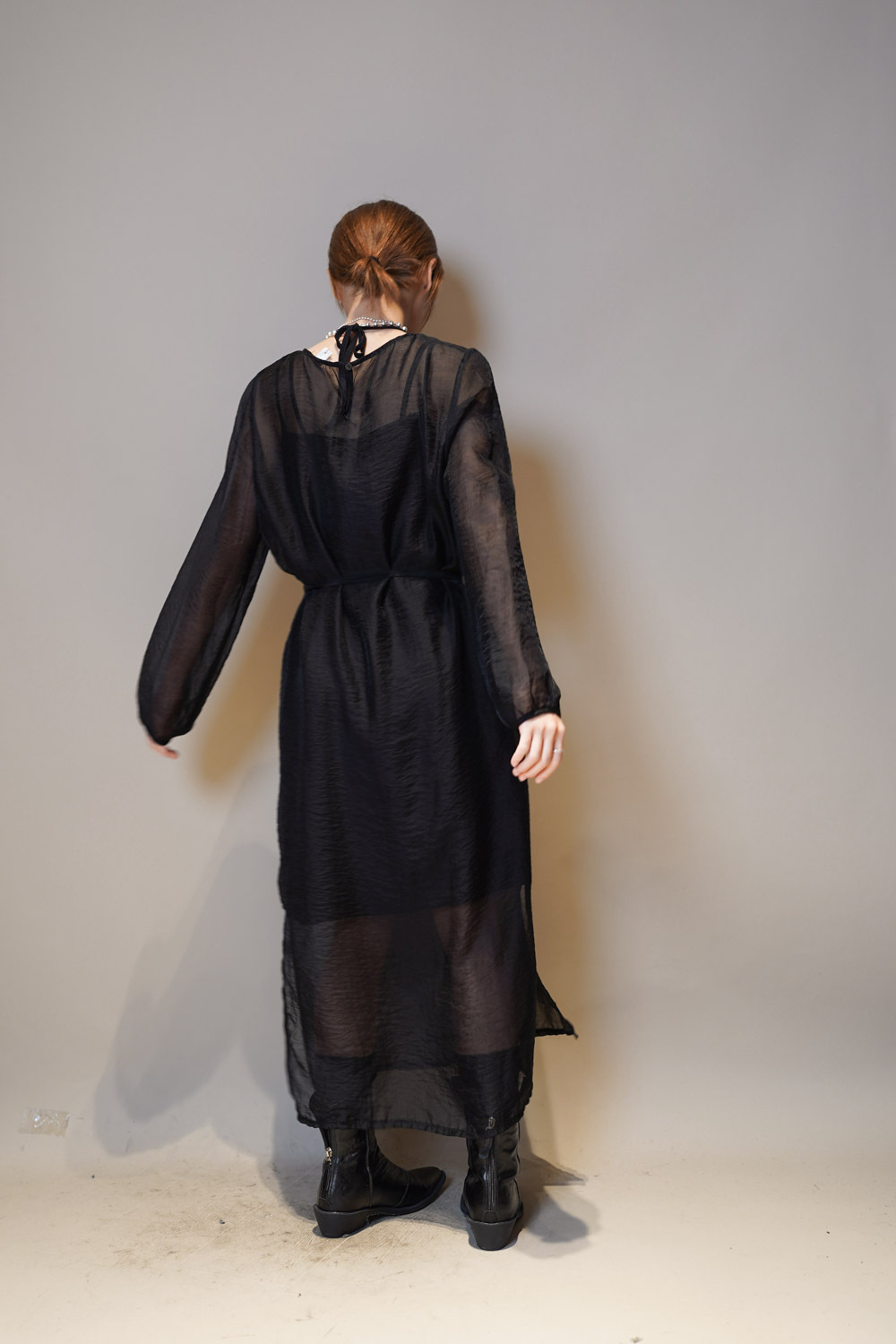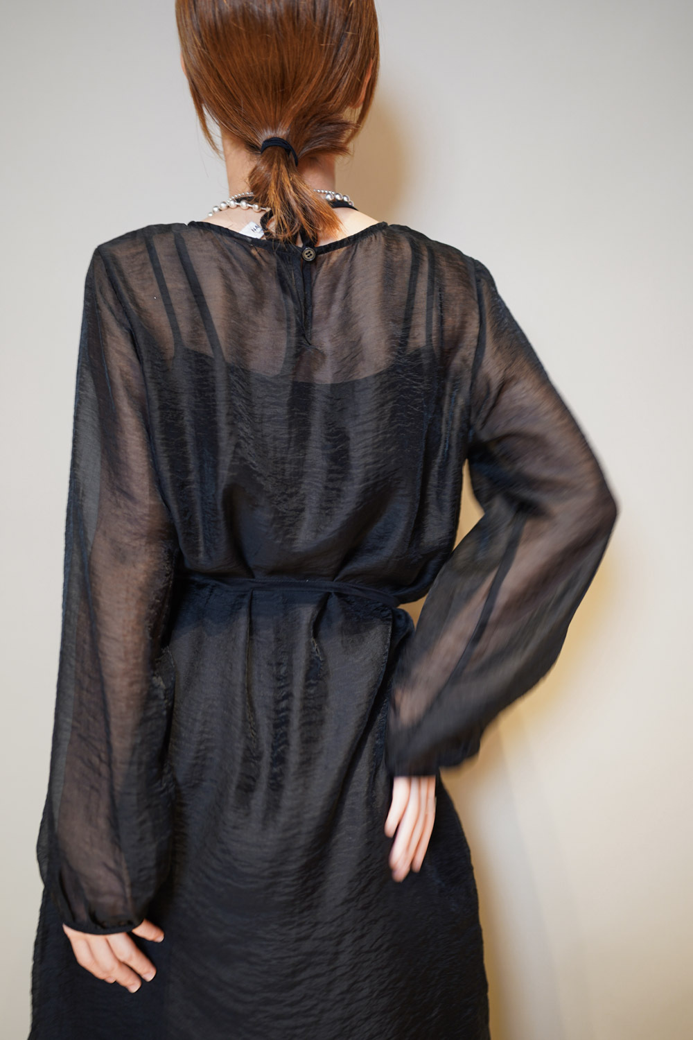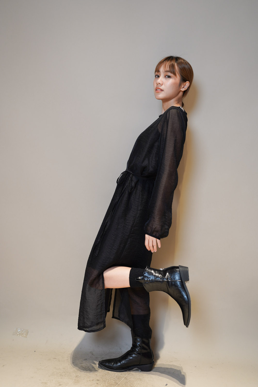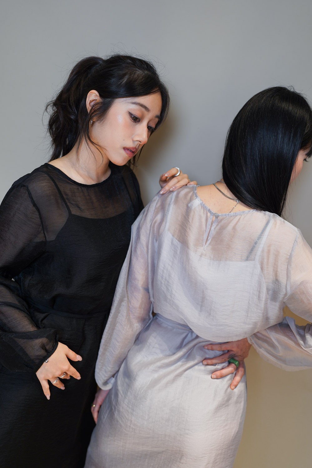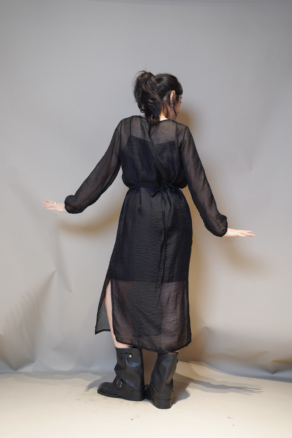 Foggy layered dress with waist belt (LIGHT GREY/BLACK)