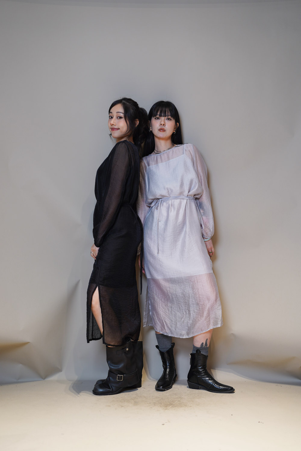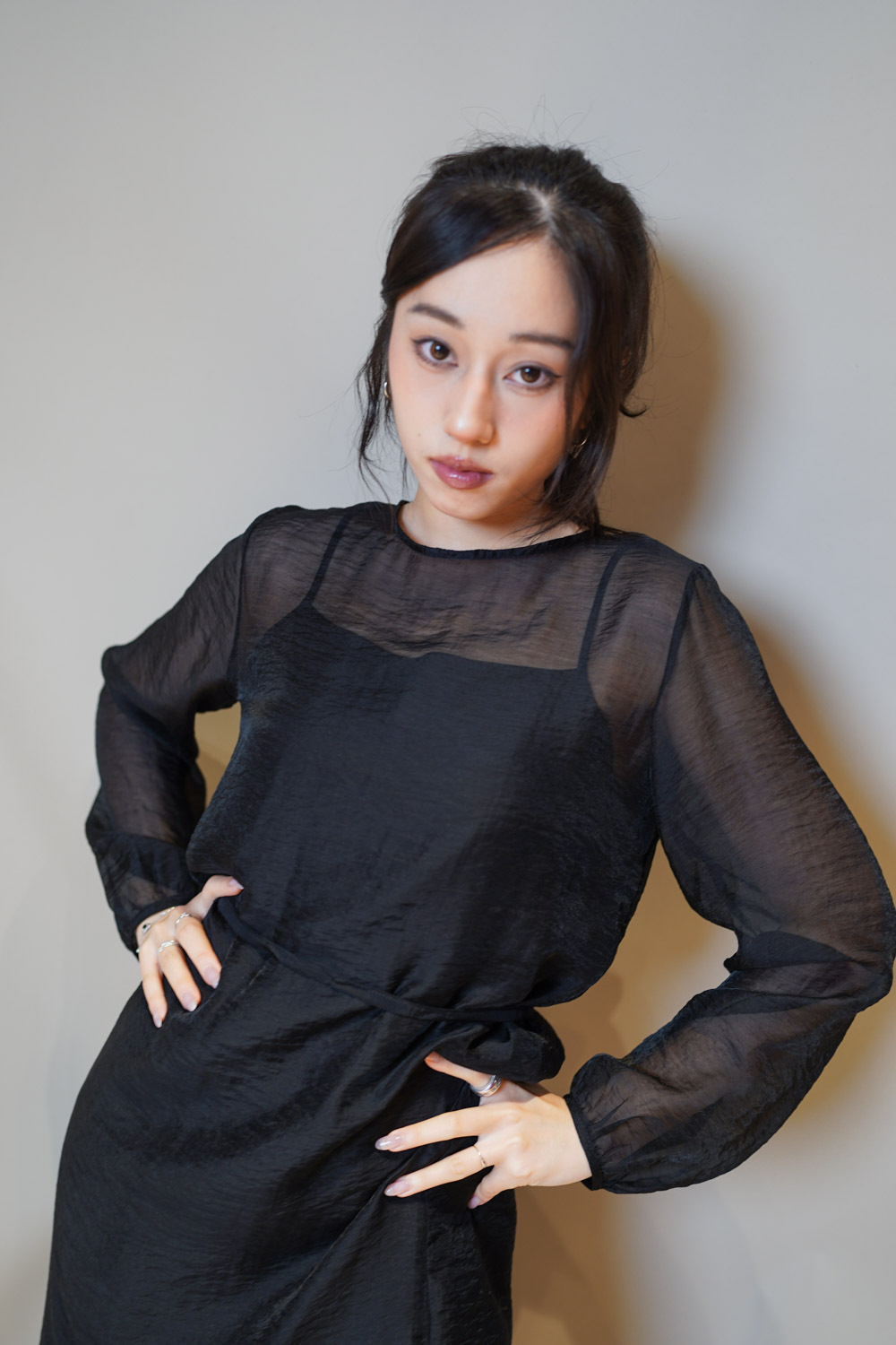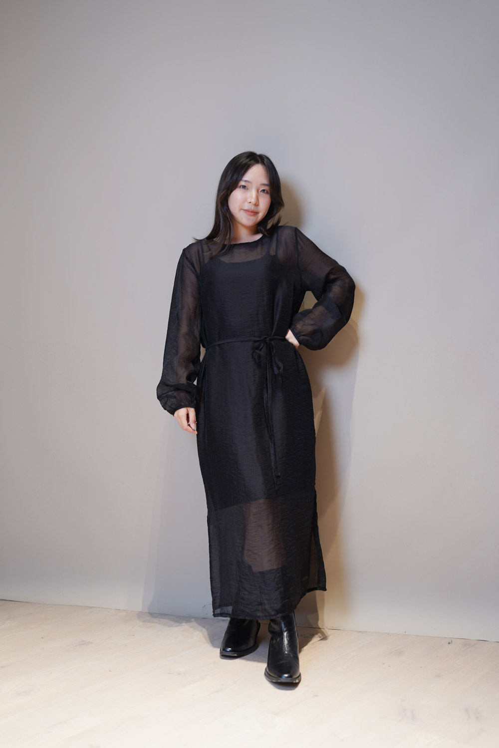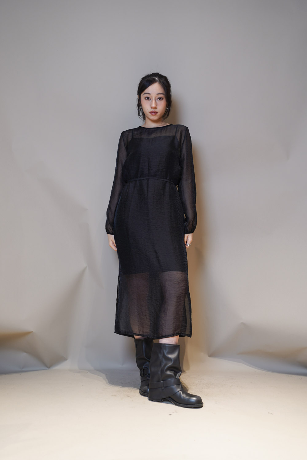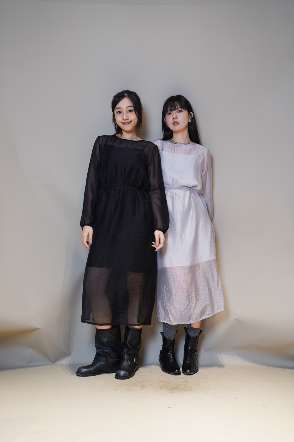 Foggy layered dress with waist belt (LIGHT GREY/BLACK)