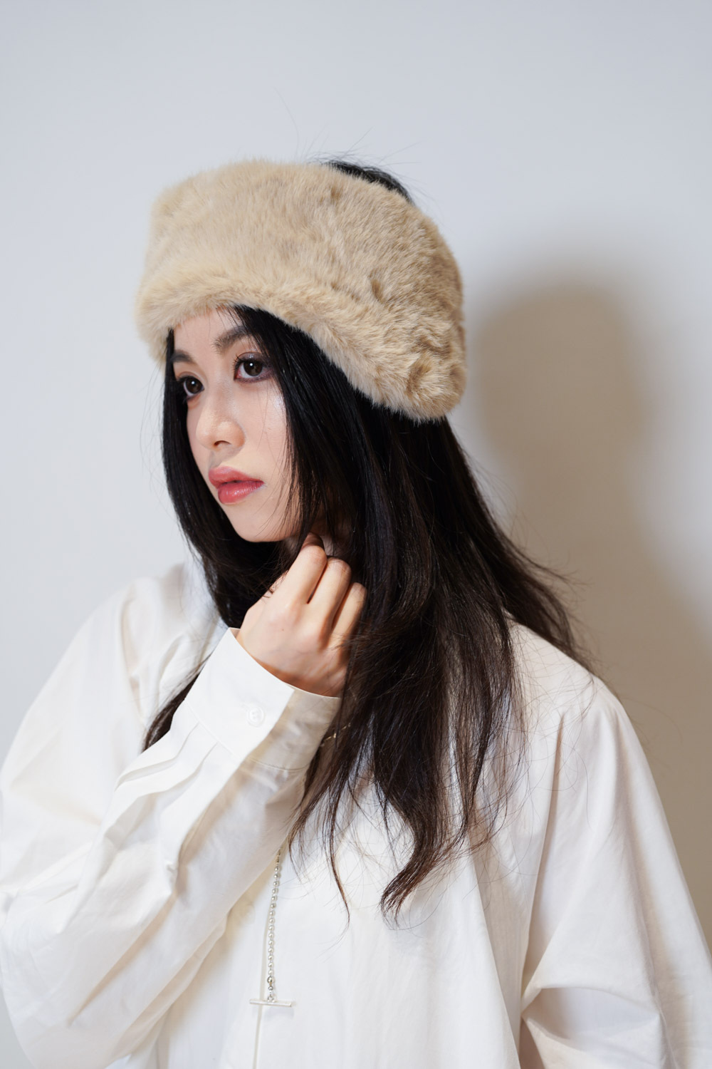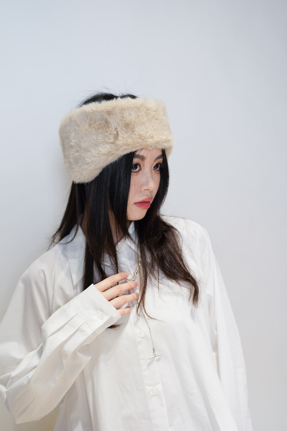 furry headband (IVORY/BROWN)
