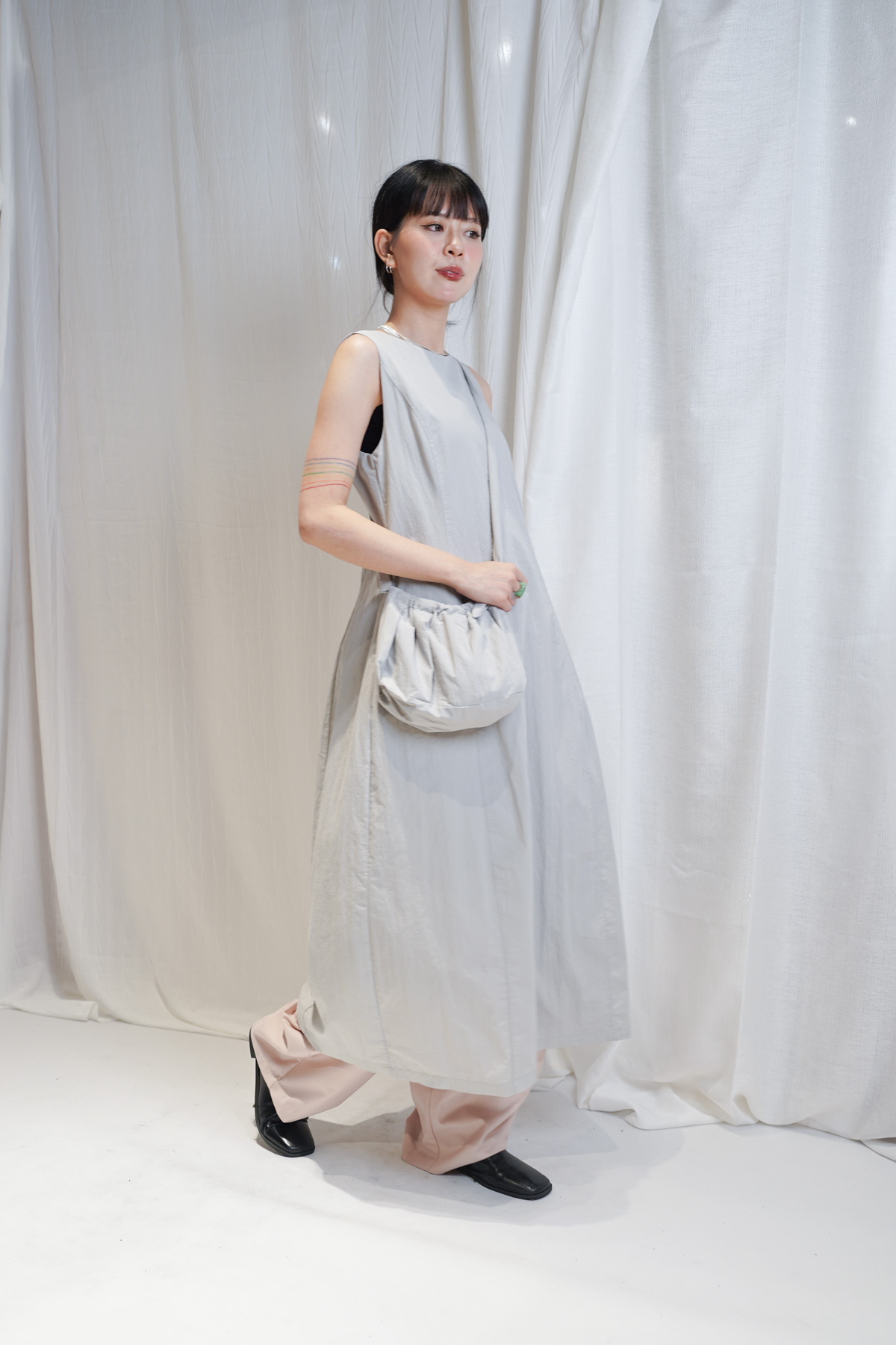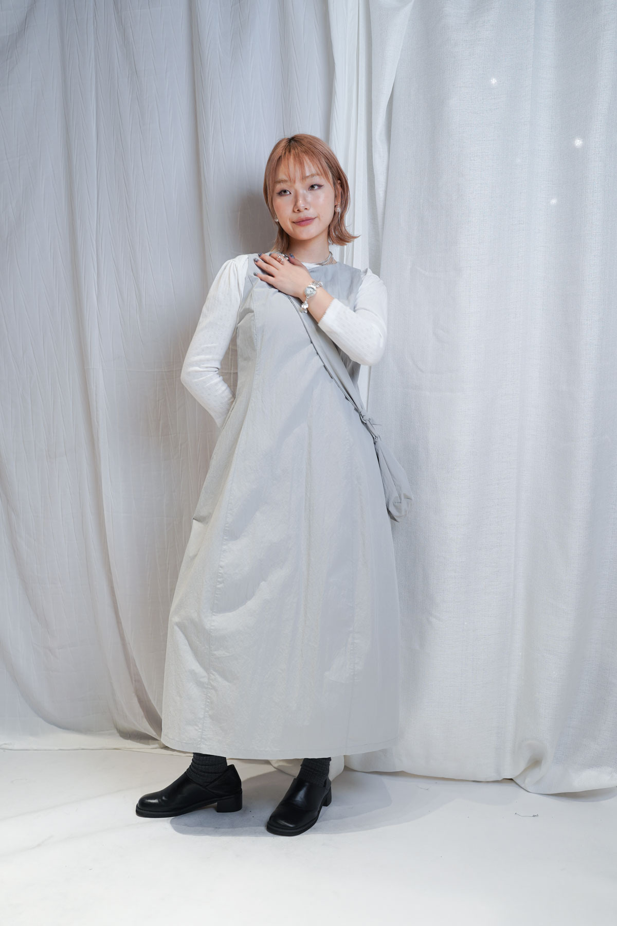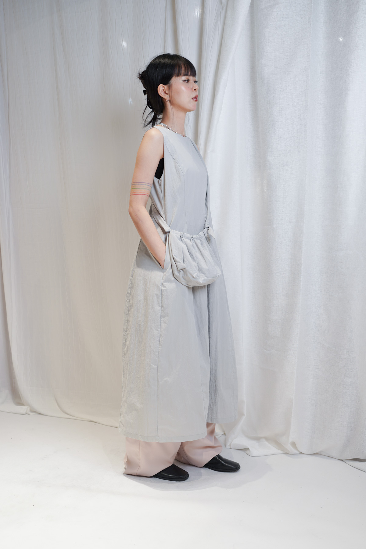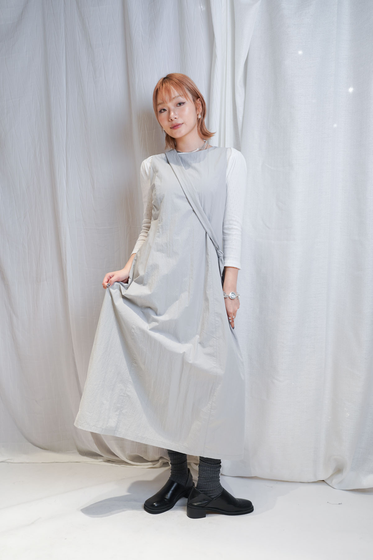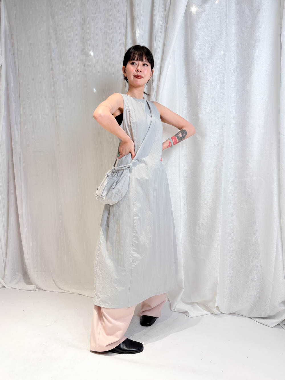 寬鬆大裙襬嘅慵懶,配合收腰設計嘅俐落,附贈嘅可調節小包,更係展現出你對生活細節嘅智慧。