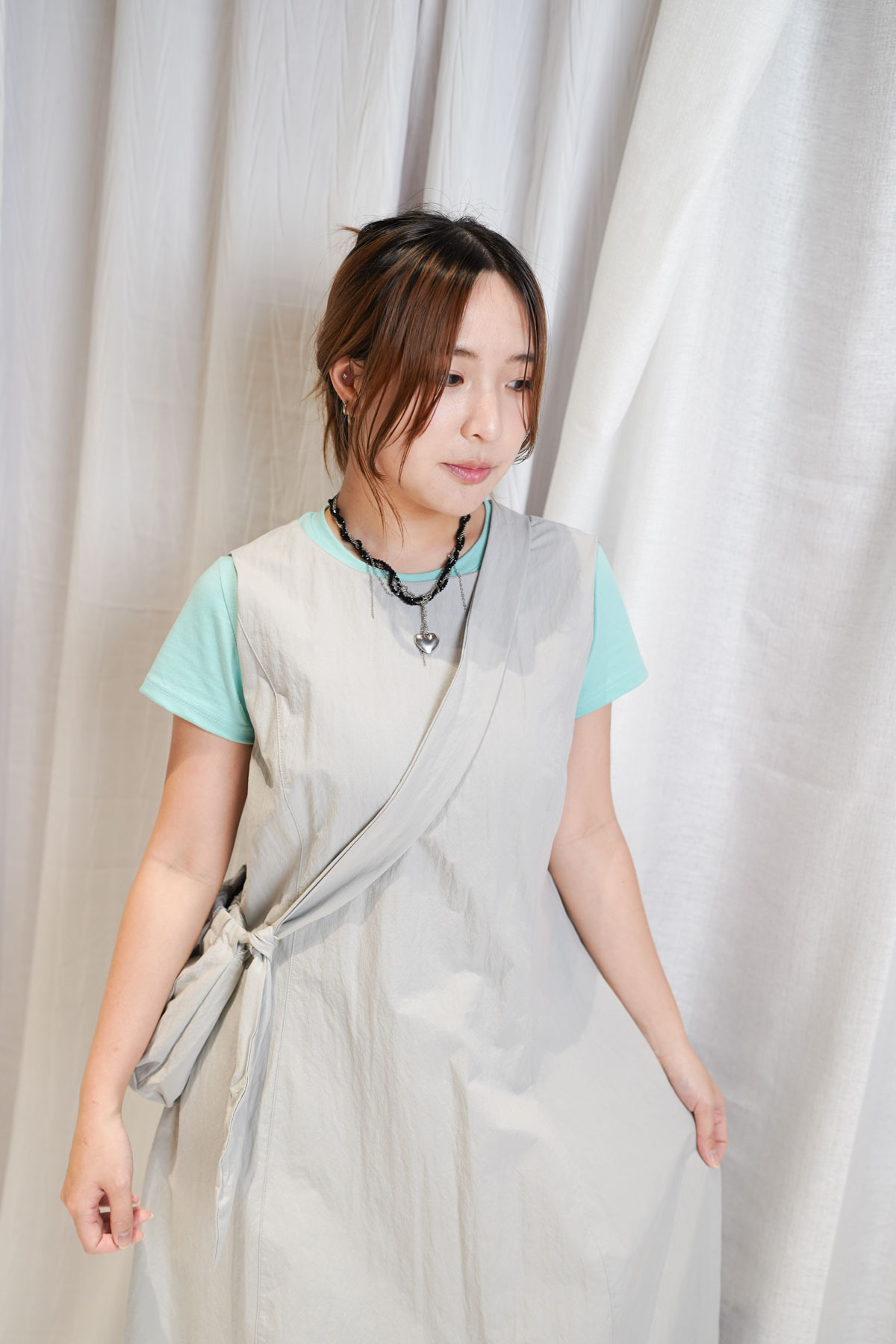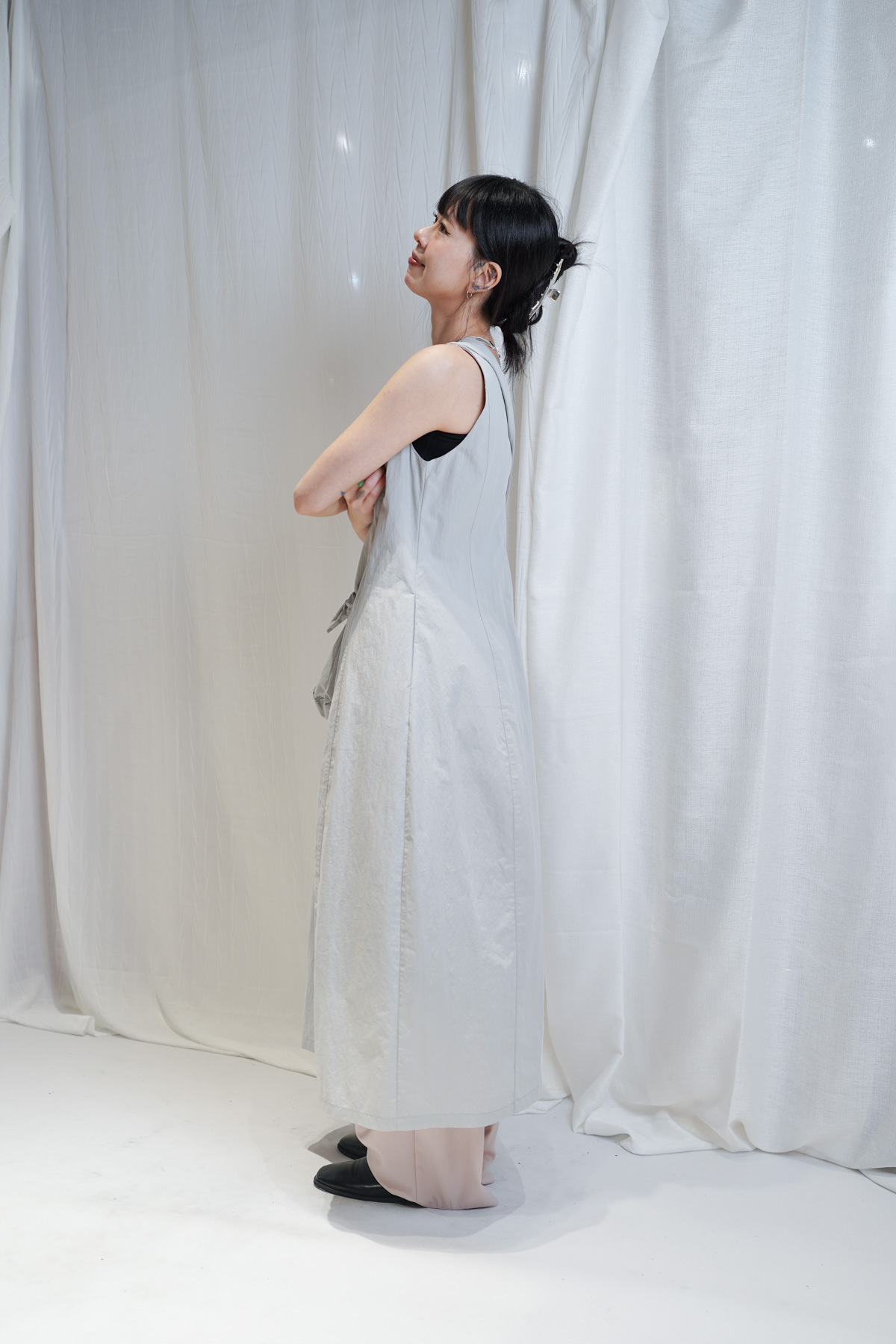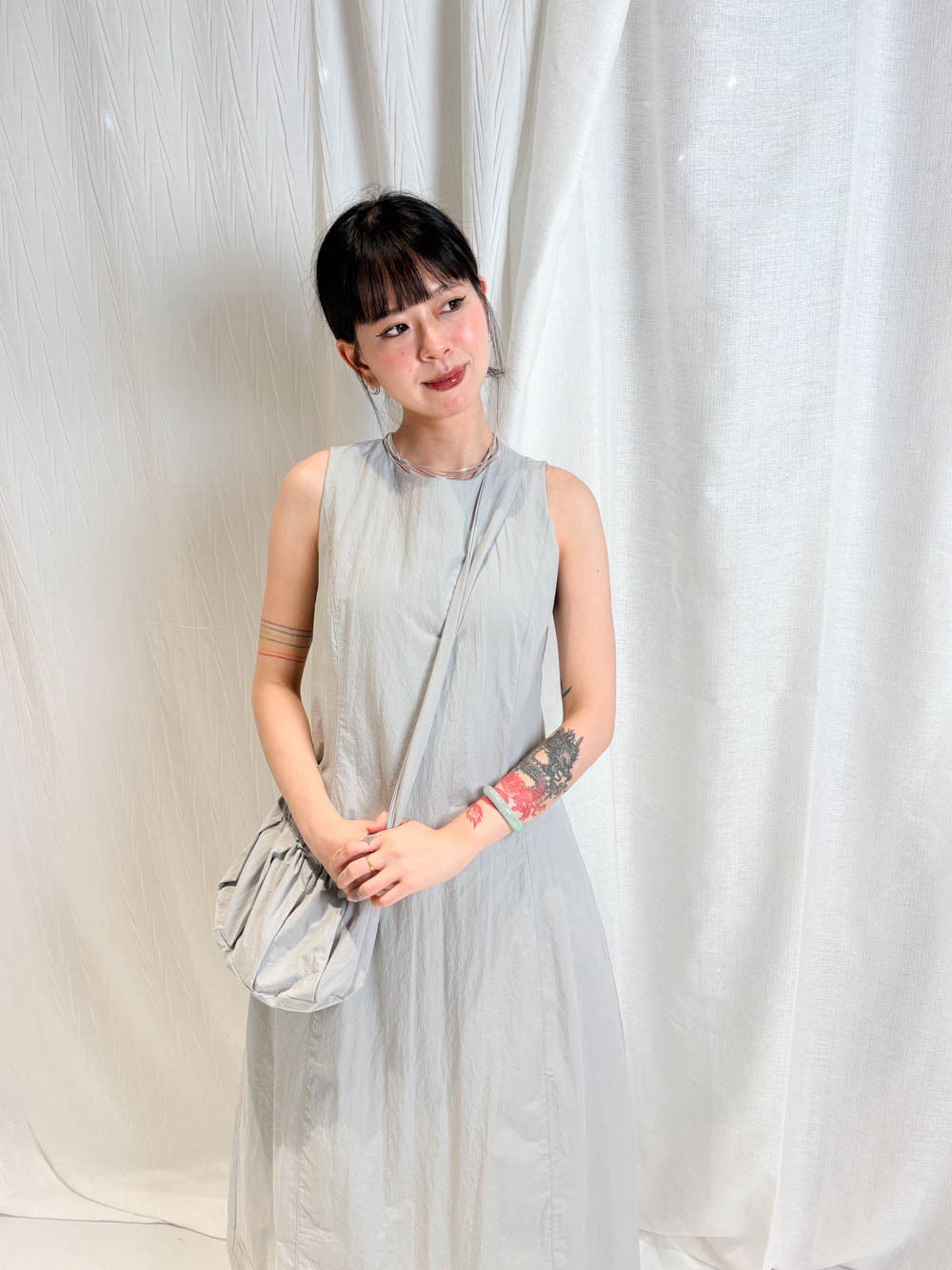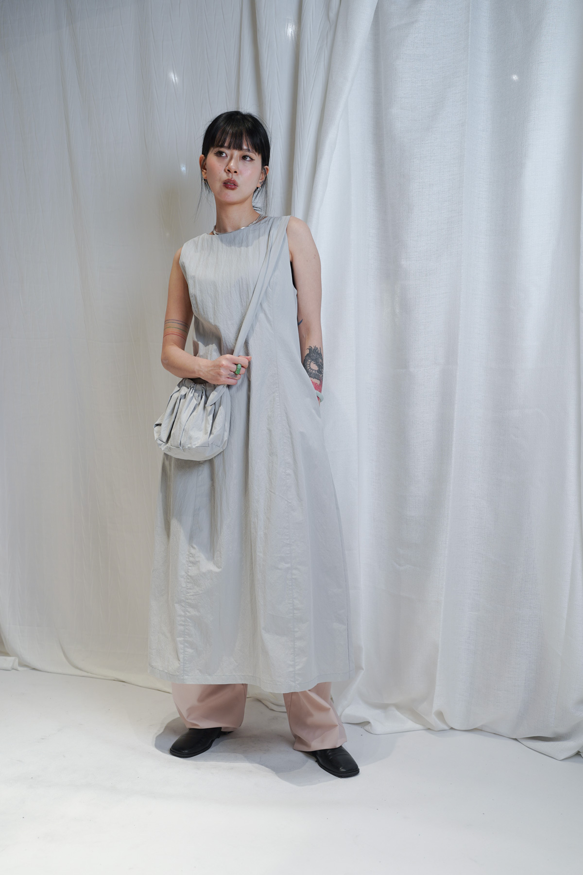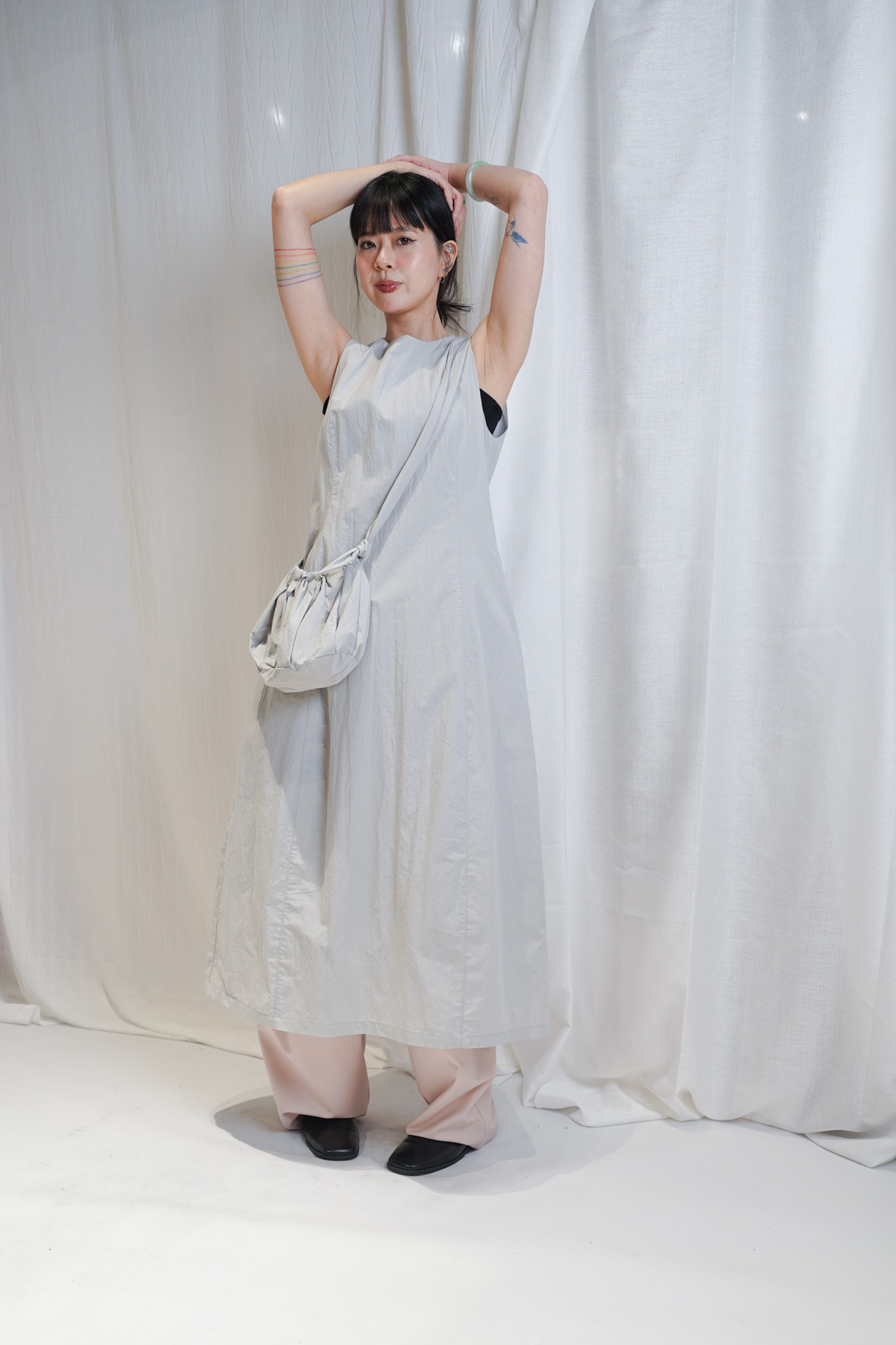 寬鬆大裙襬嘅慵懶,配合收腰設計嘅俐落,附贈嘅可調節小包,更係展現出你對生活細節嘅智慧。