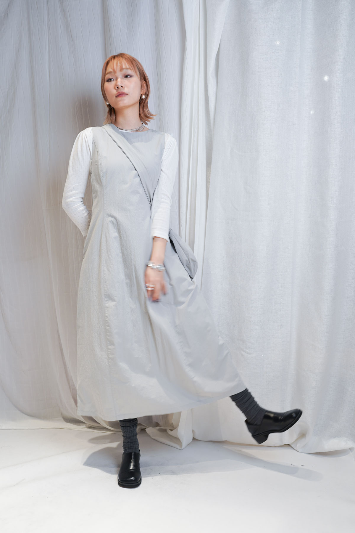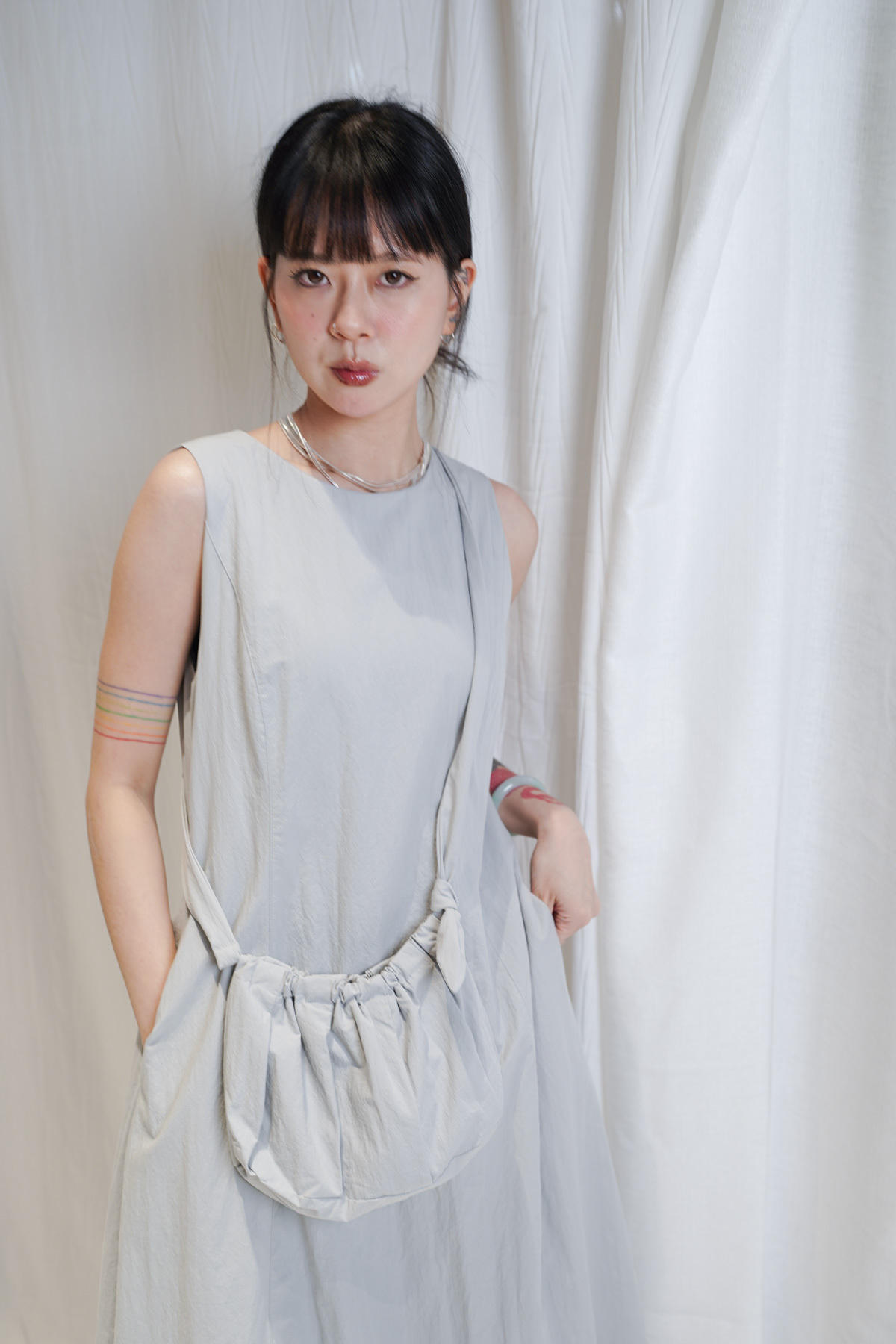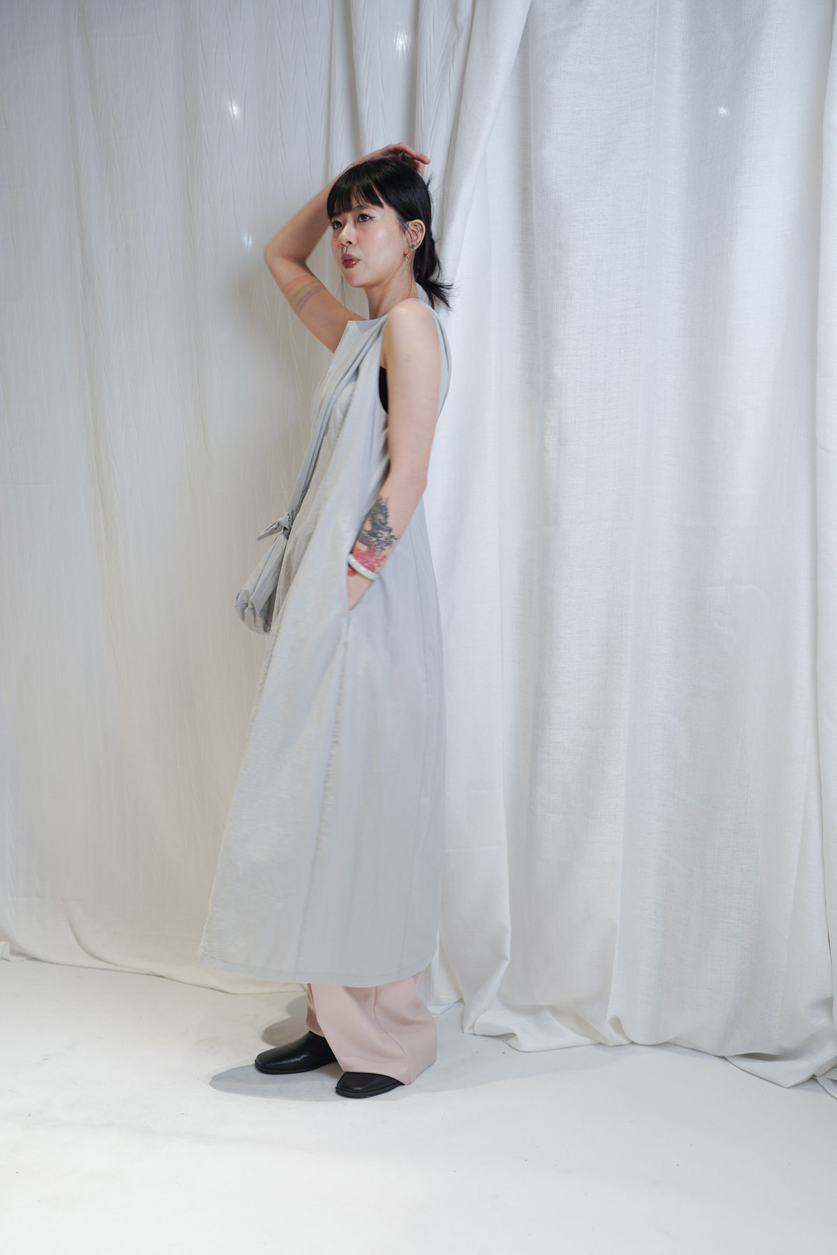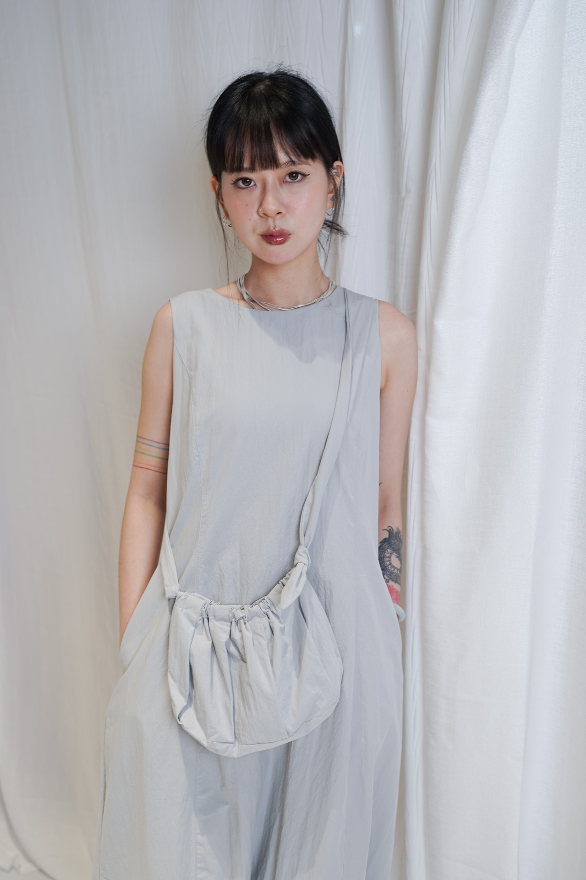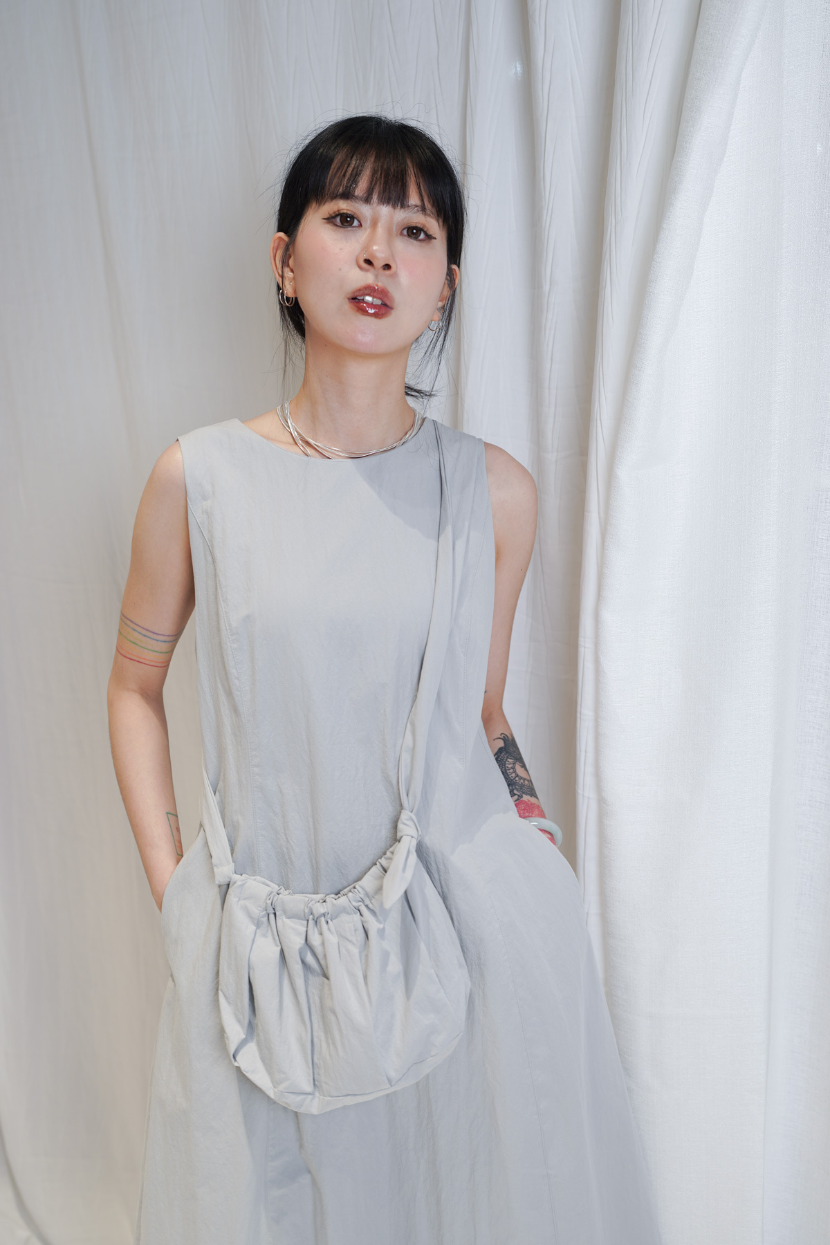 寬鬆大裙襬嘅慵懶,配合收腰設計嘅俐落,附贈嘅可調節小包,更係展現出你對生活細節嘅智慧。