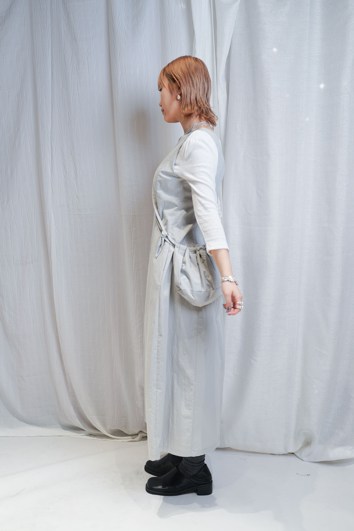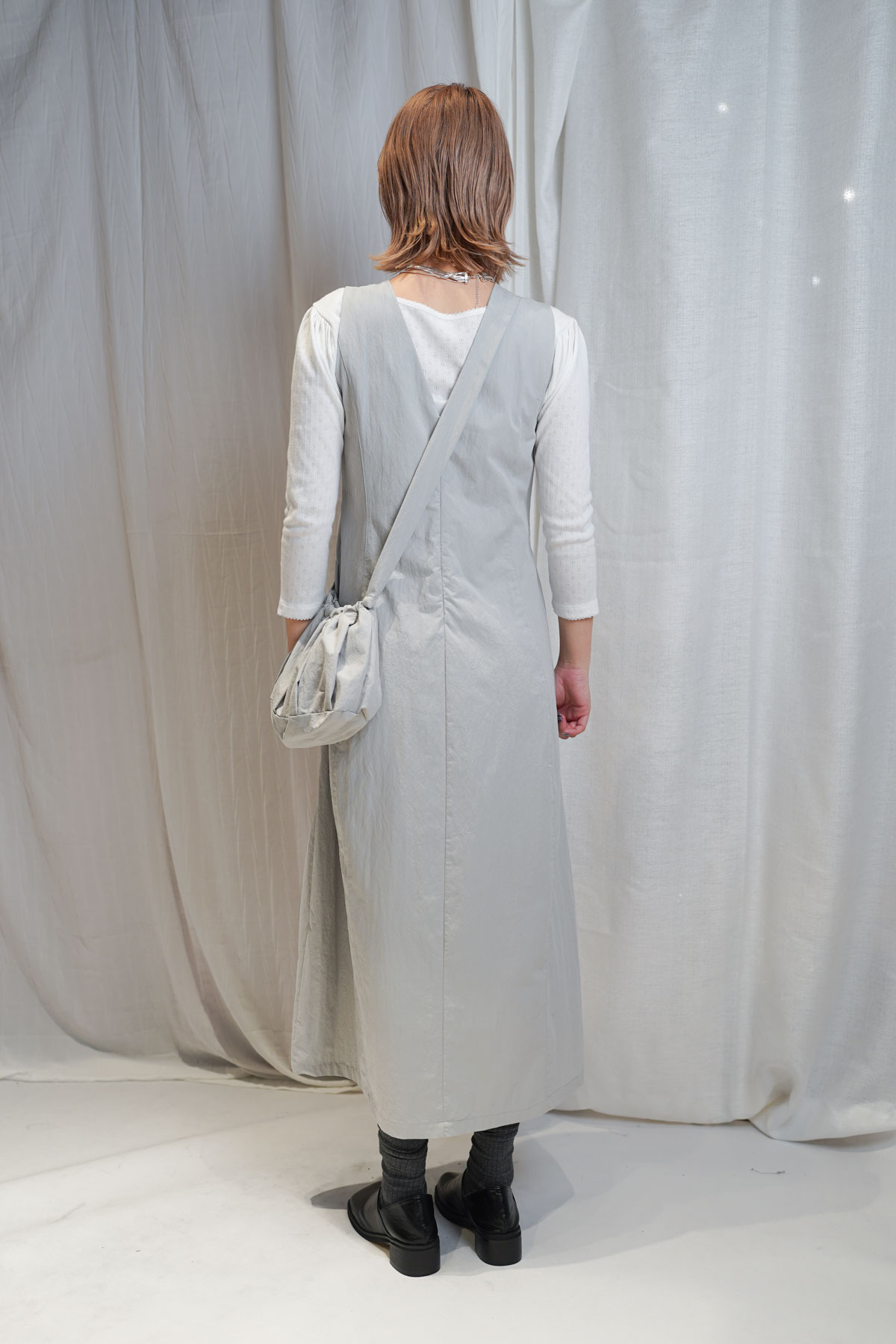 Gigi Vest Dress with little bag (WHITE / GREY)
