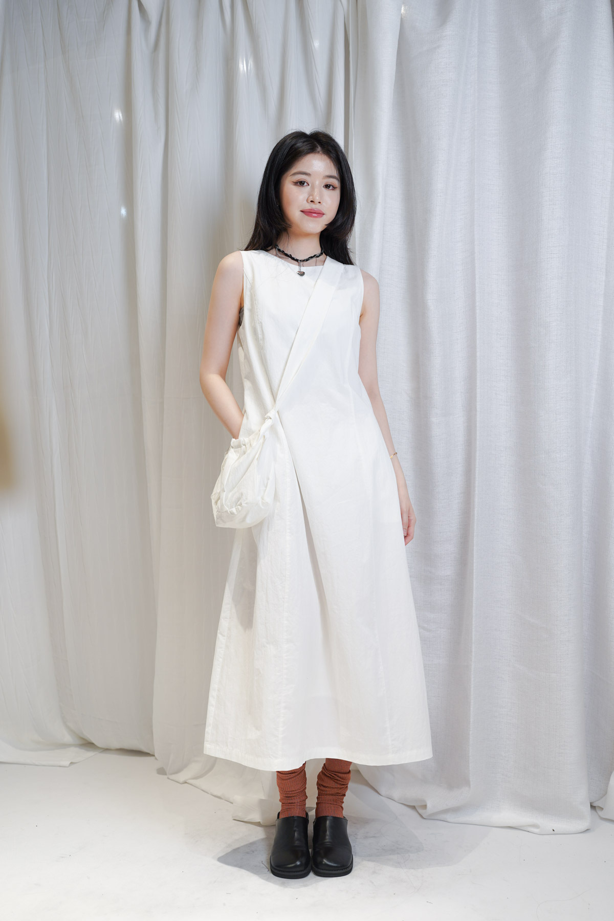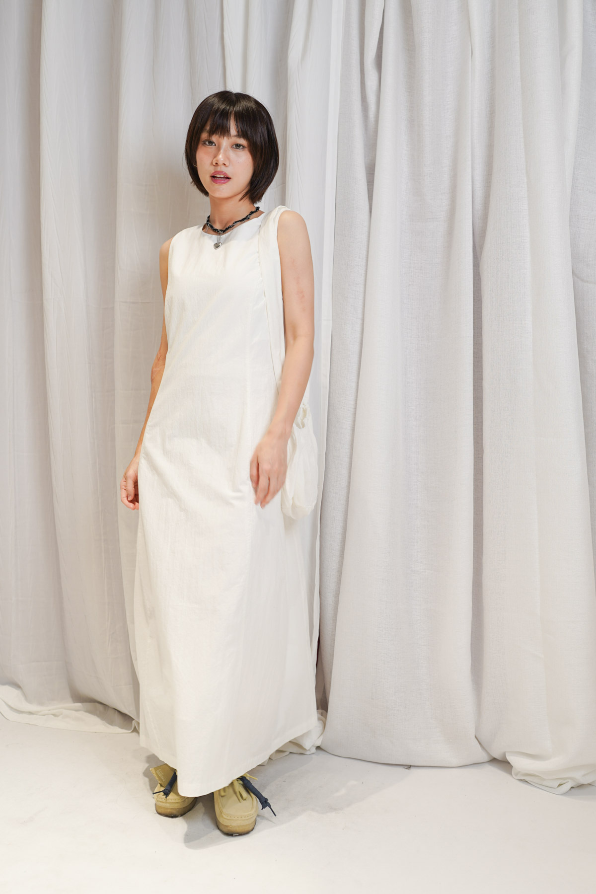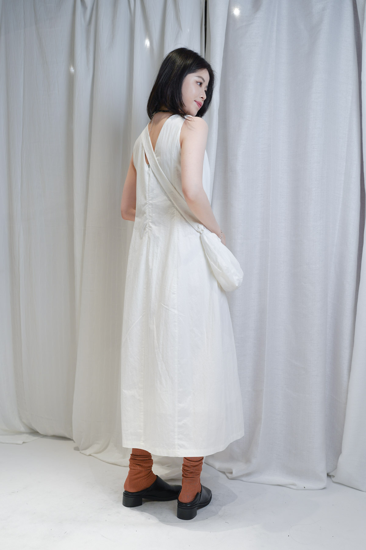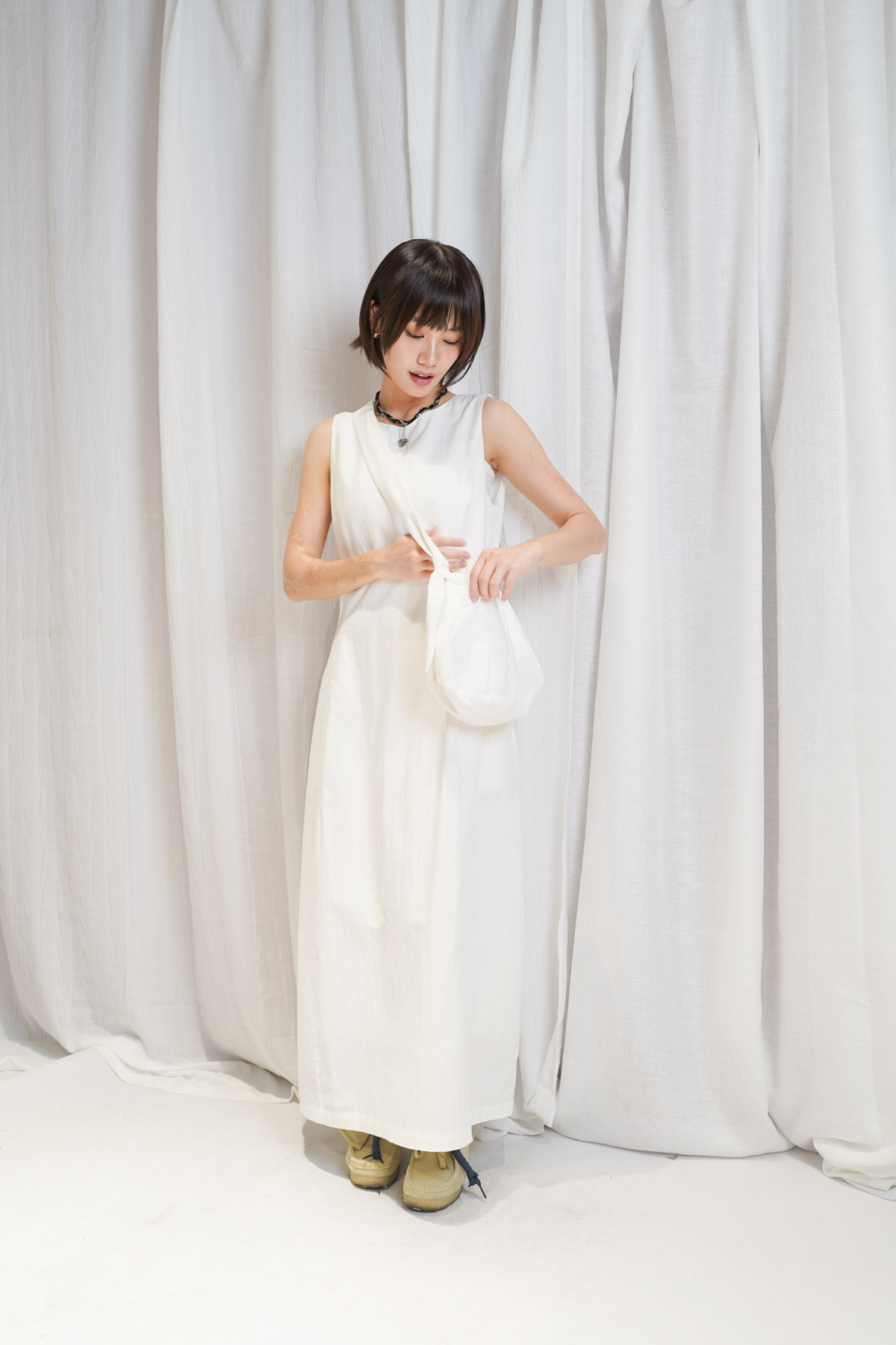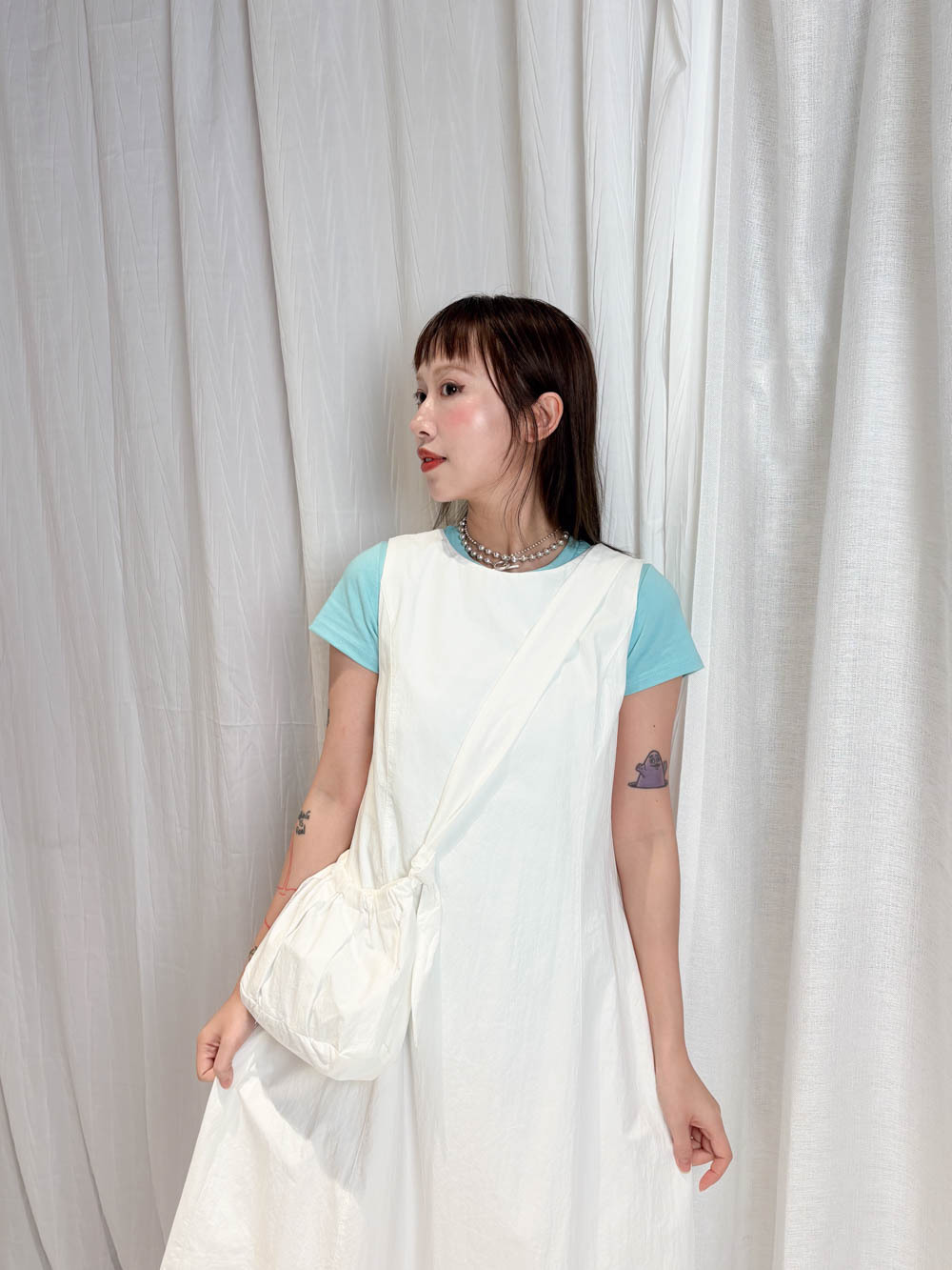 Gigi Vest Dress with little bag (WHITE / GREY)