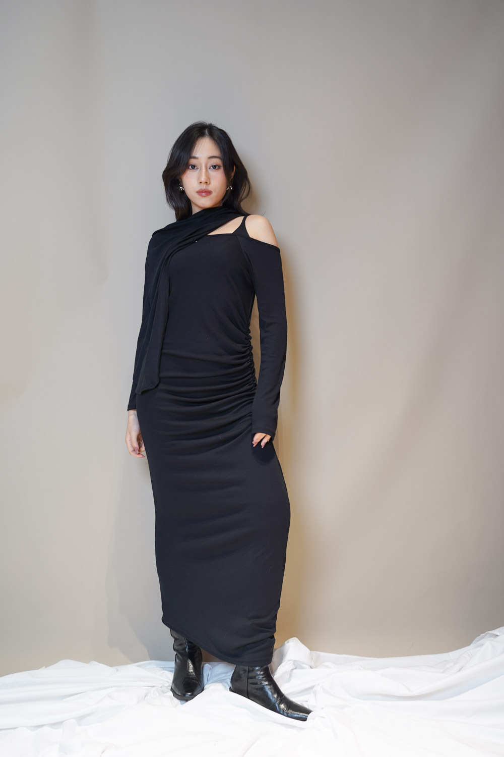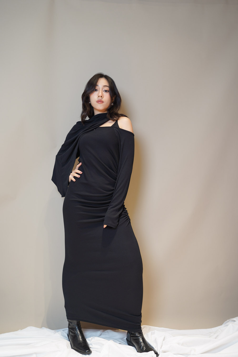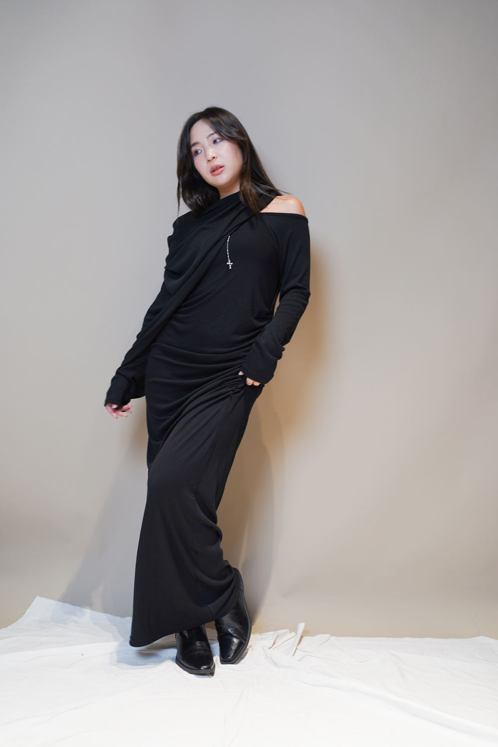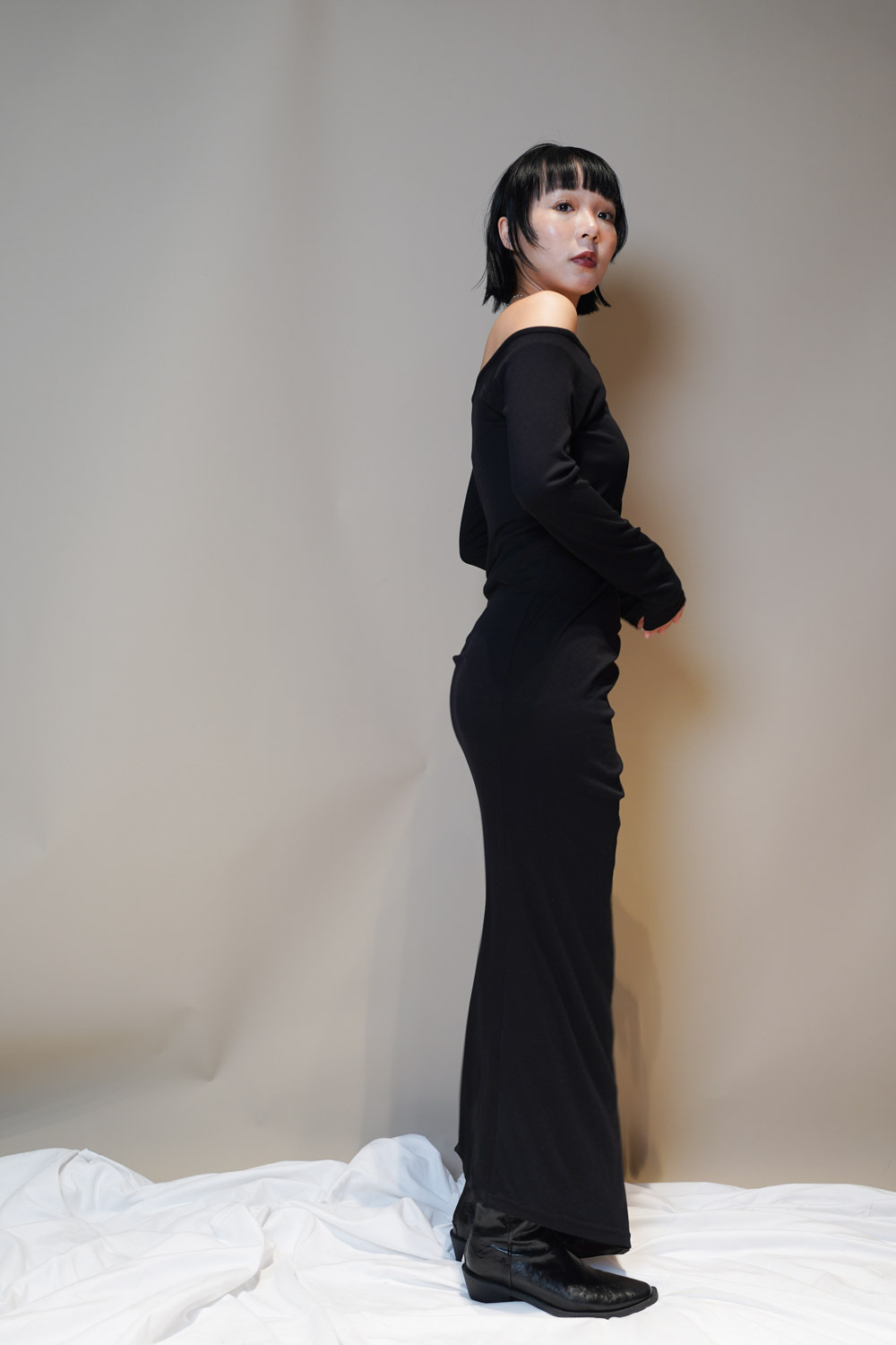 Goddess slim long dress with crop top (WHITE/BLACK)