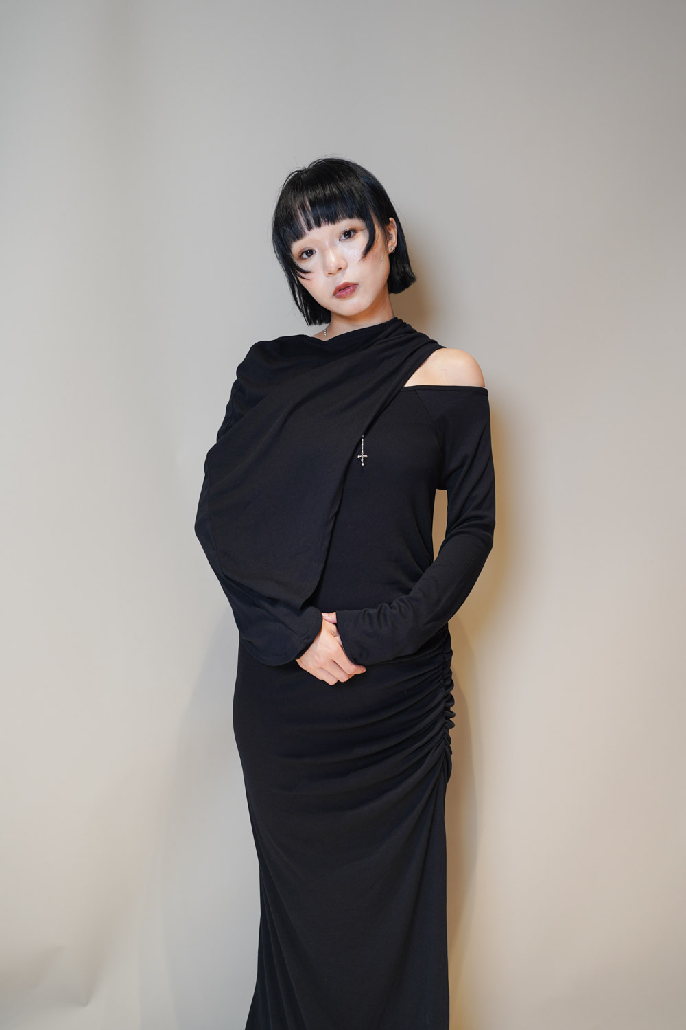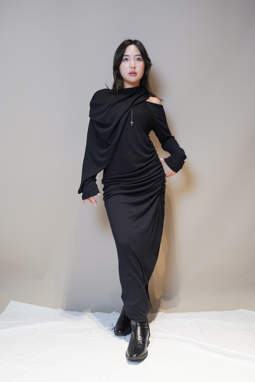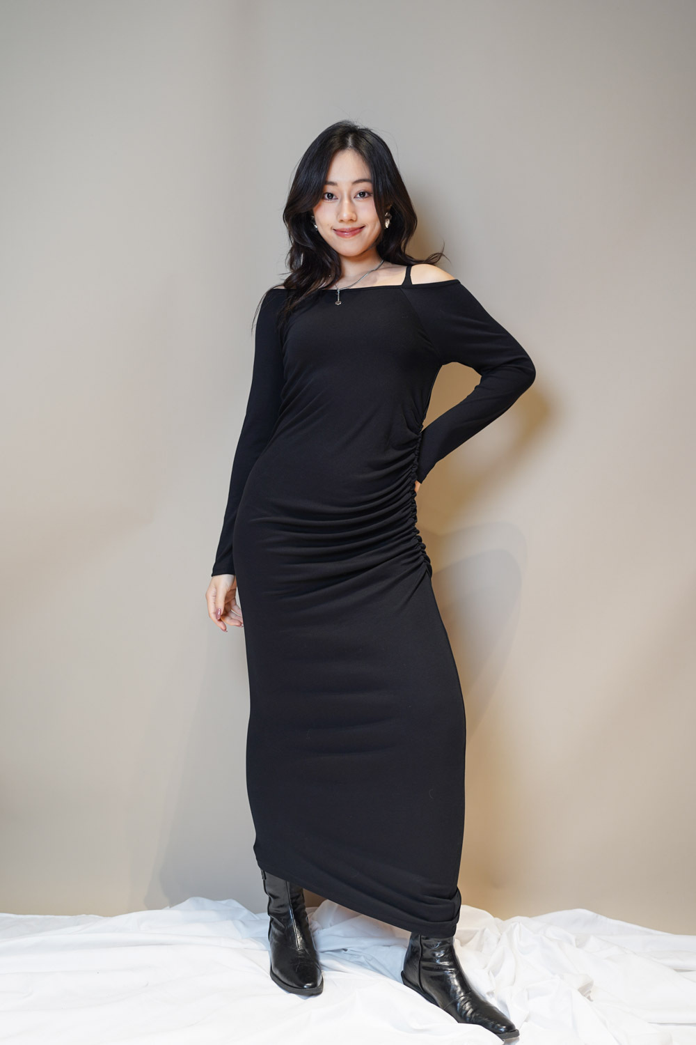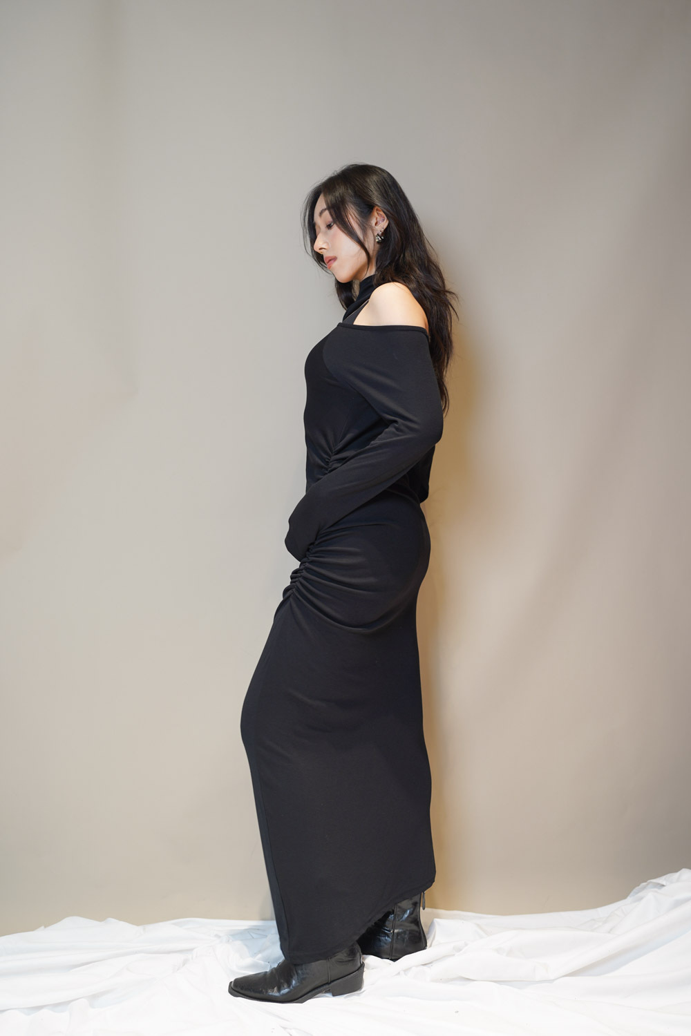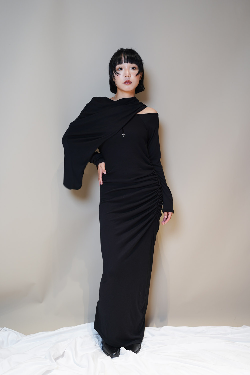 Goddess slim long dress with crop top (WHITE/BLACK)