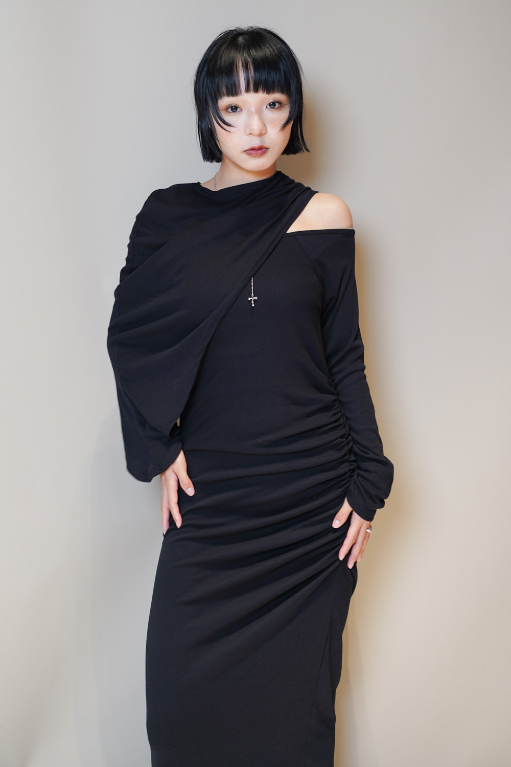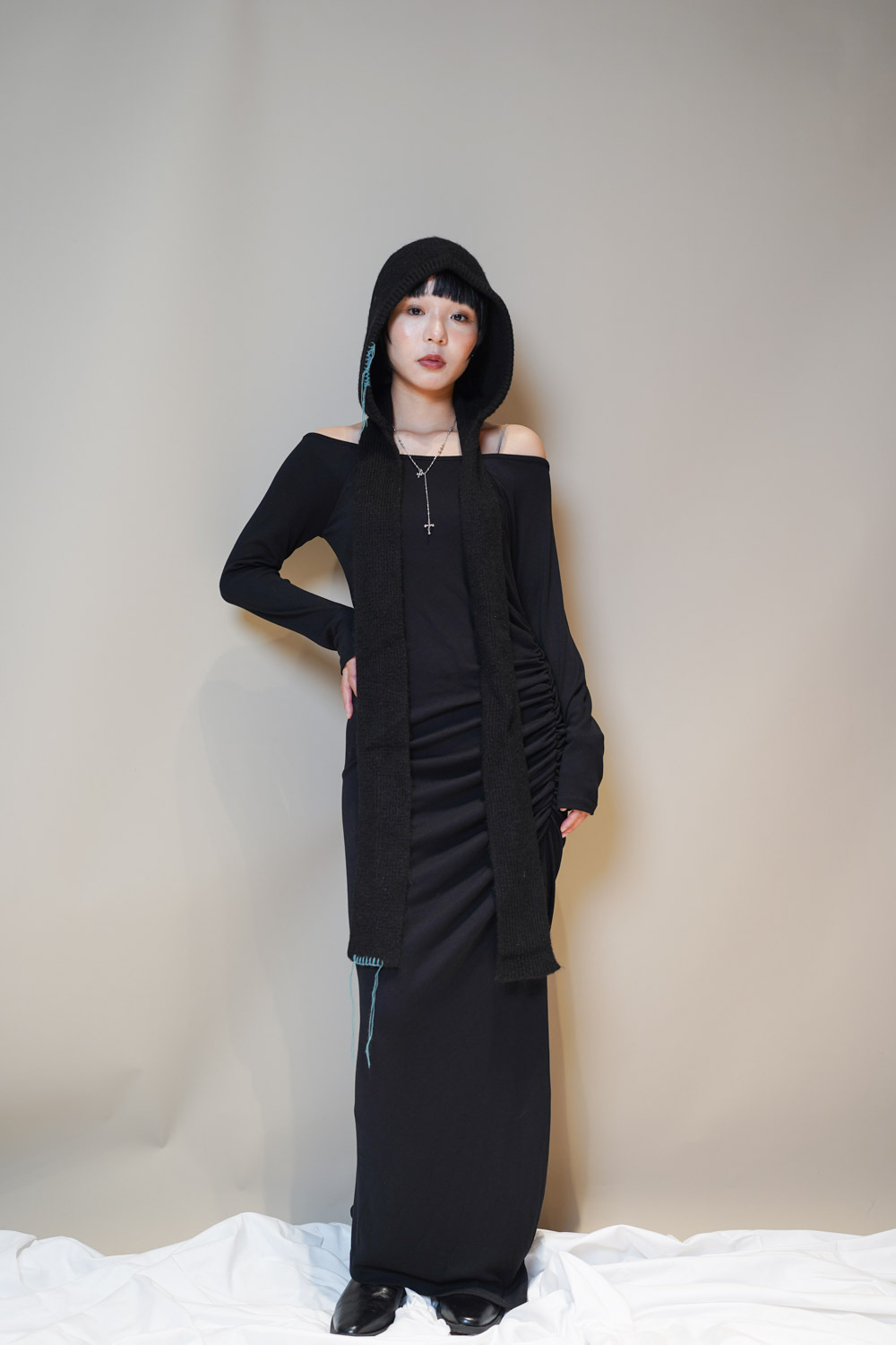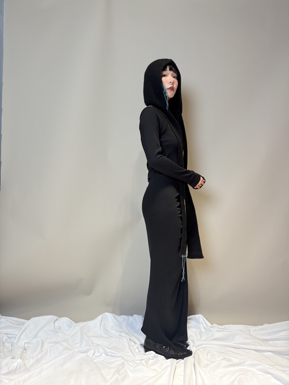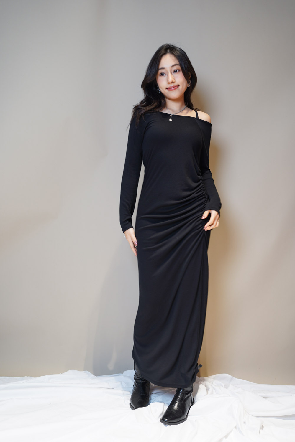 Goddess slim long dress with crop top (WHITE/BLACK)