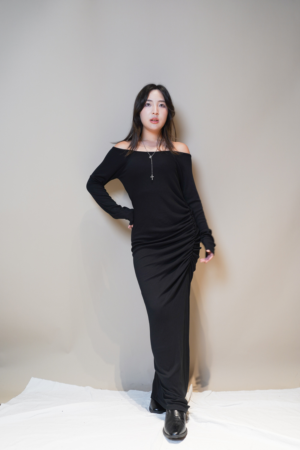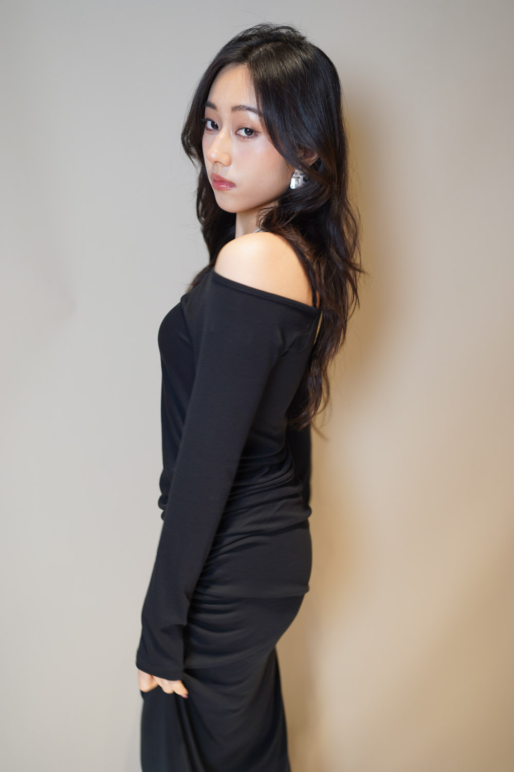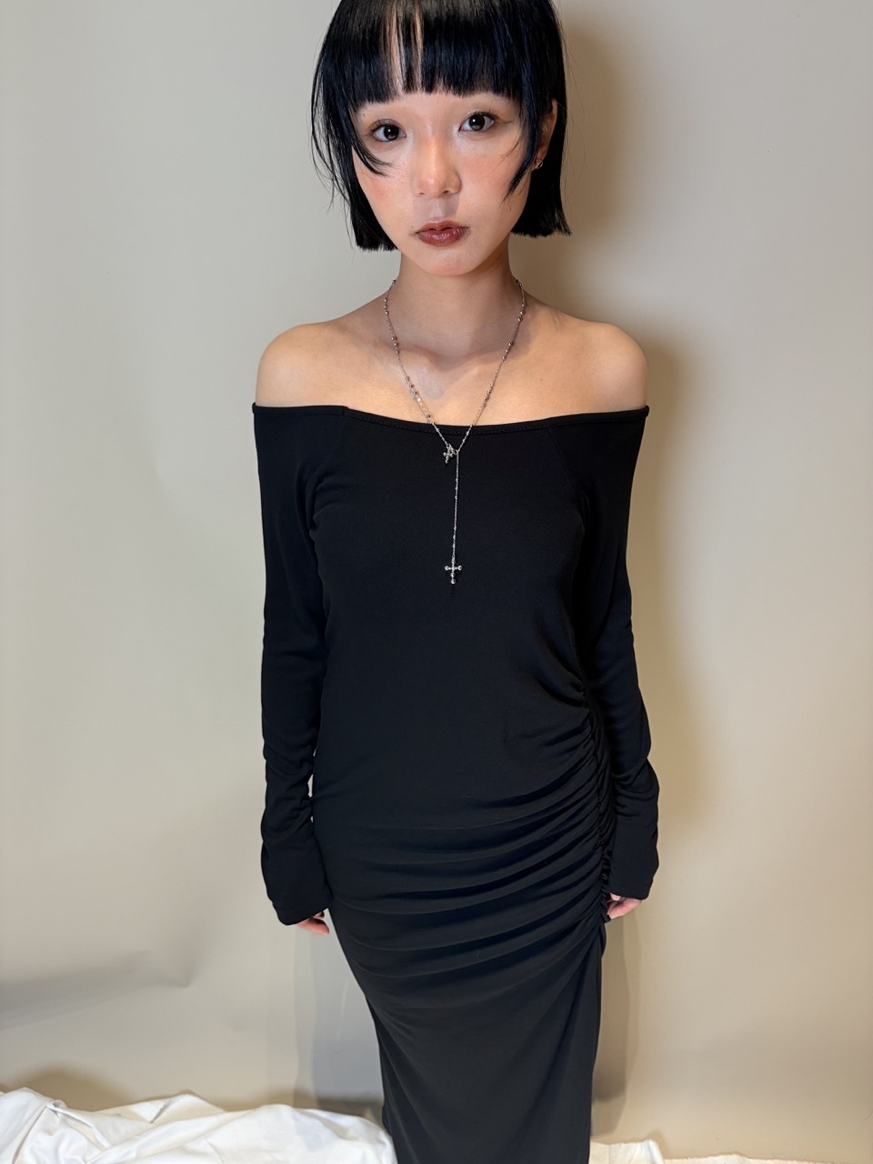 大圓領設計 修飾臉型 /可跌膊穿著 展現女性魅力 小性感/