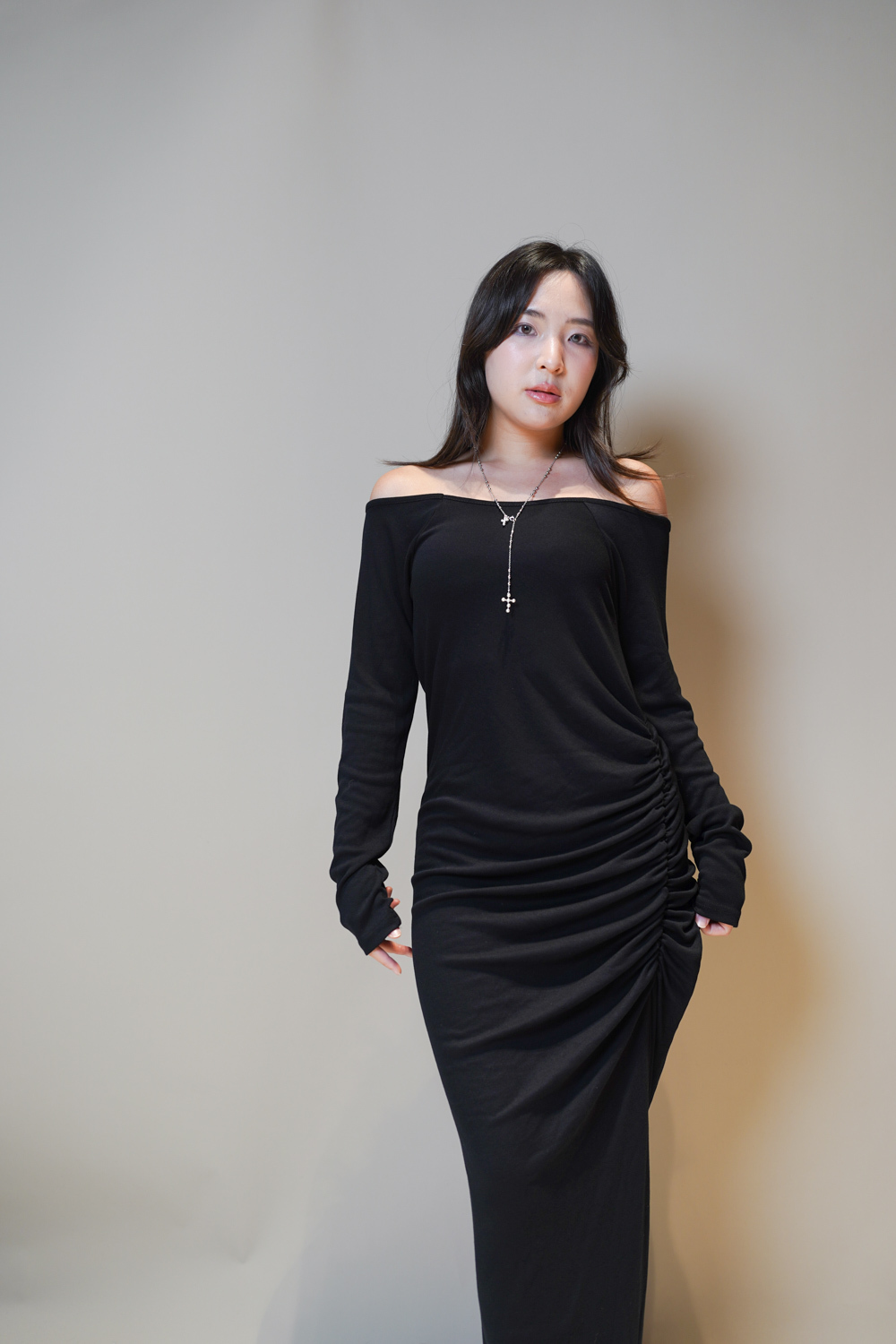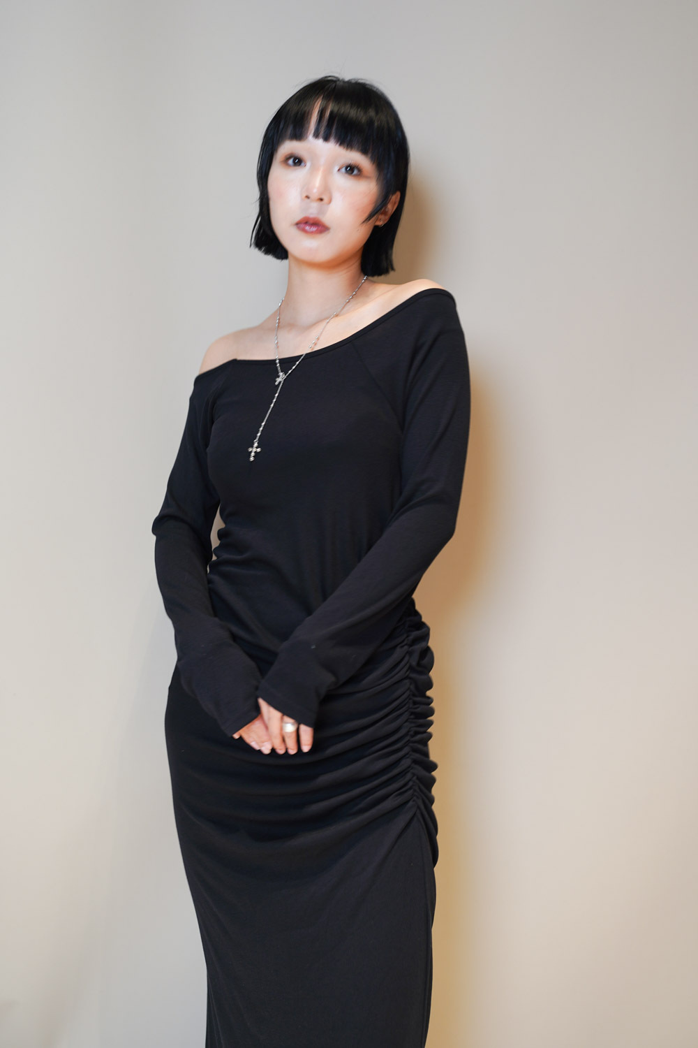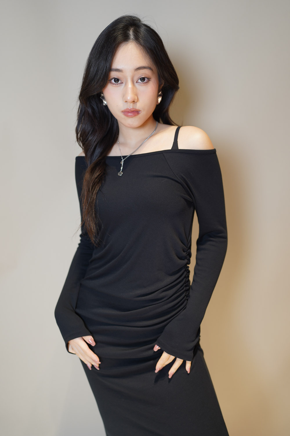 大圓領設計 修飾臉型 /可跌膊穿著 展現女性魅力 小性感/