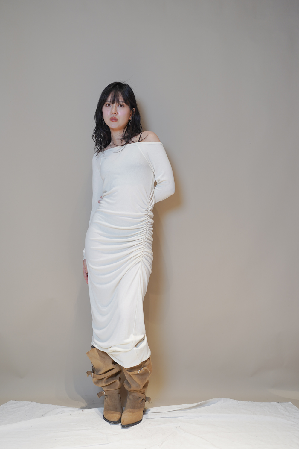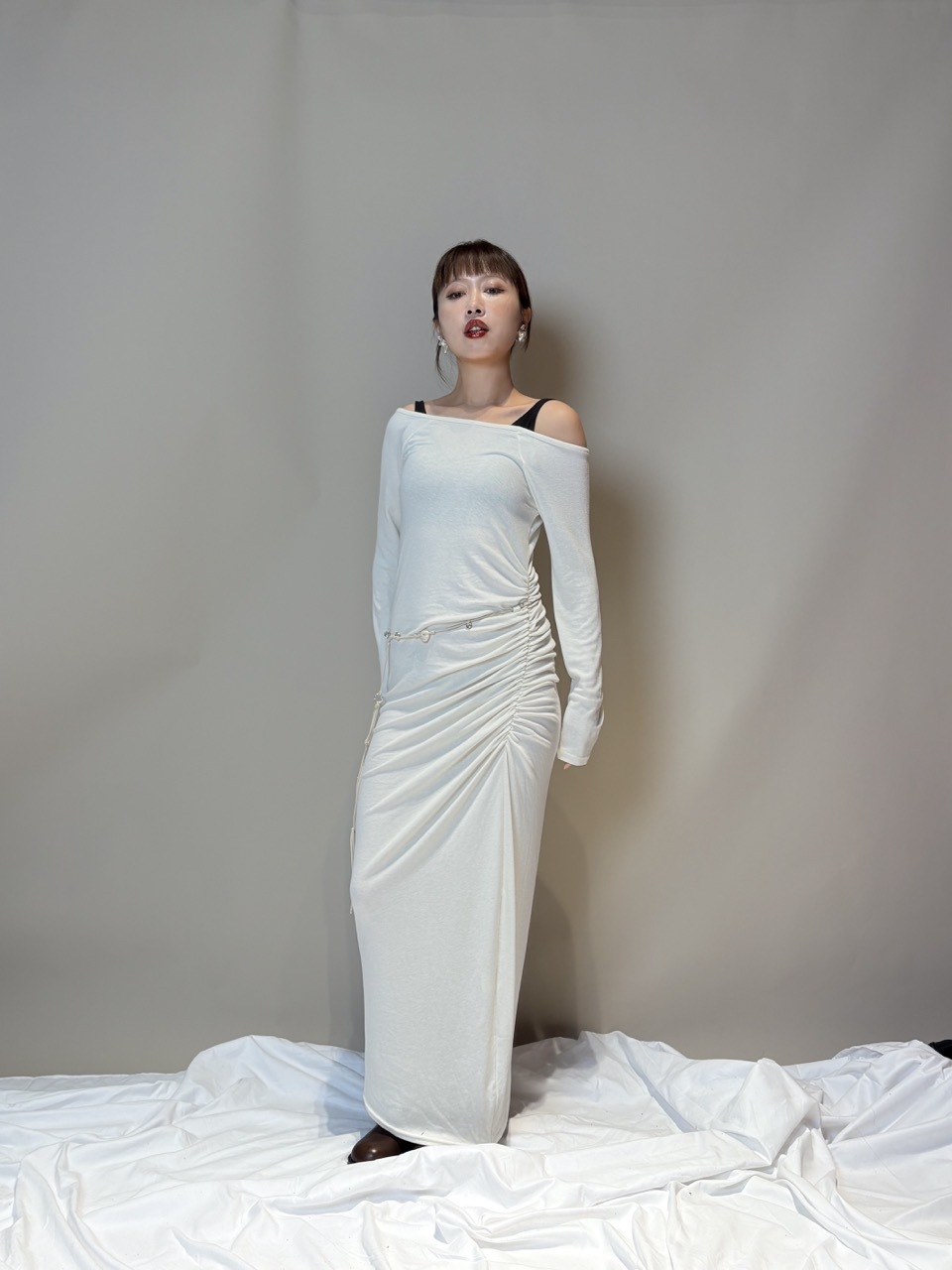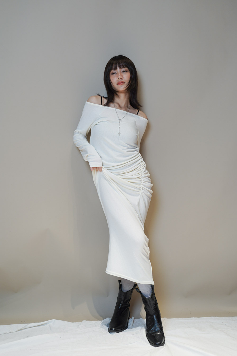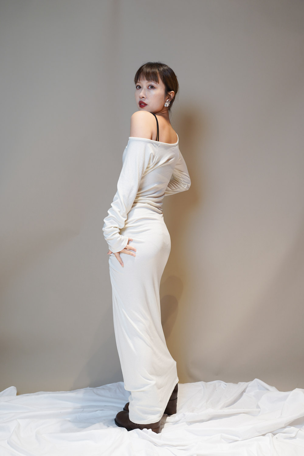 大圓領設計 修飾臉型 /可跌膊穿著 展現女性魅力 小性感/