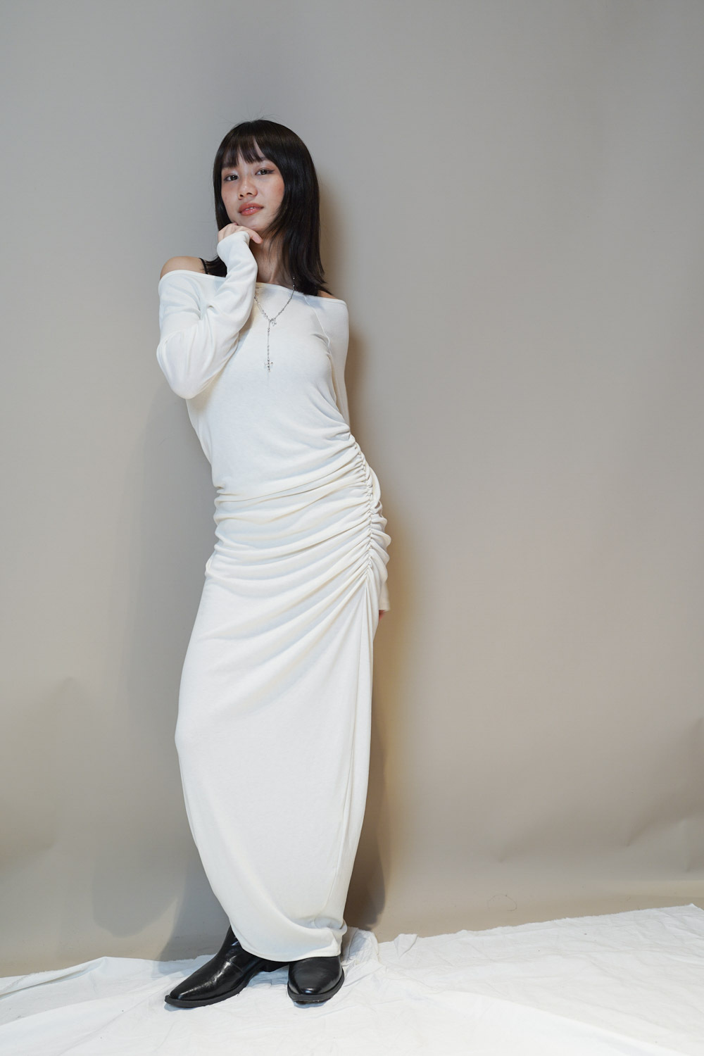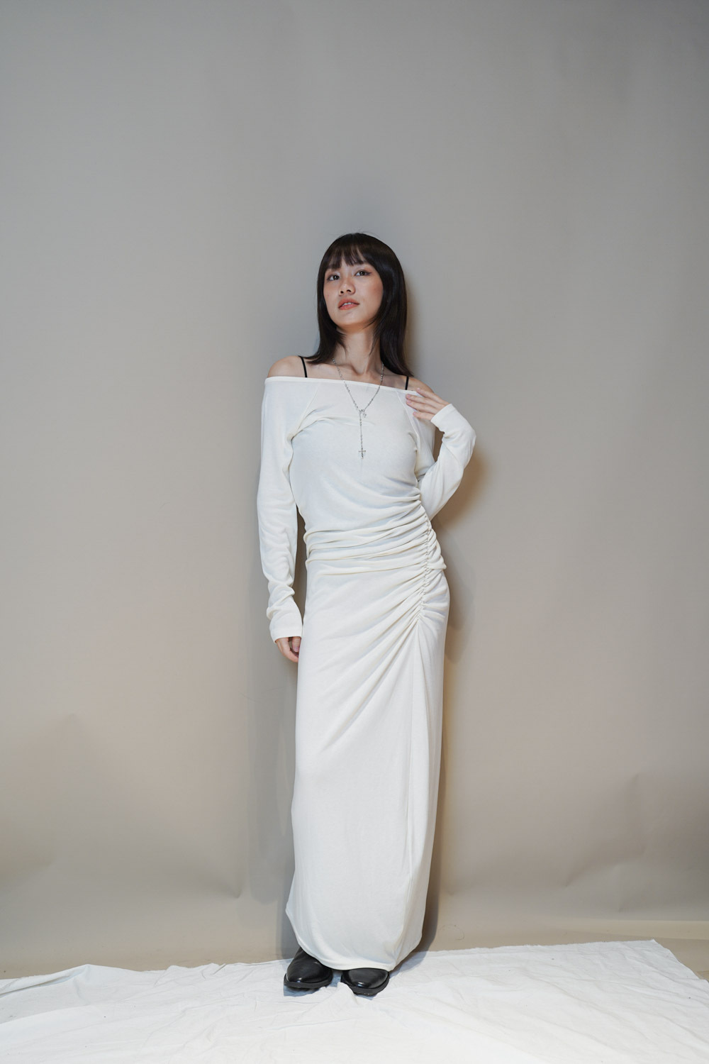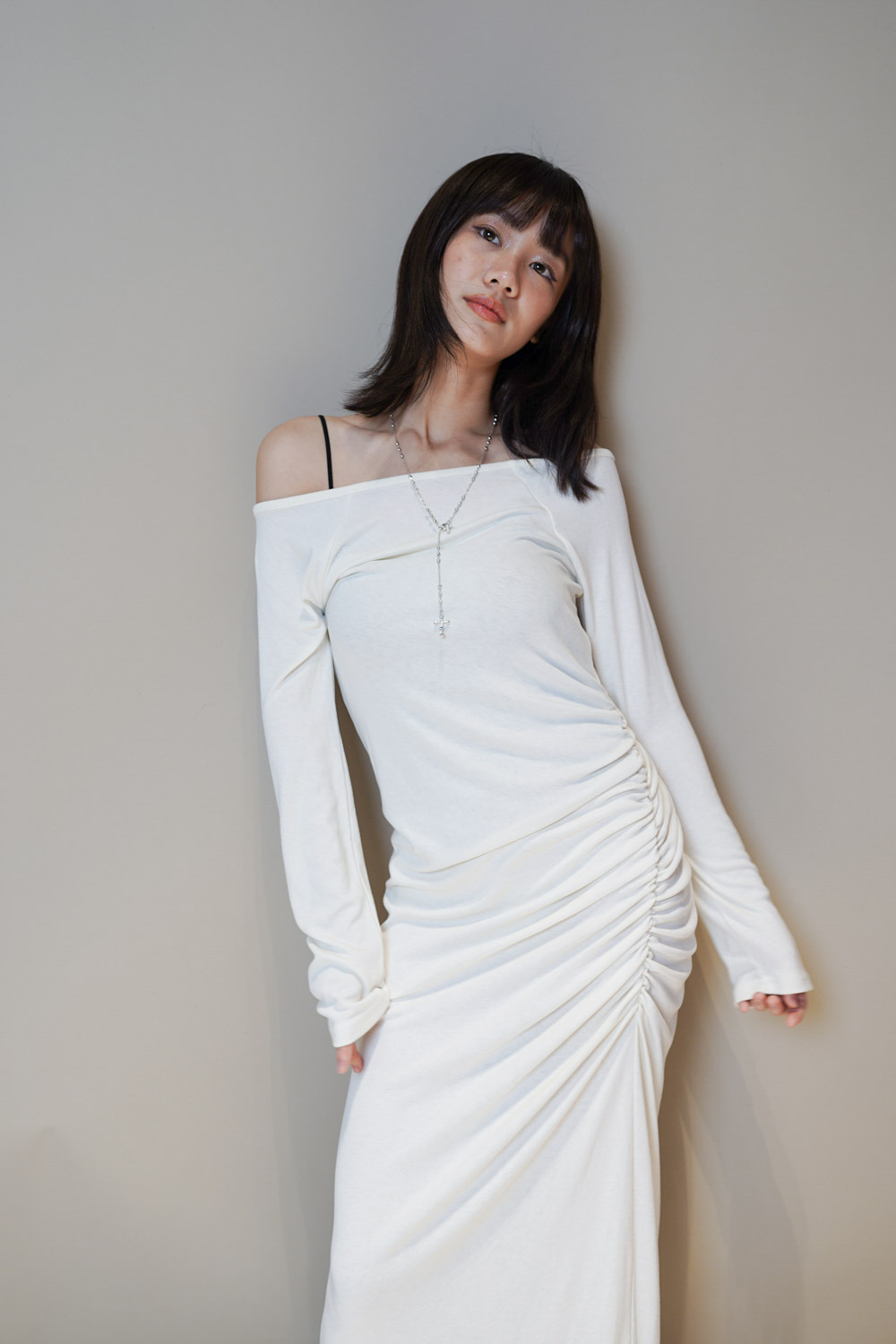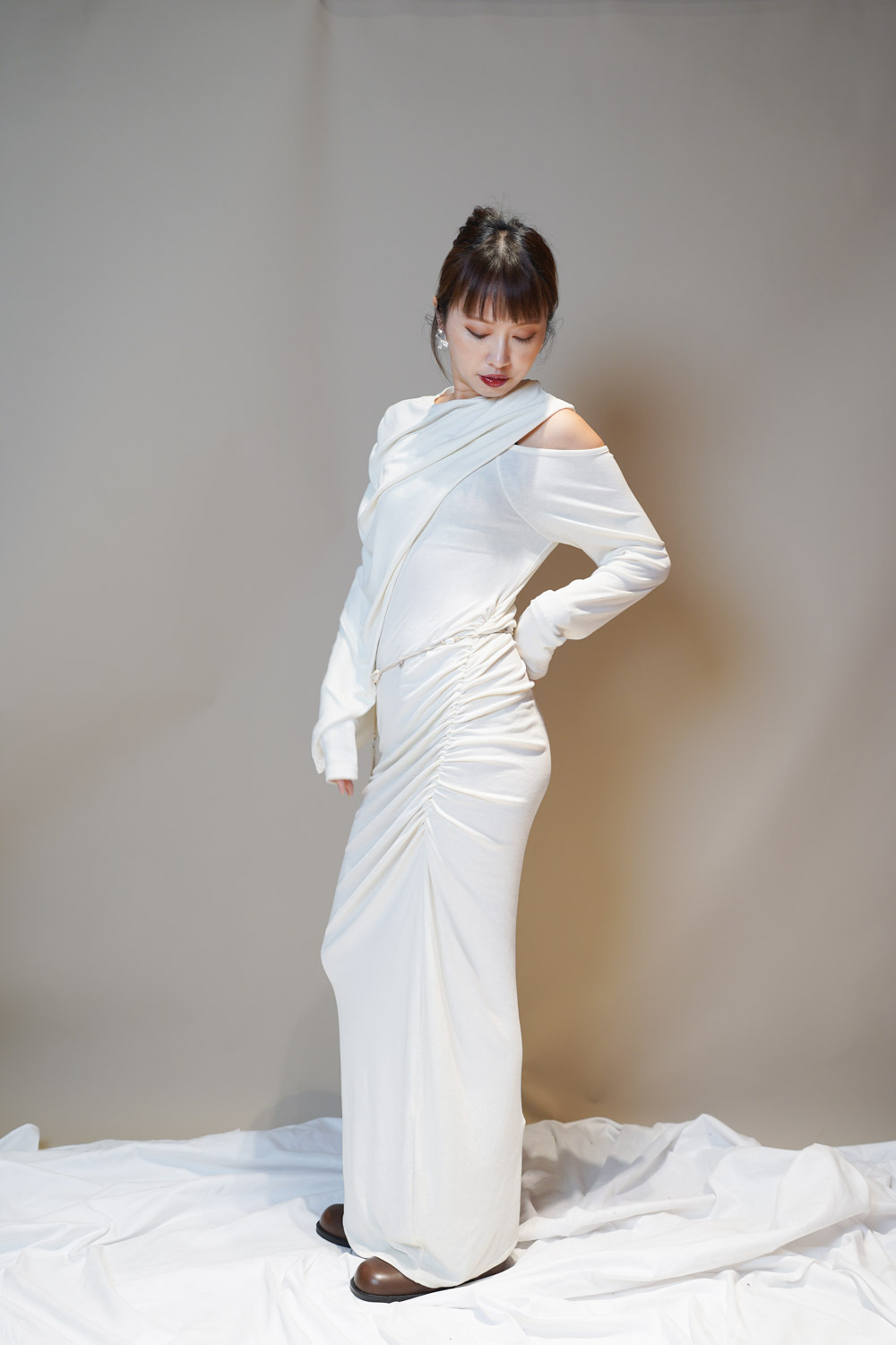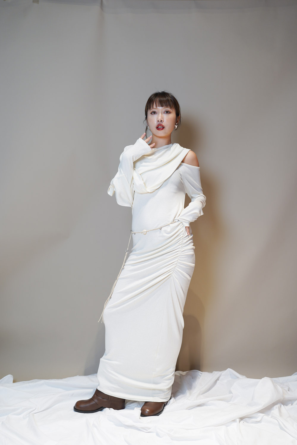 大圓領設計 修飾臉型 /可跌膊穿著 展現女性魅力 小性感/