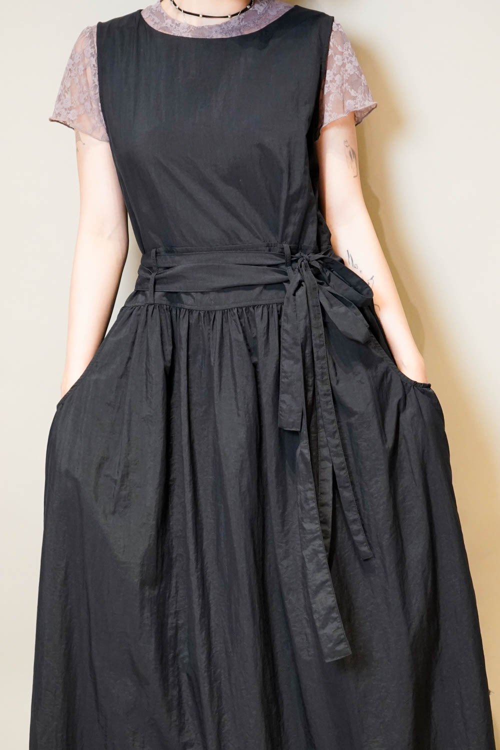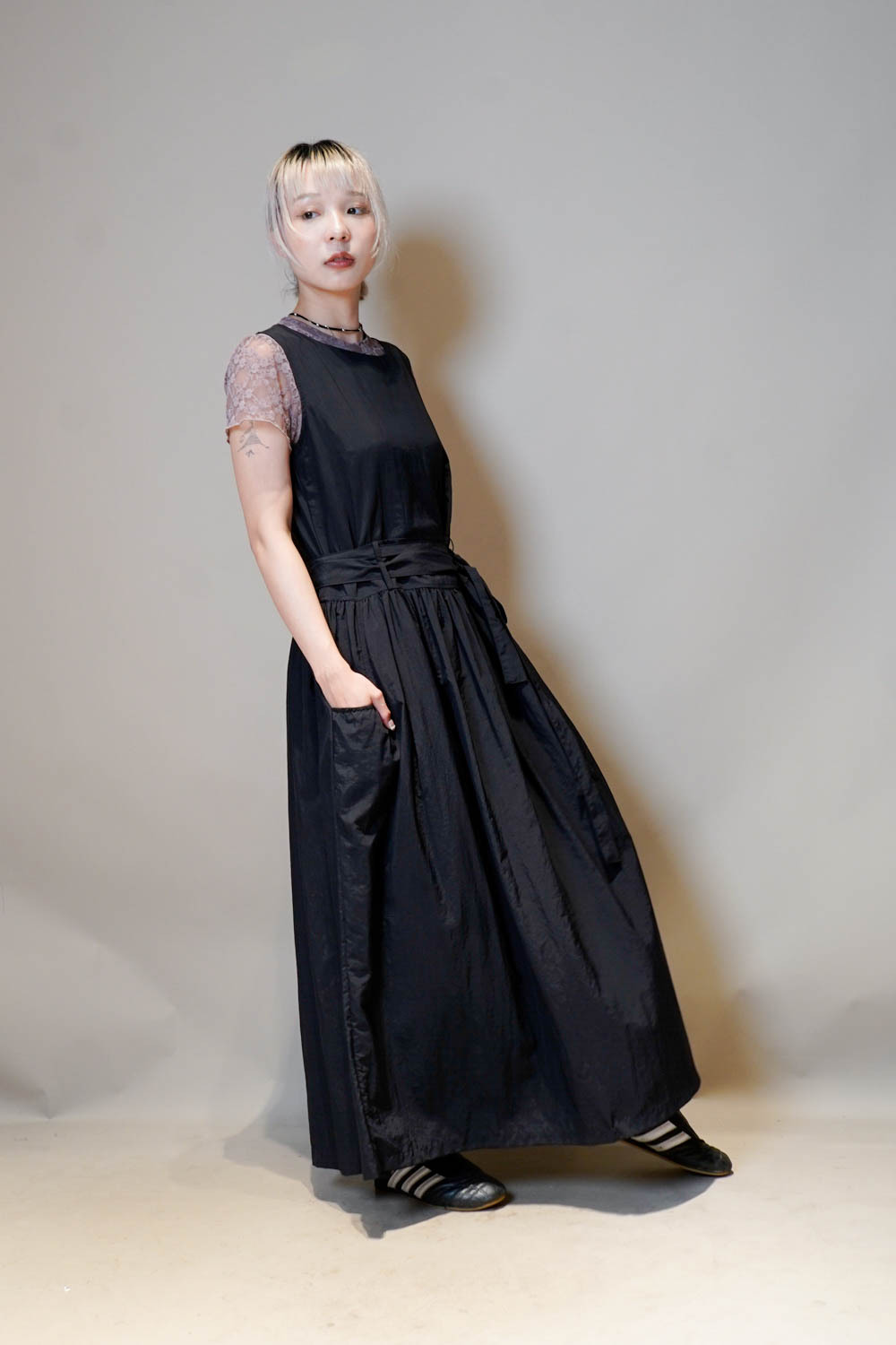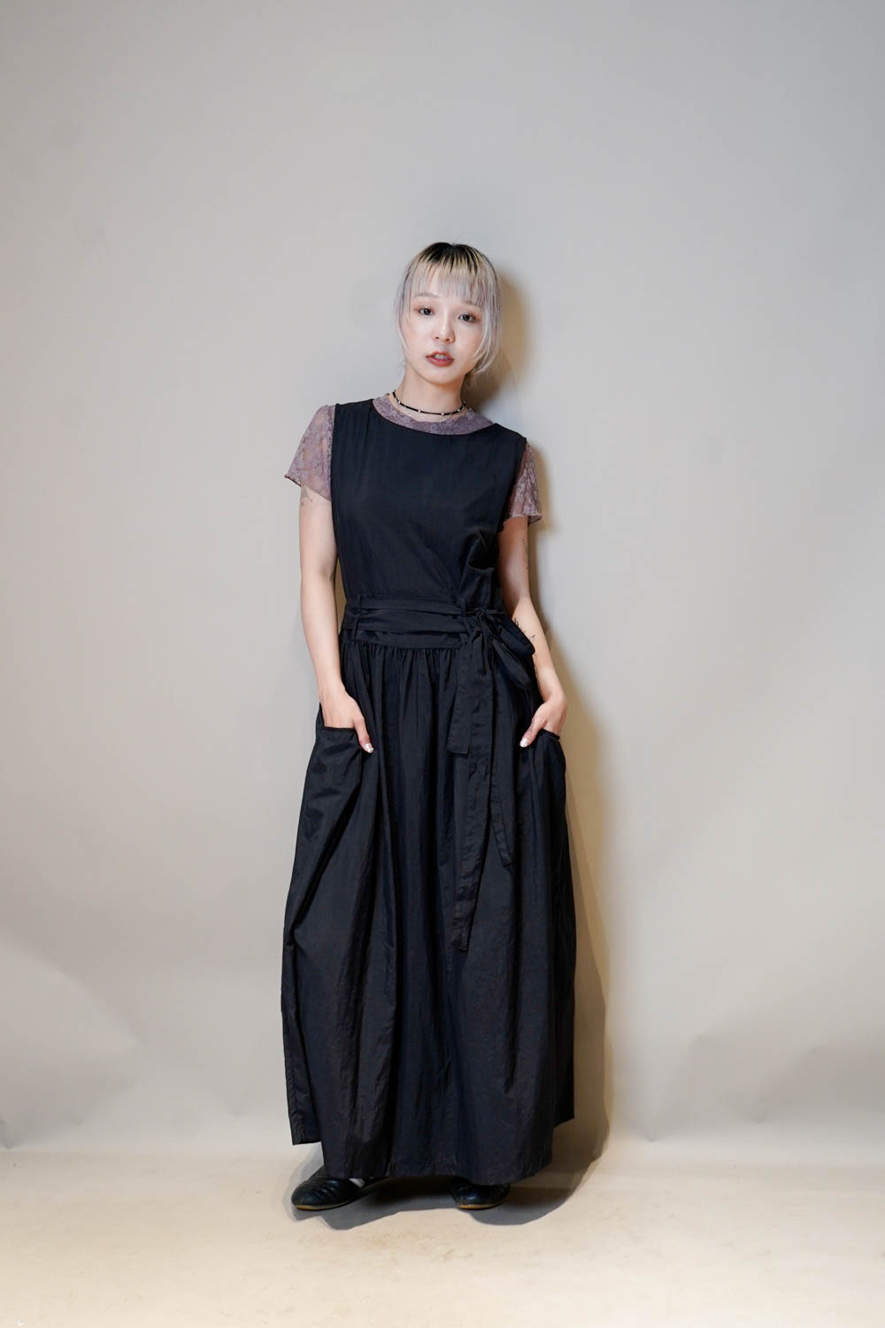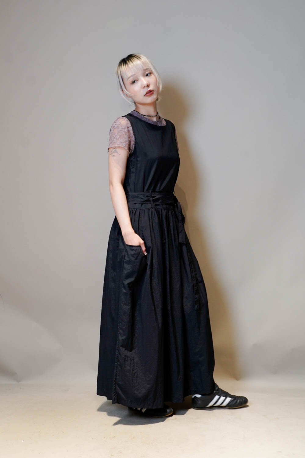 Good girl Sleeveless dress with double belt (BLACK/WHITE)