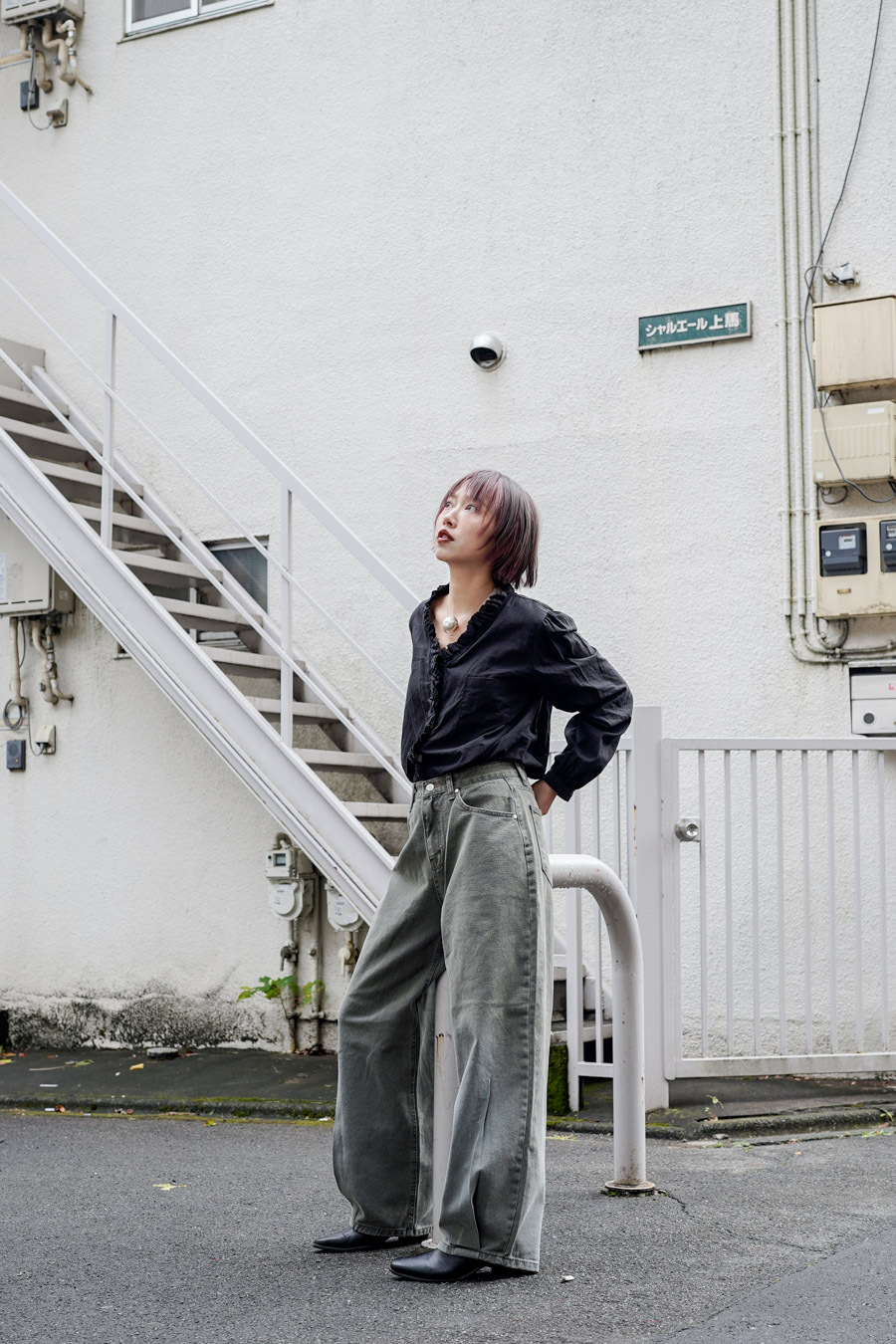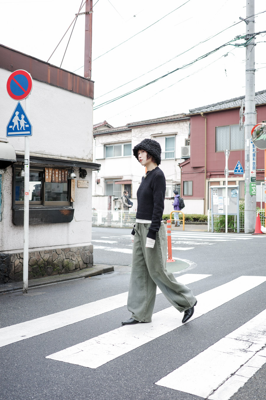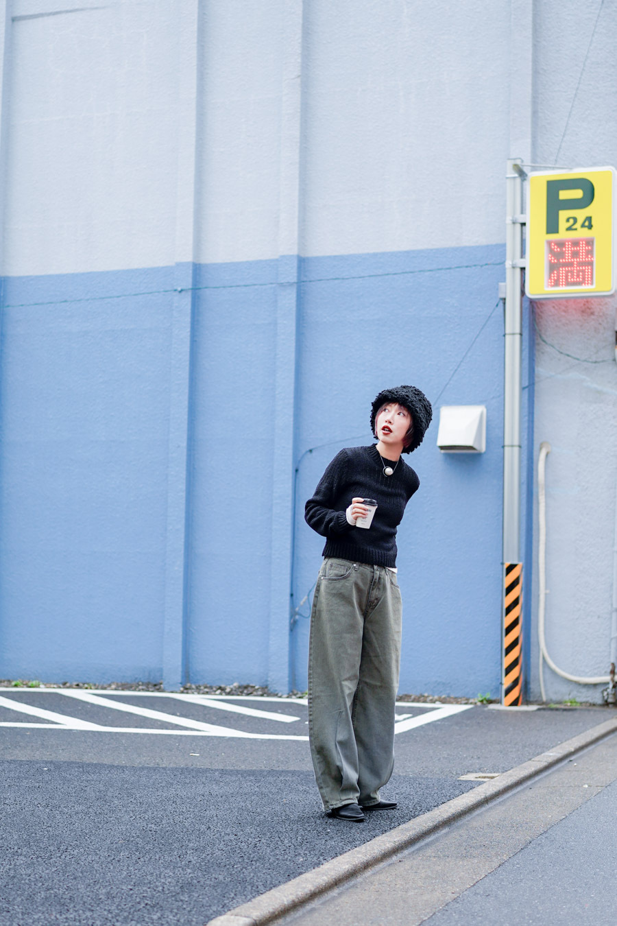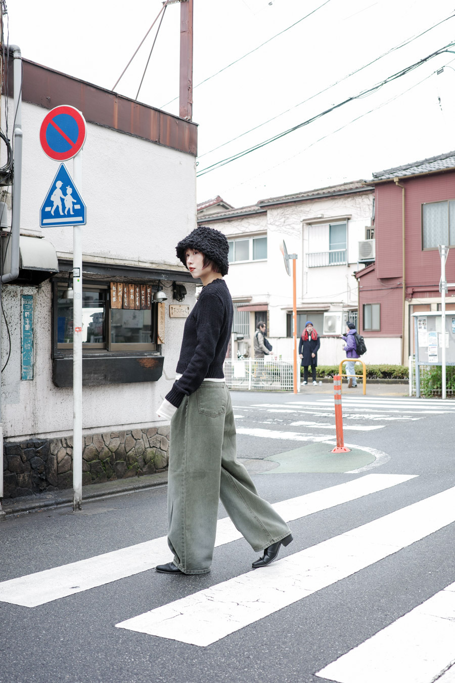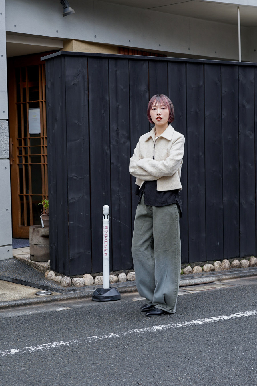 蛹型褲腳剛好落在鞋面/ 紫色復古 跳脫配搭 / 軍