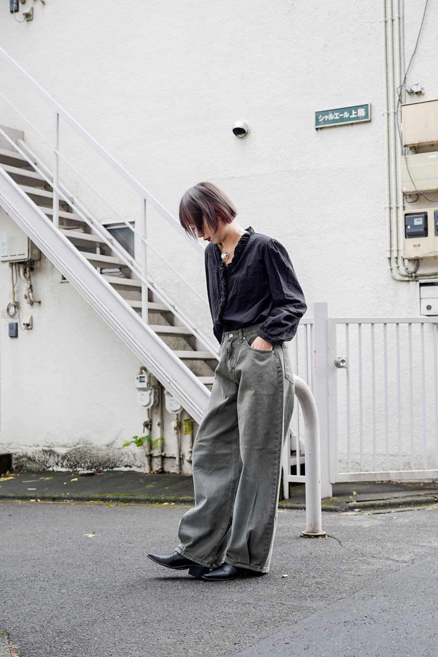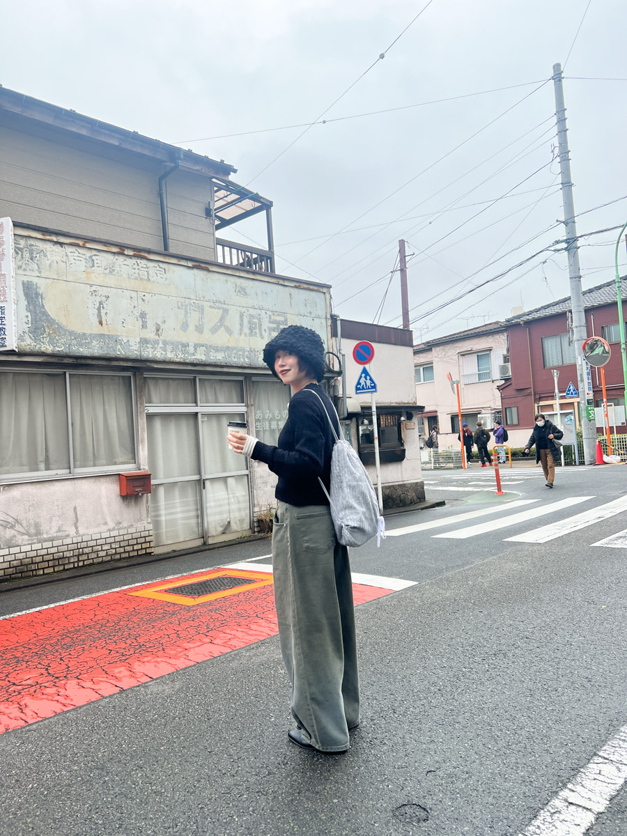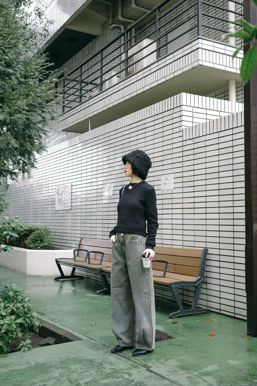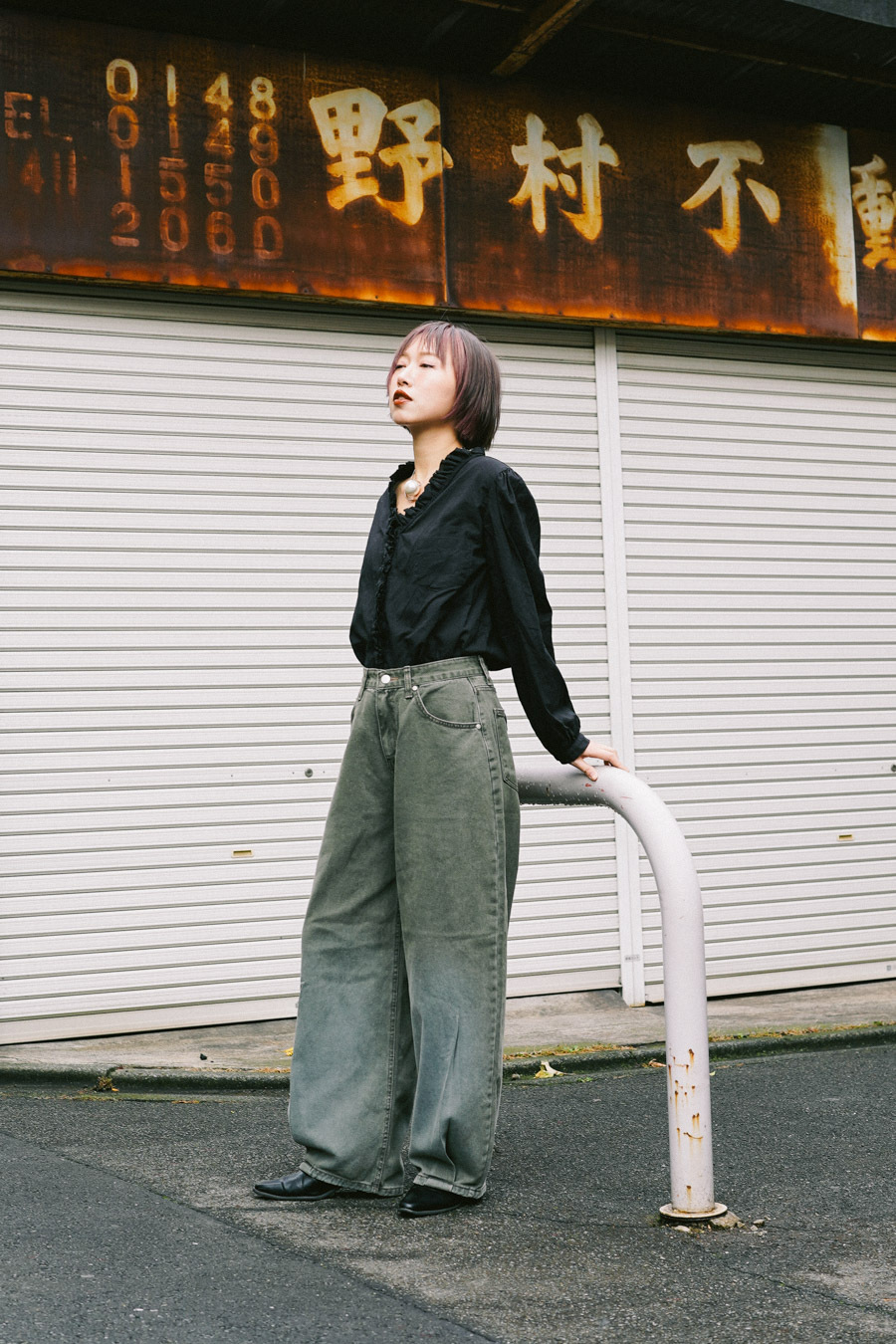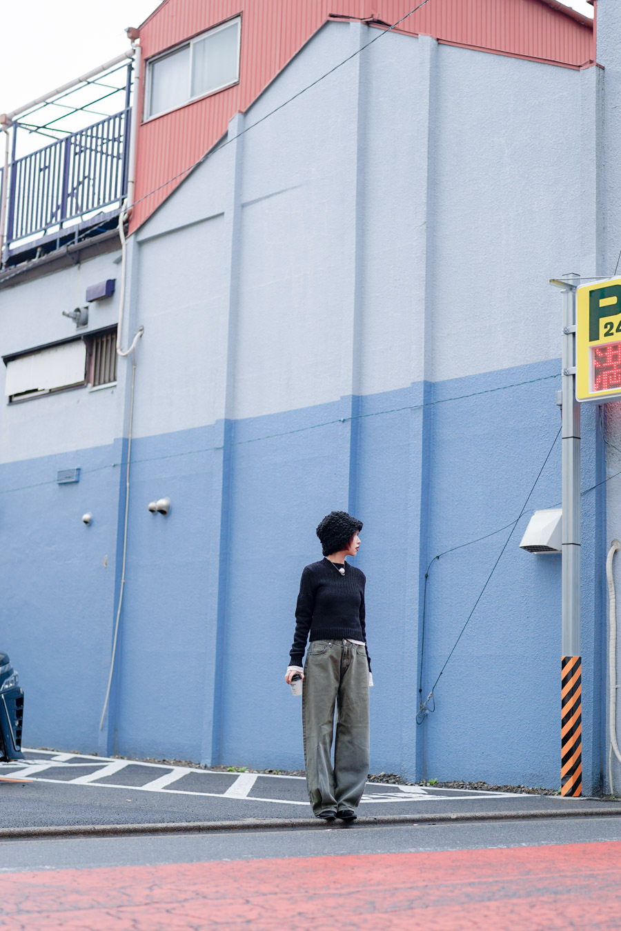 蛹型褲腳剛好落在鞋面/ 紫色復古 跳脫配搭 / 軍