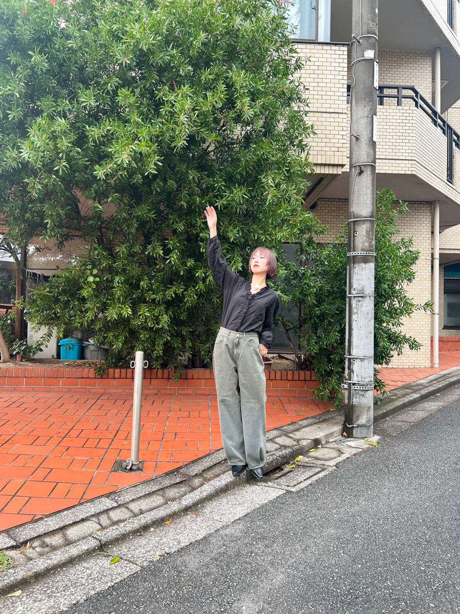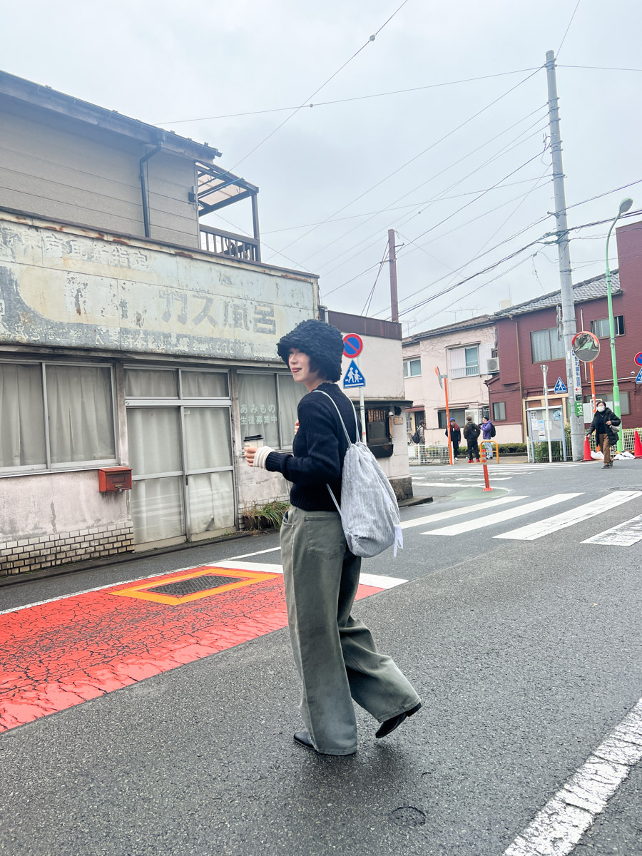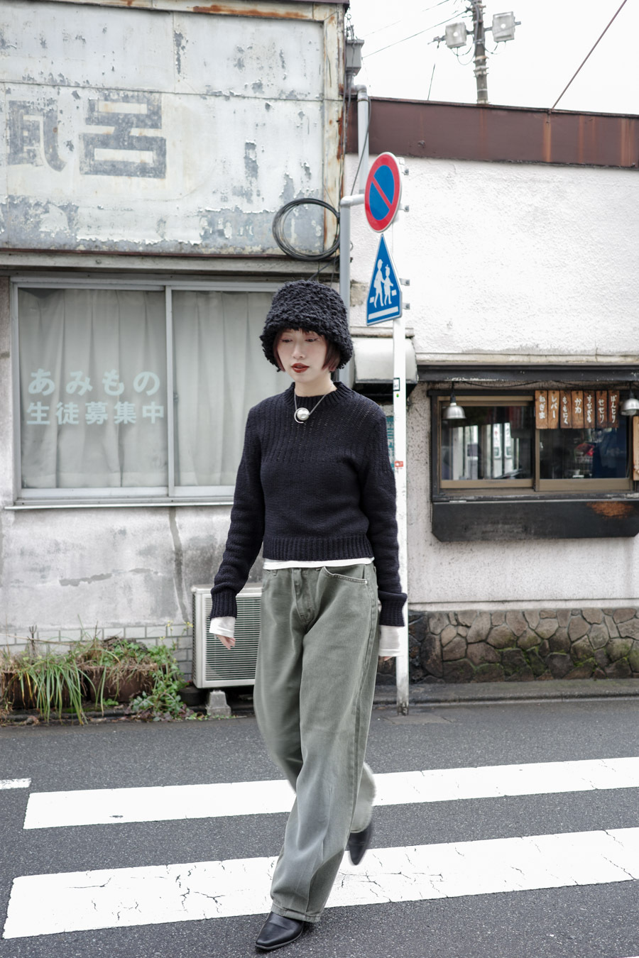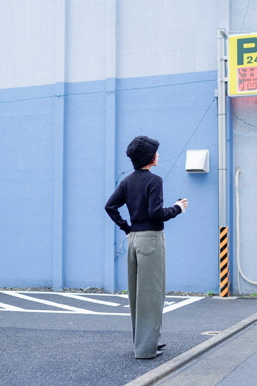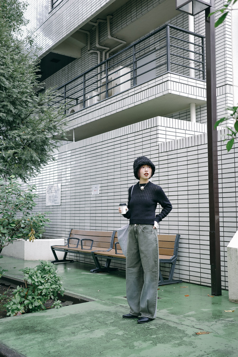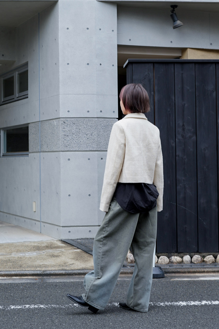 蛹型褲腳剛好落在鞋面/ 紫色復古 跳脫配搭 / 軍