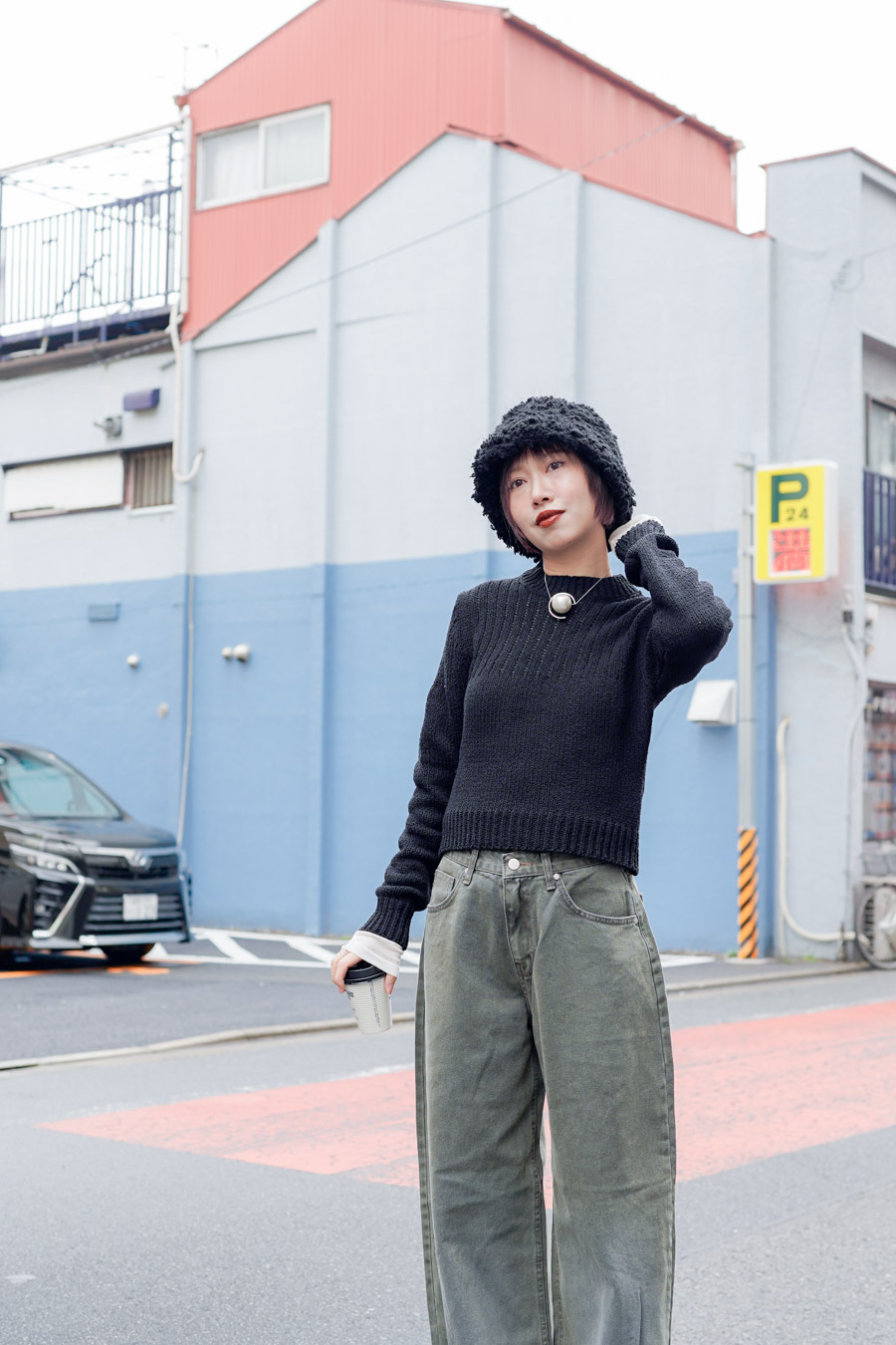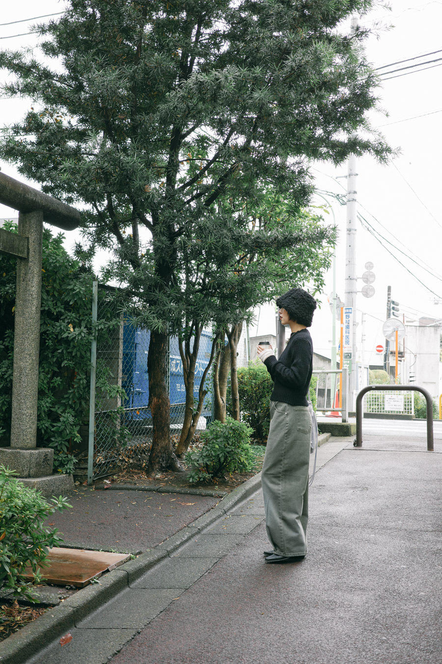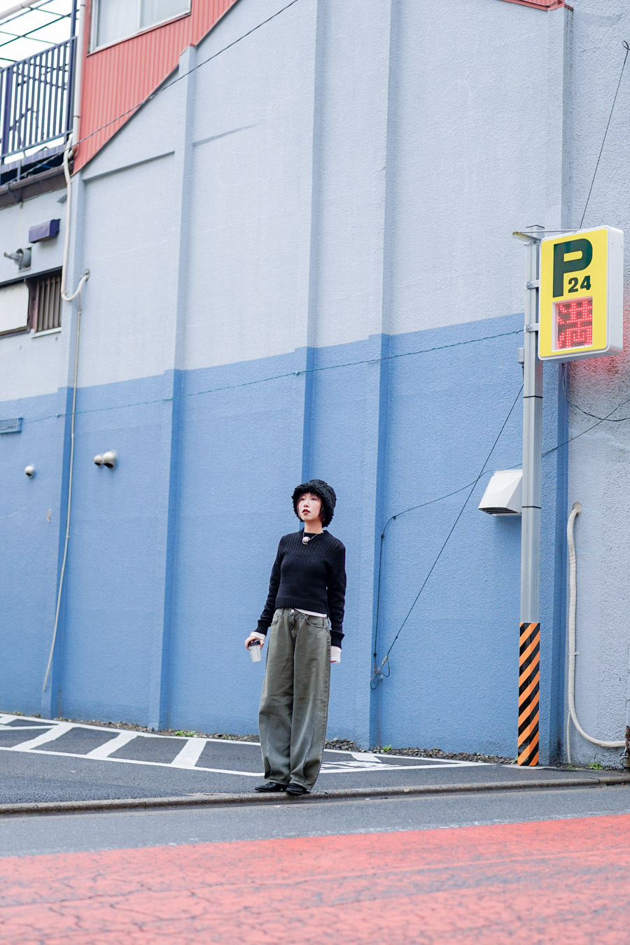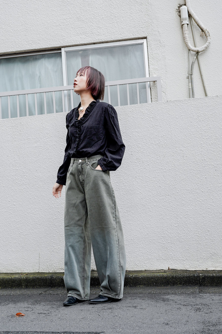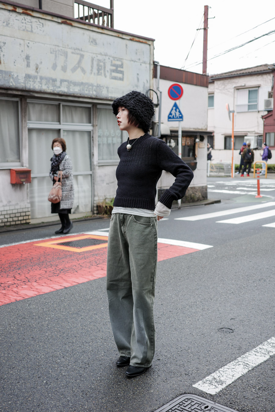 蛹型褲腳剛好落在鞋面/ 紫色復古 跳脫配搭 / 軍