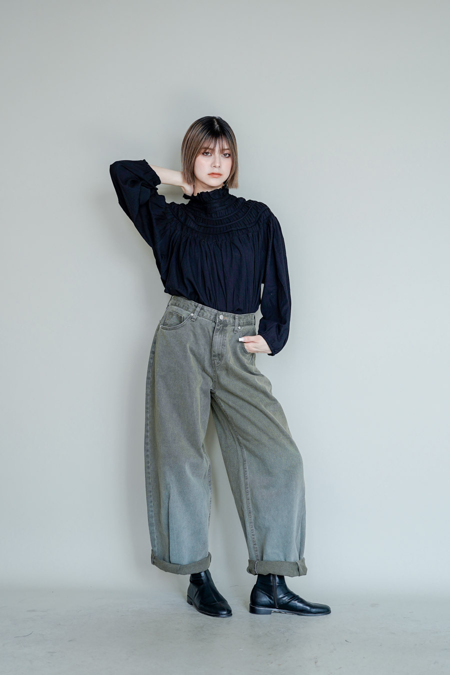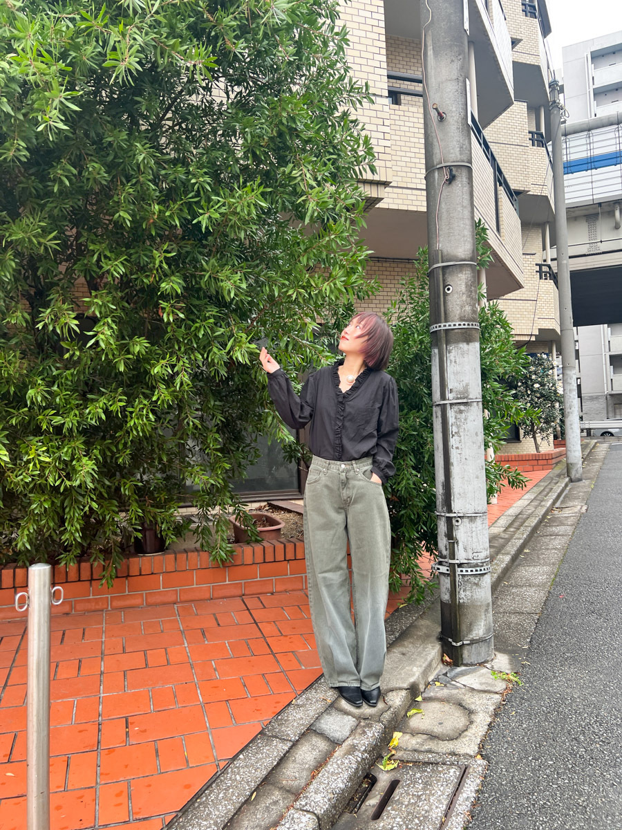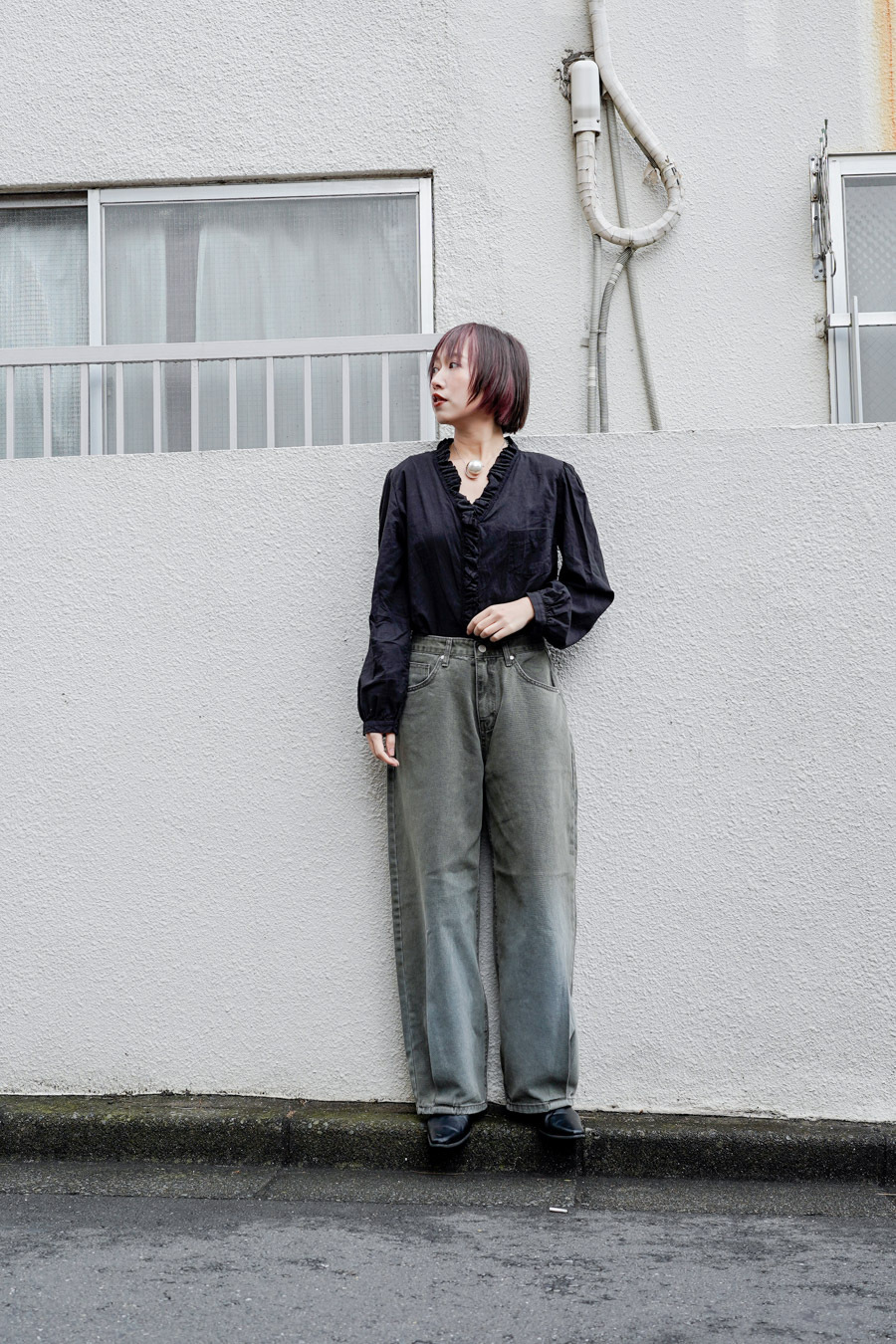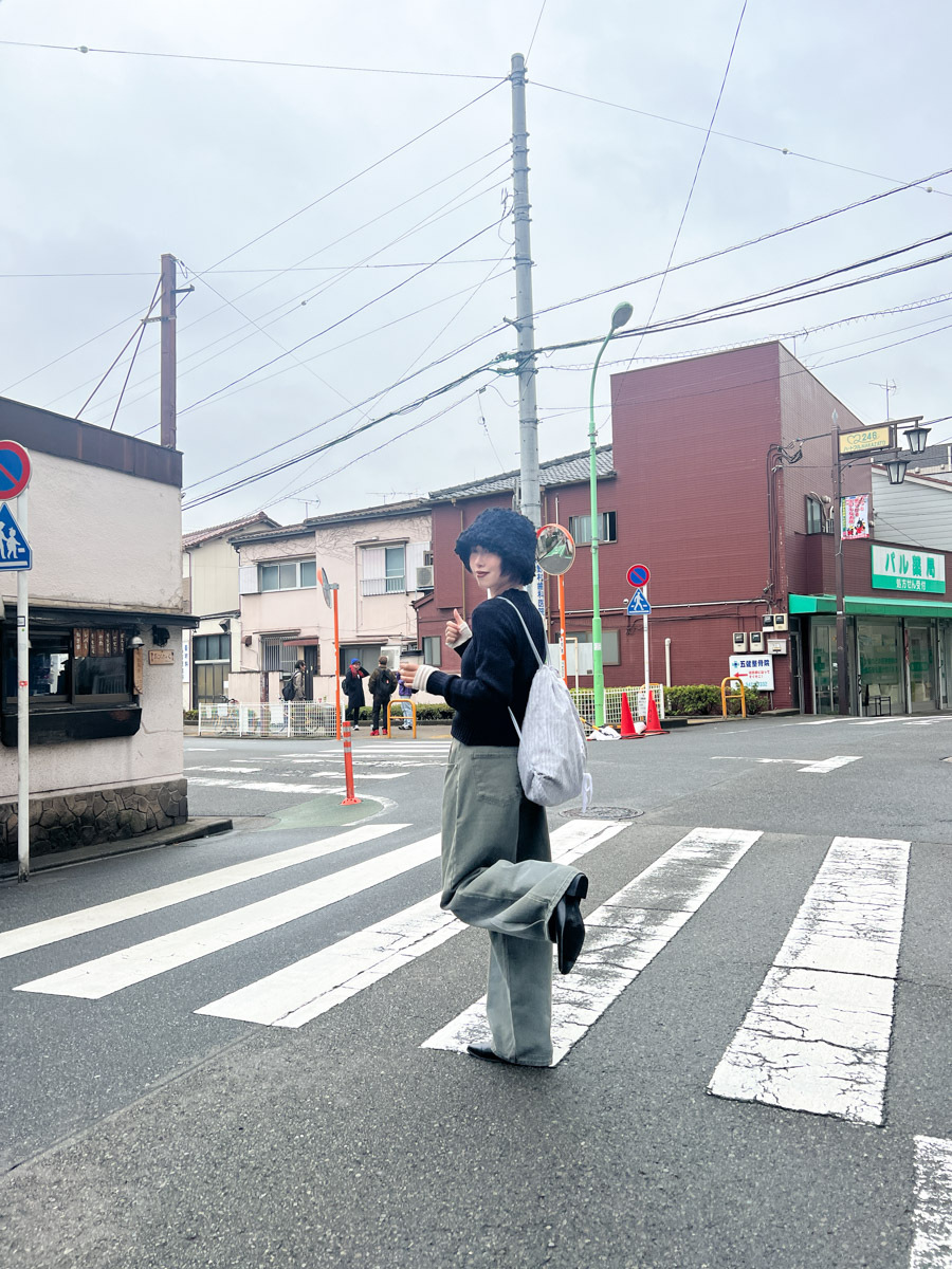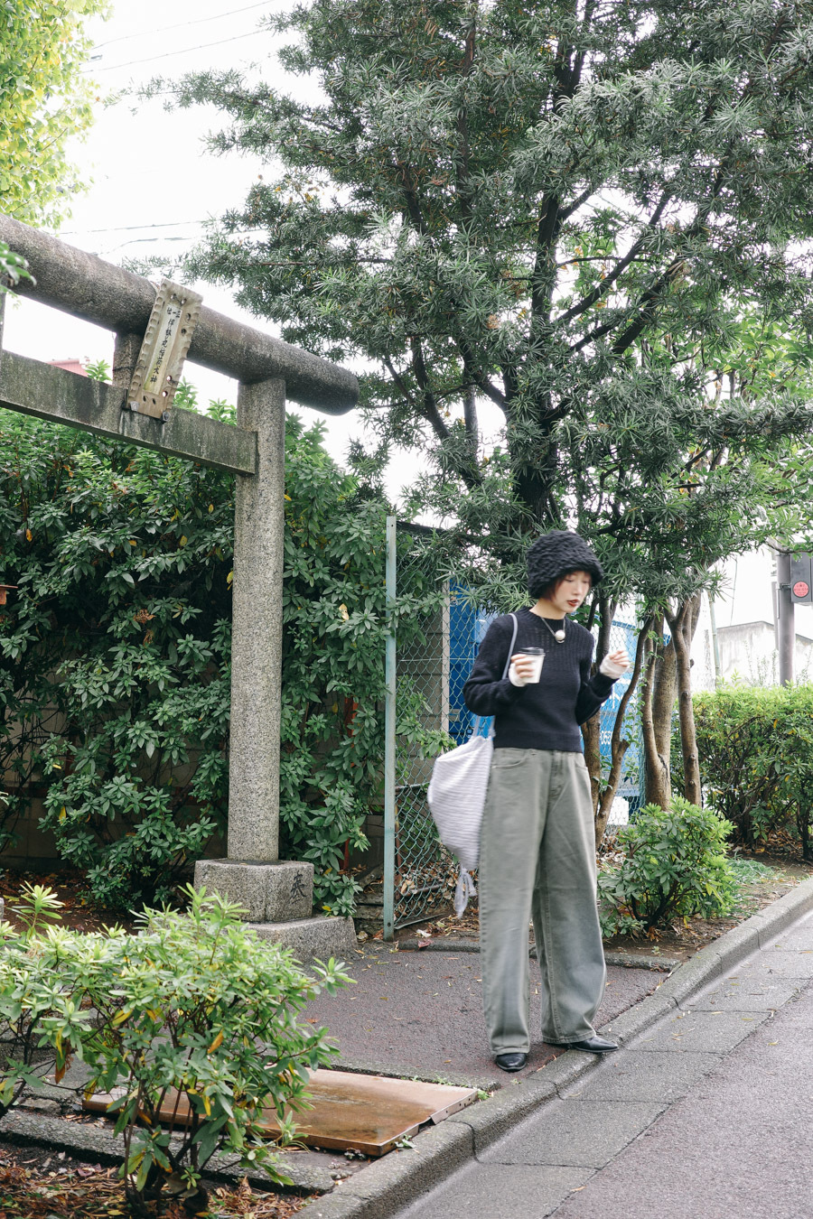 蛹型褲腳剛好落在鞋面/ 紫色復古 跳脫配搭 / 軍