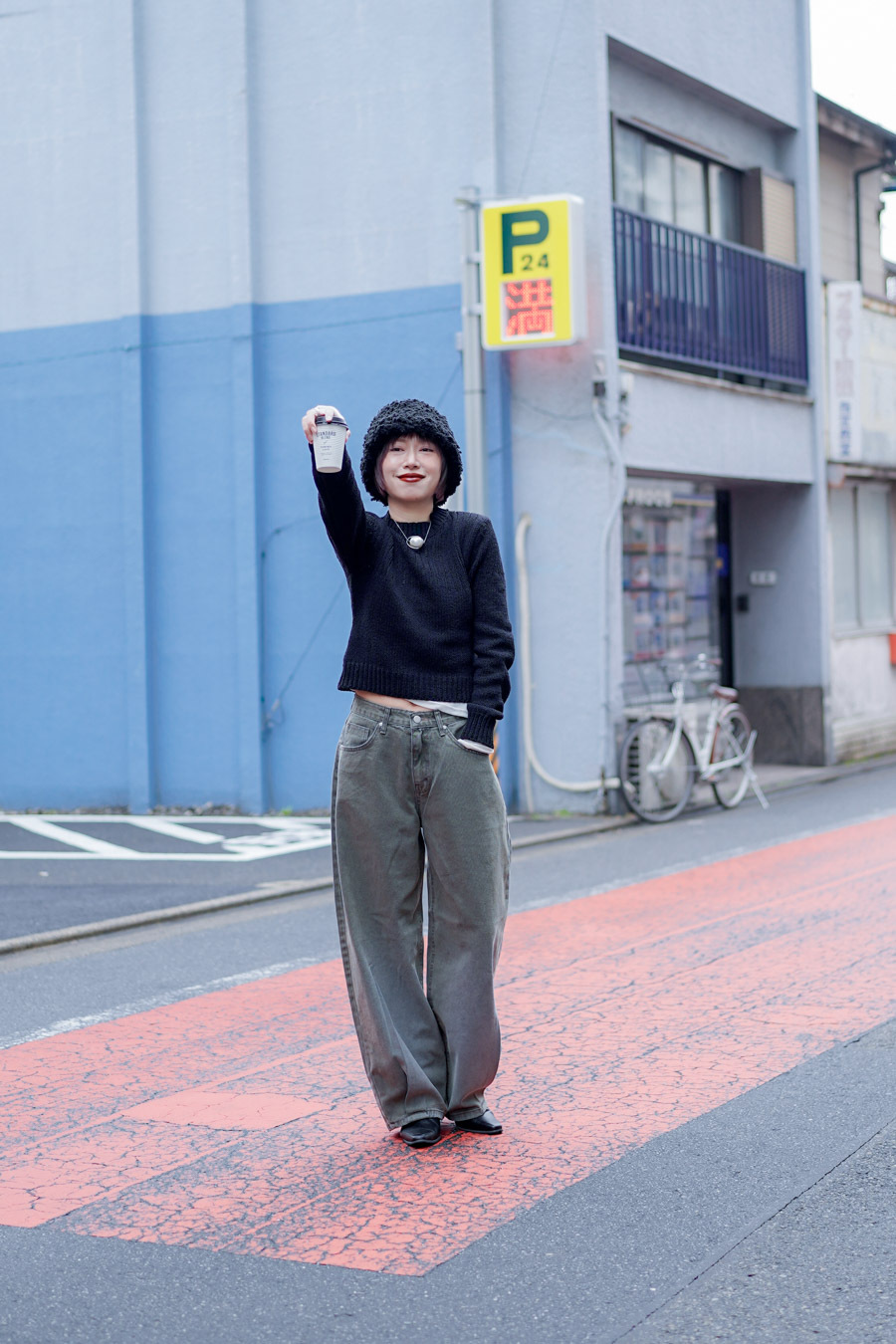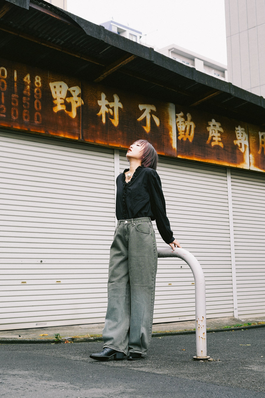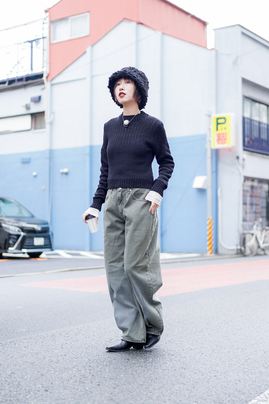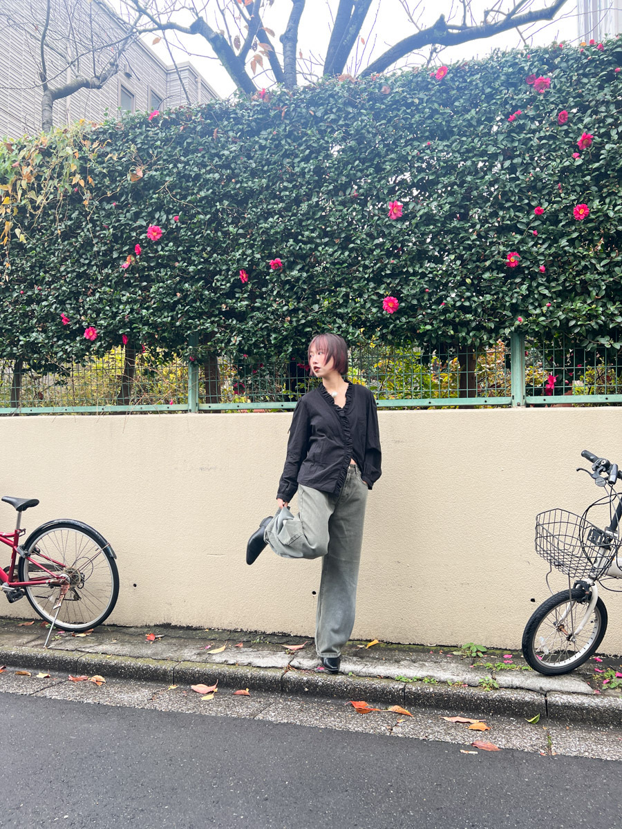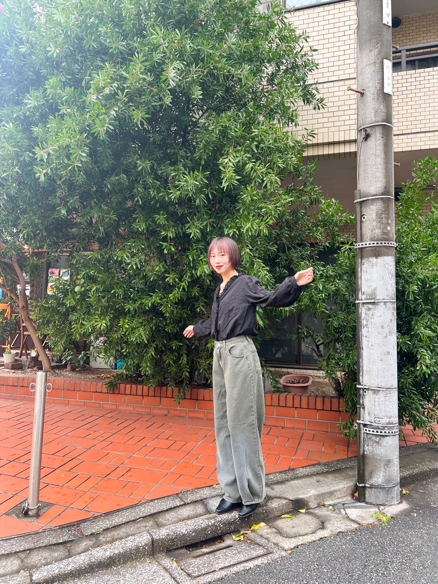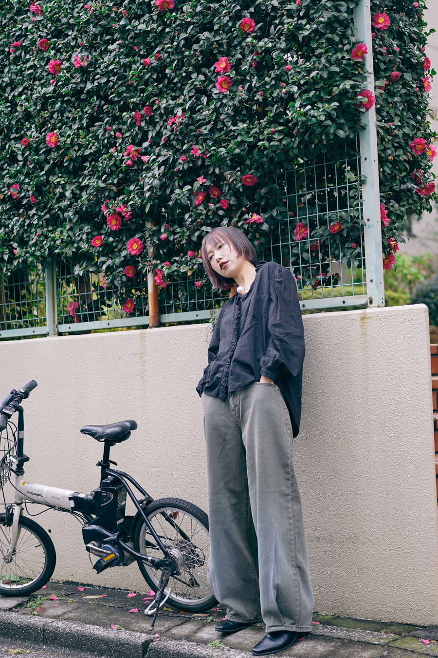 蛹型褲腳剛好落在鞋面/ 紫色復古 跳脫配搭 / 軍