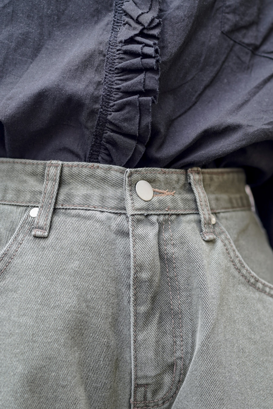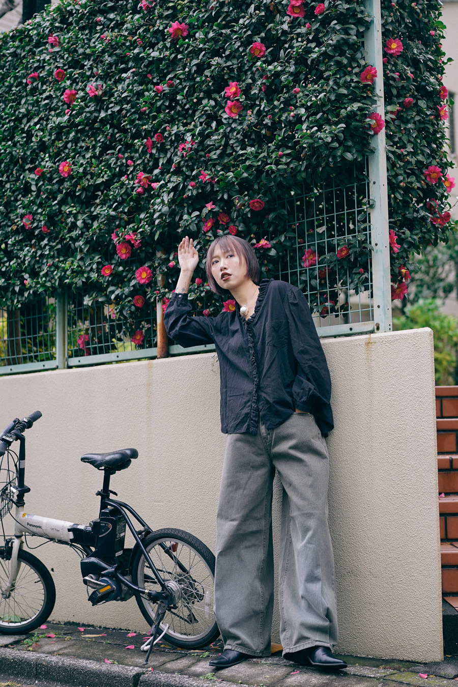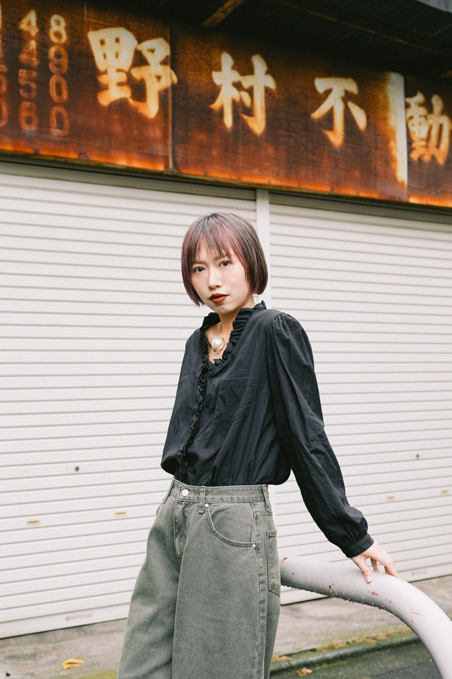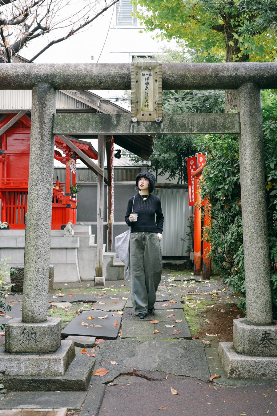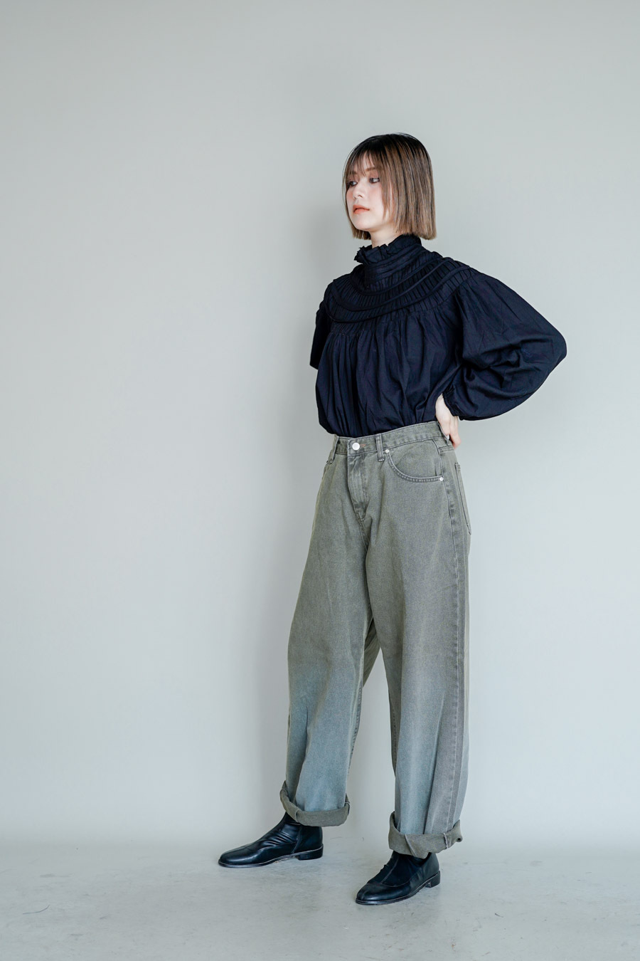 蛹型褲腳剛好落在鞋面/ 紫色復古 跳脫配搭 / 軍