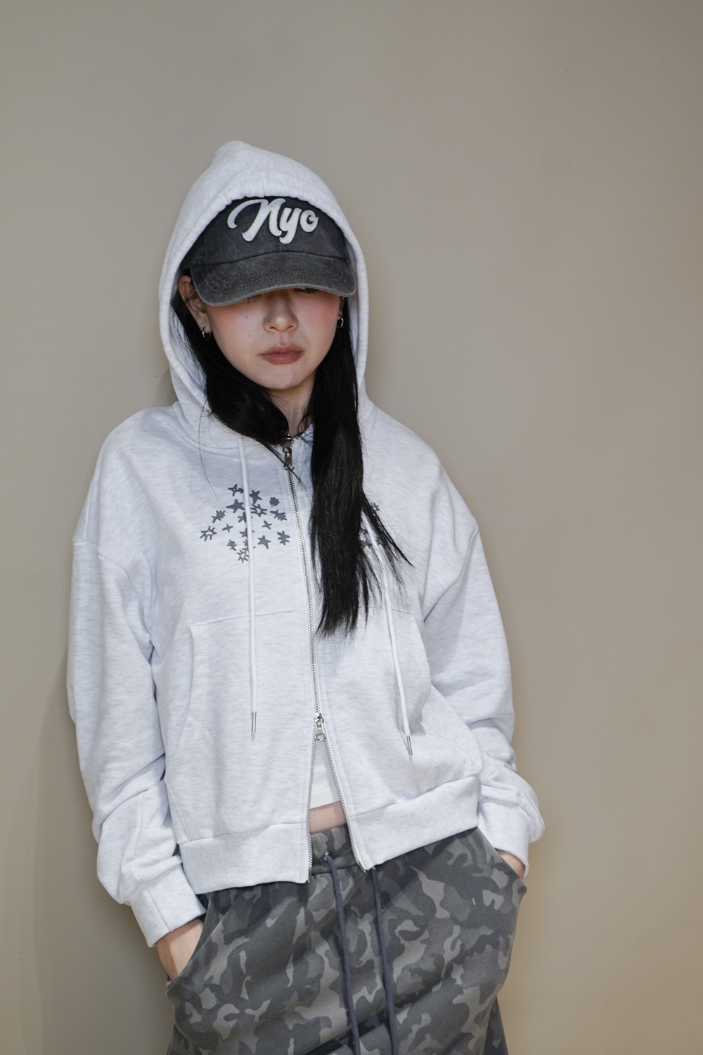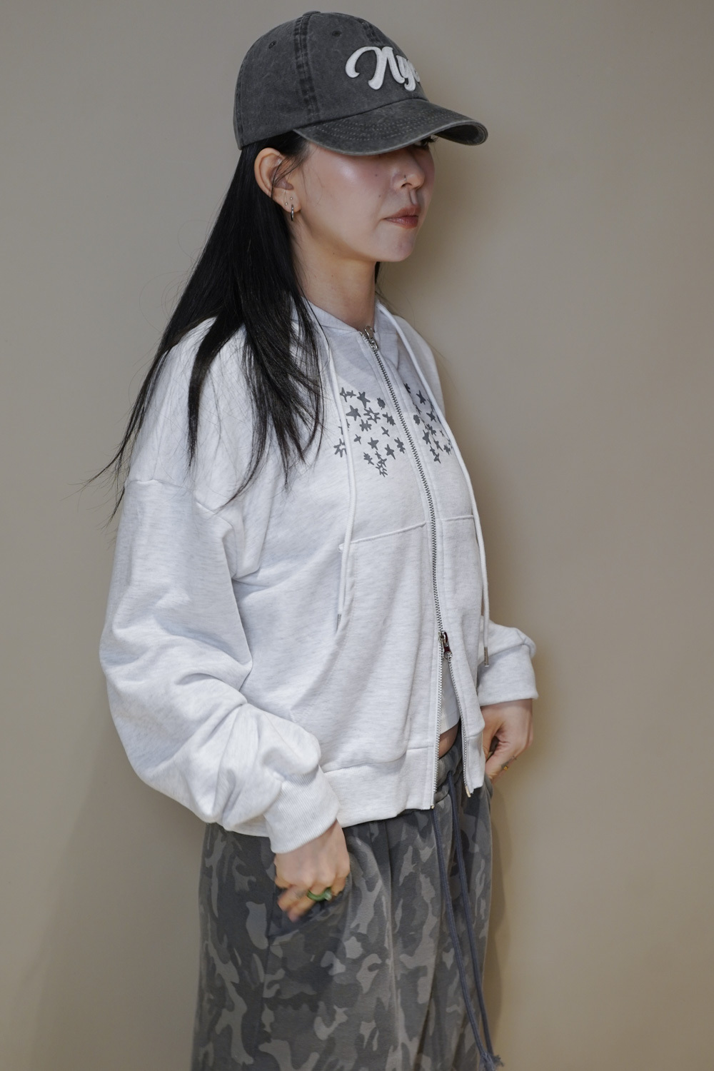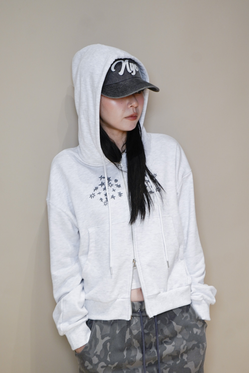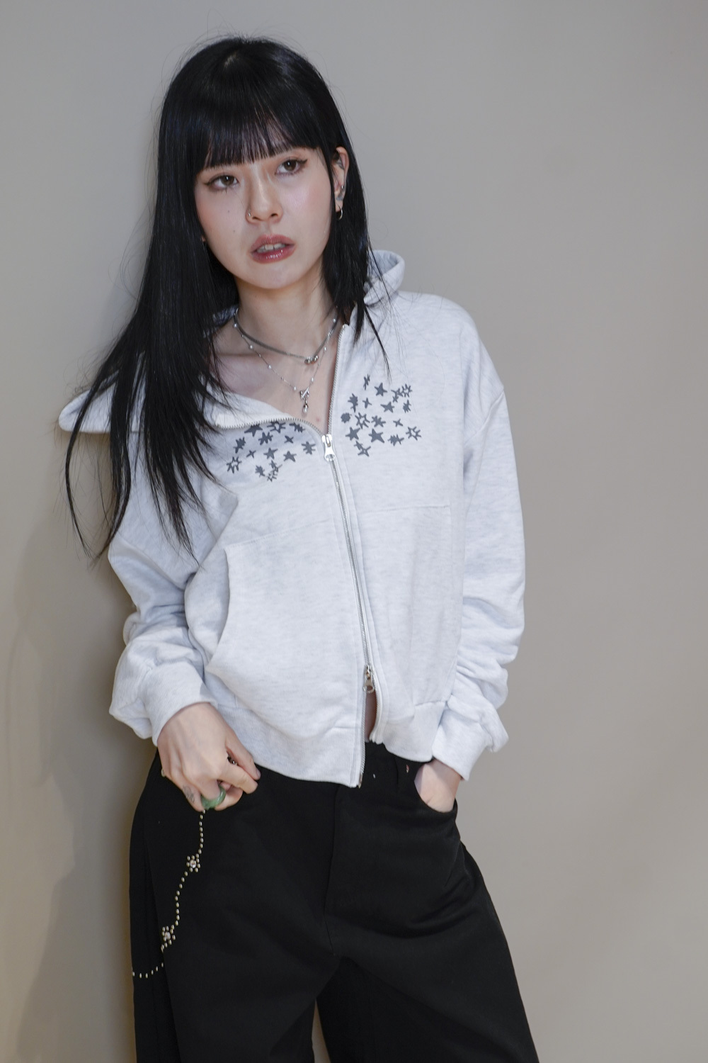 Hand drawing Stars zip up (OAT/ DARK GREY)