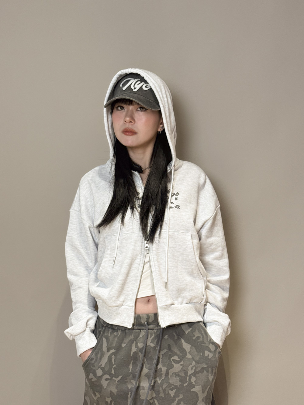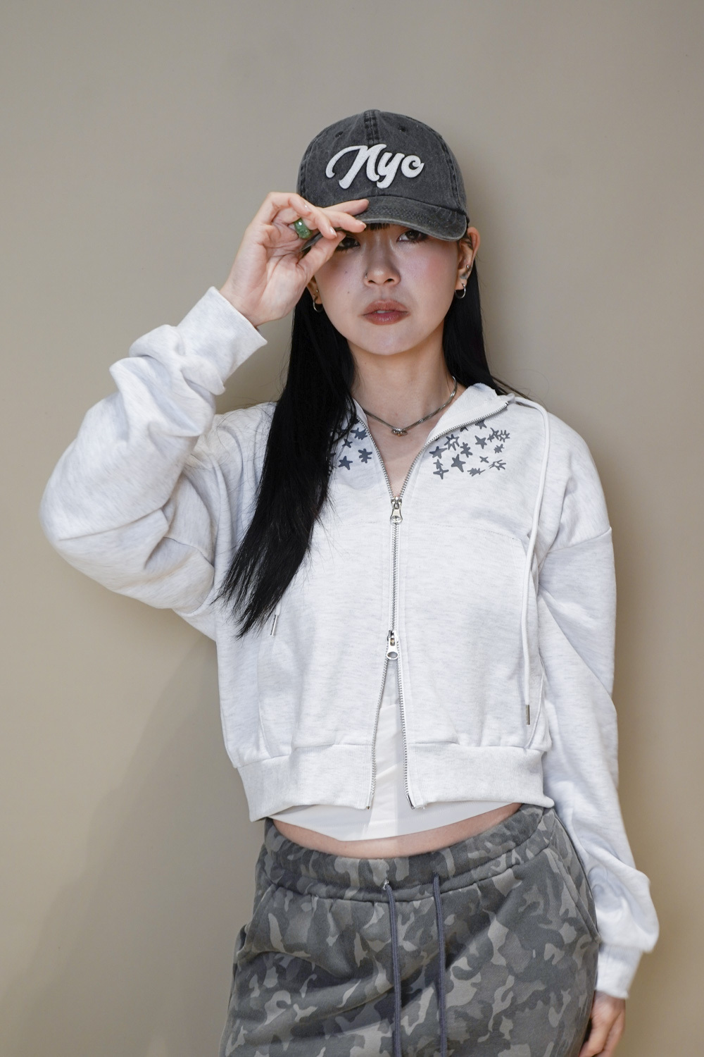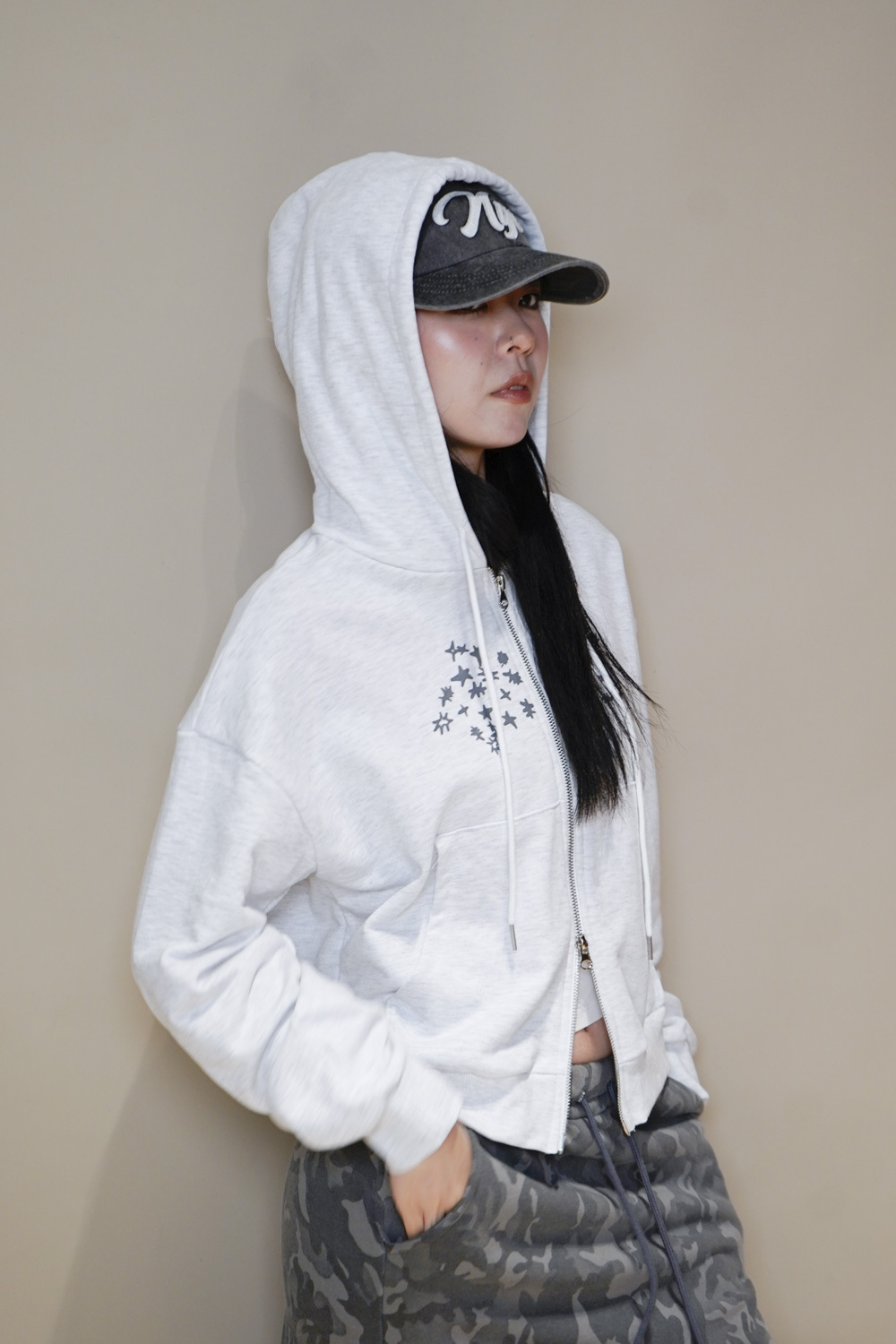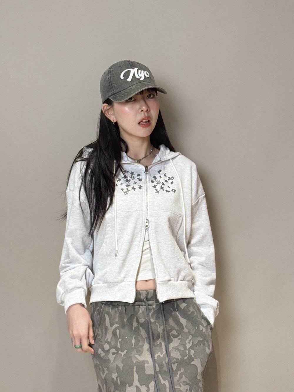 Hand drawing Stars zip up (OAT/ DARK GREY)