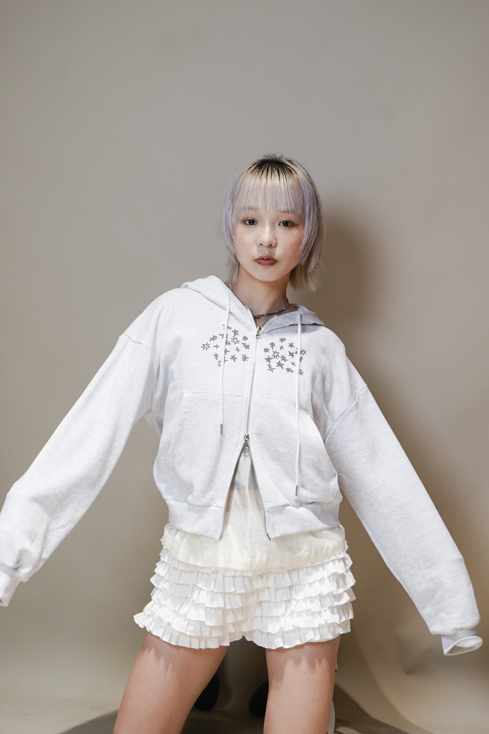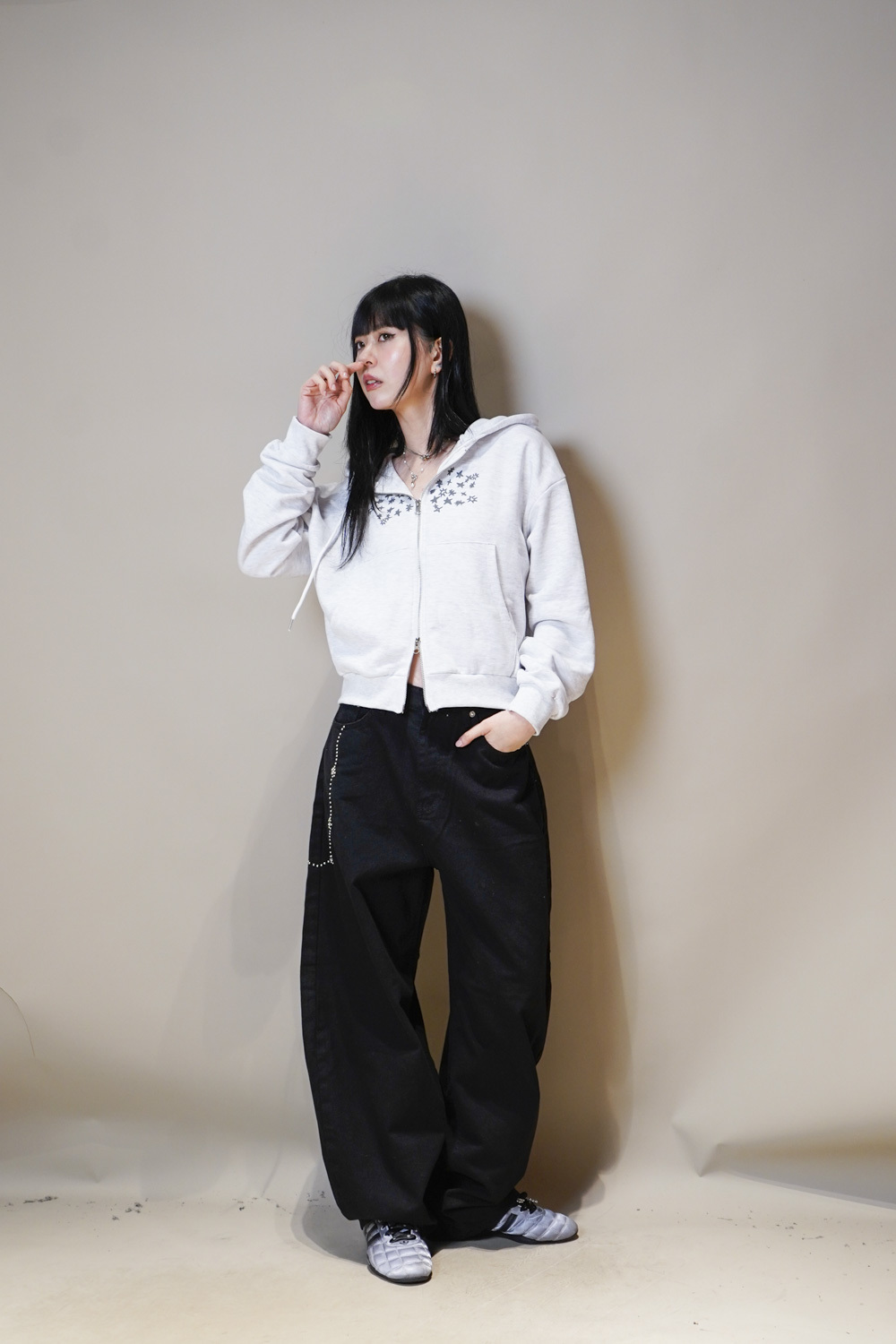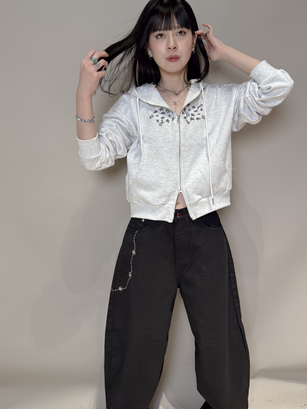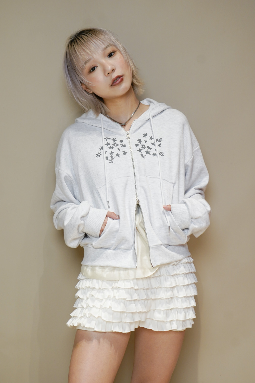 Hand drawing Stars zip up (OAT/ DARK GREY)