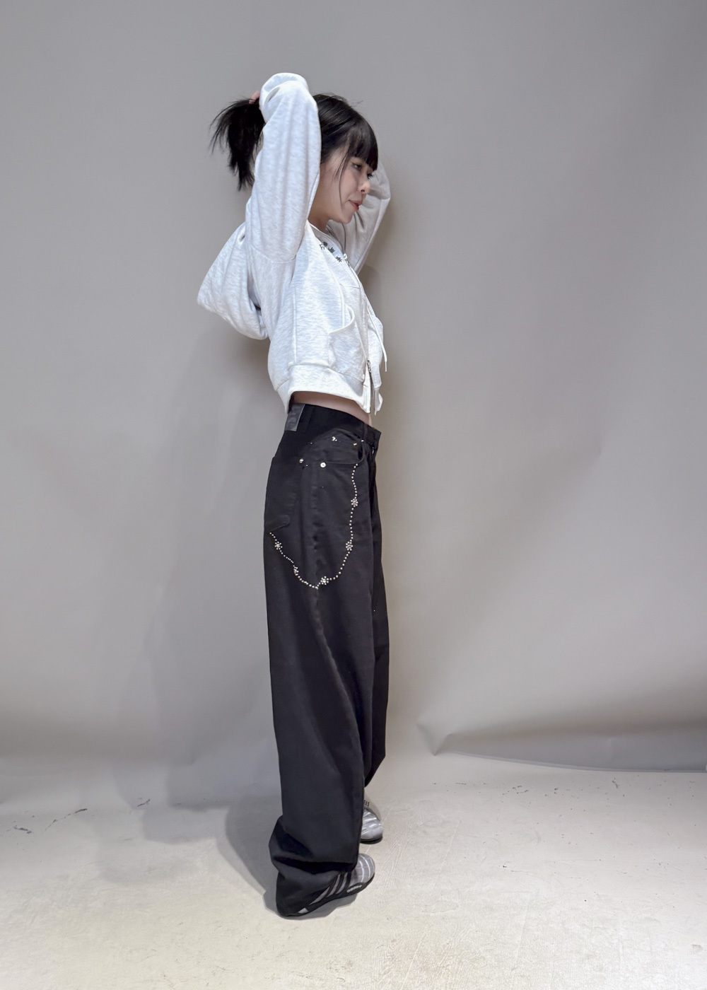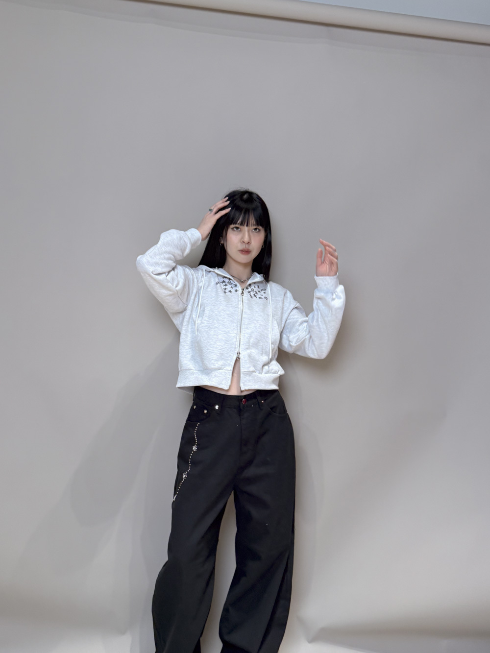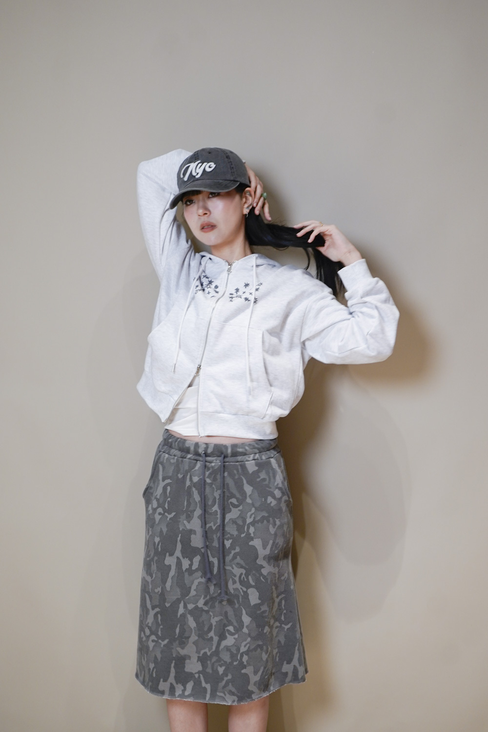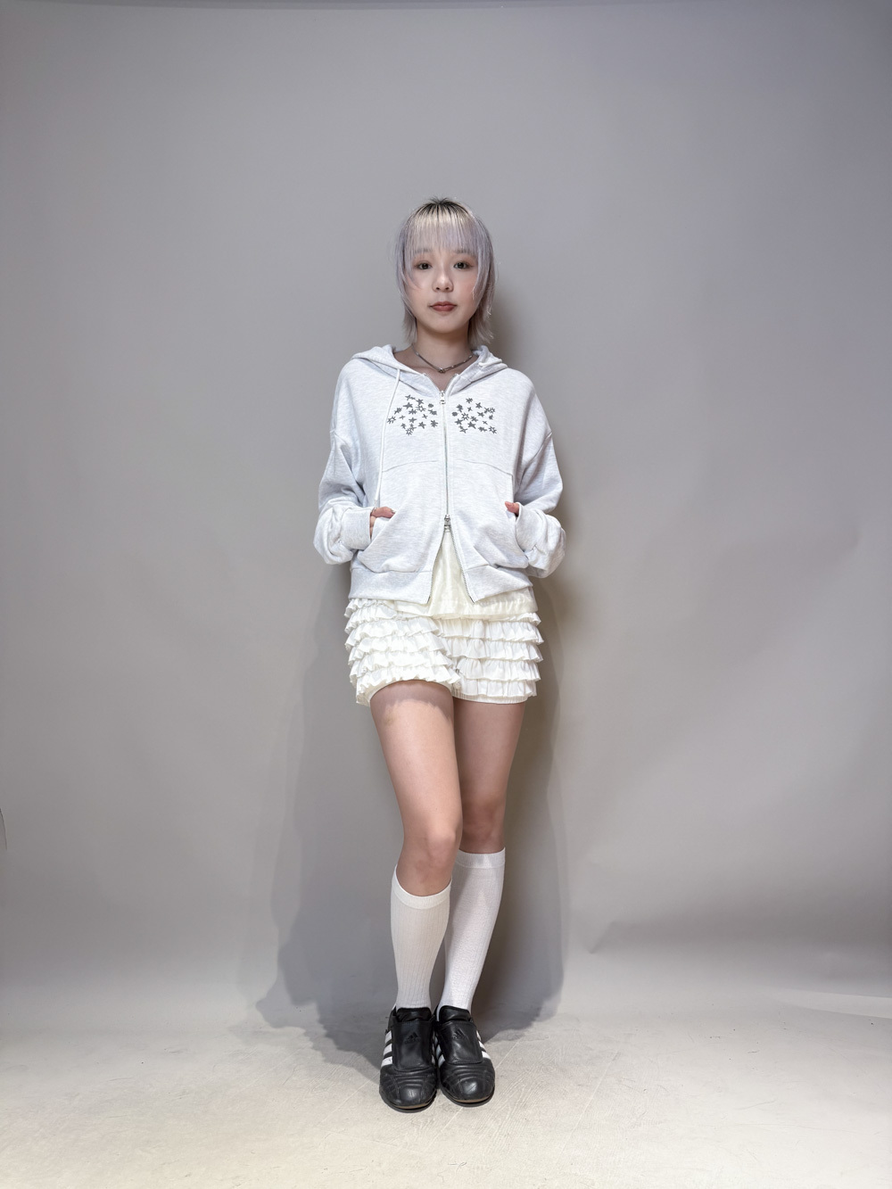 Hand drawing Stars zip up (OAT/ DARK GREY)