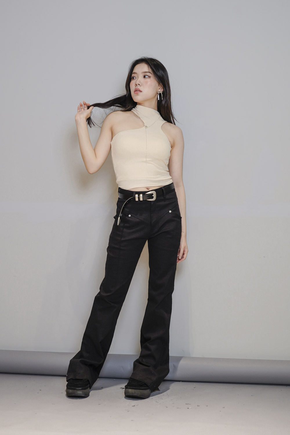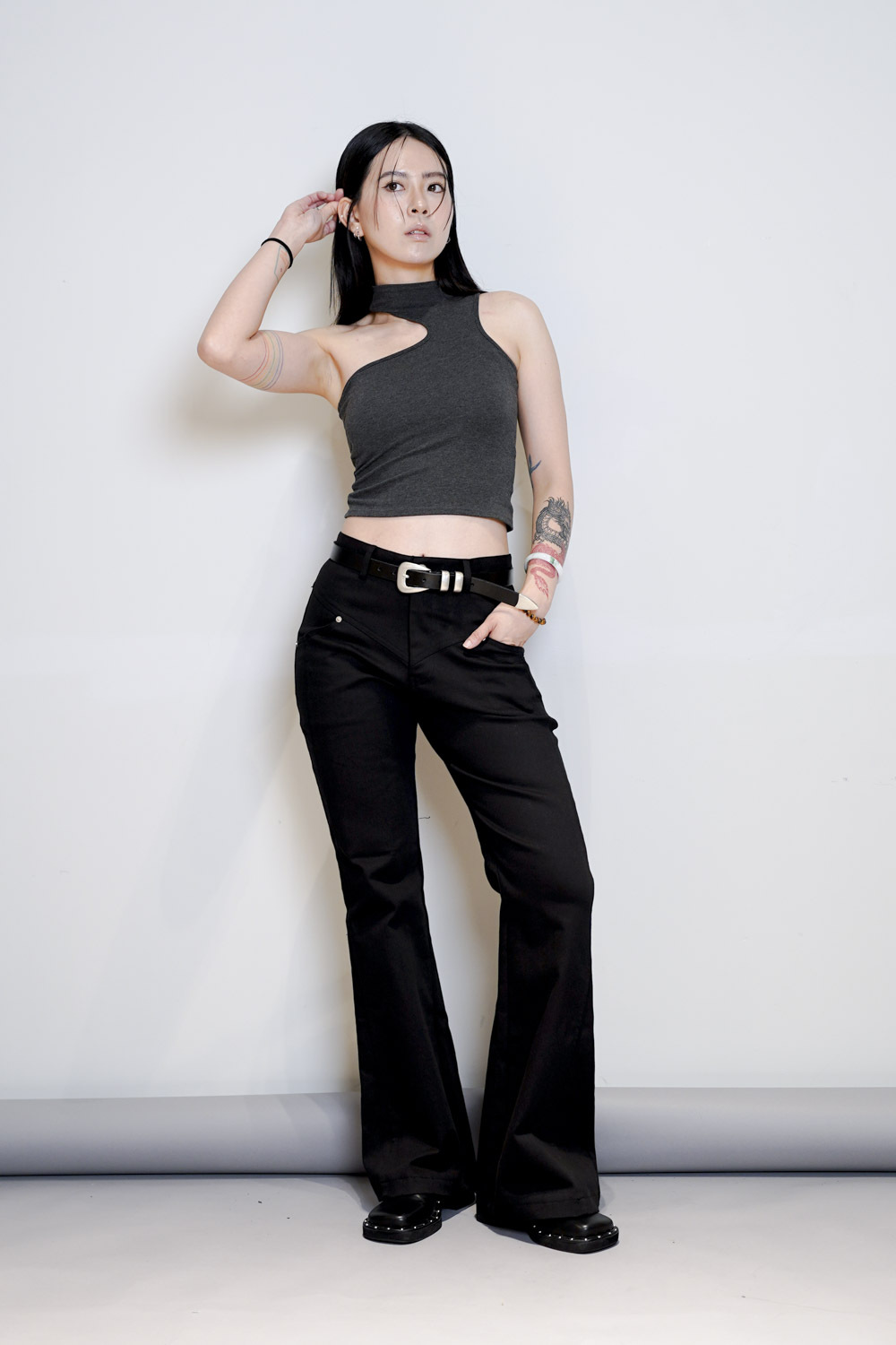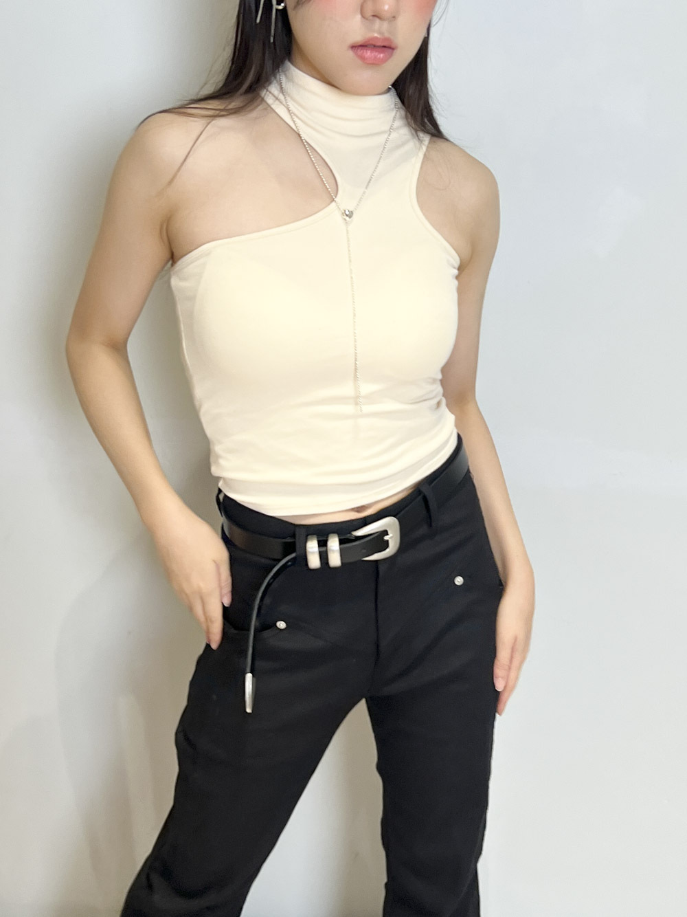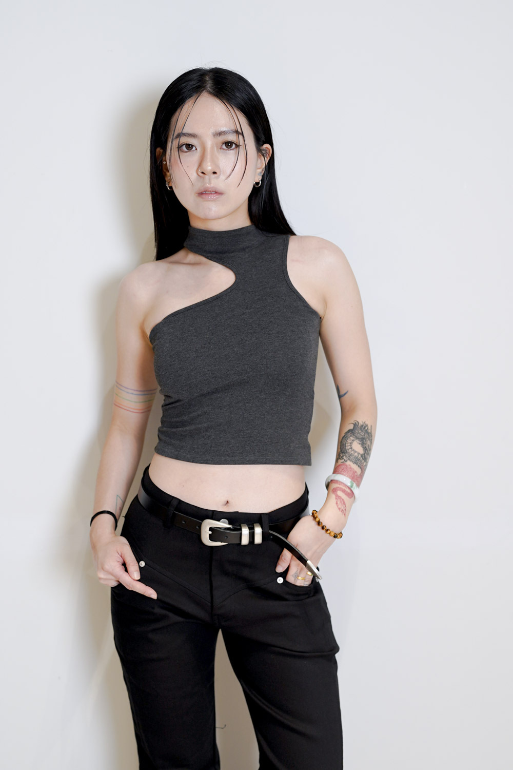 簡單襯一件crop tee + 質感皮帶已可出門/