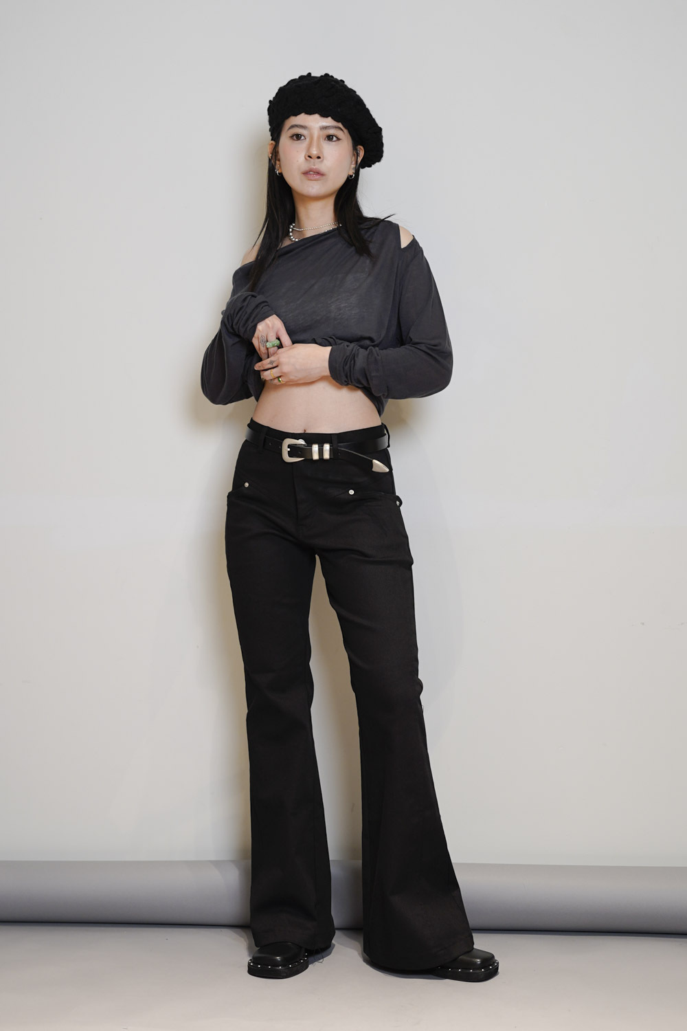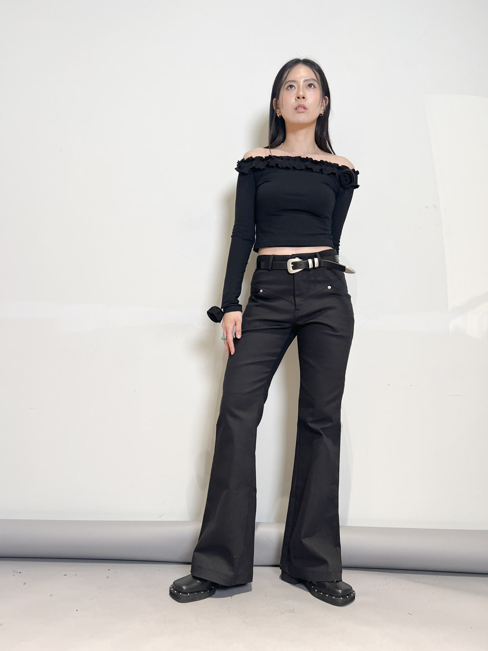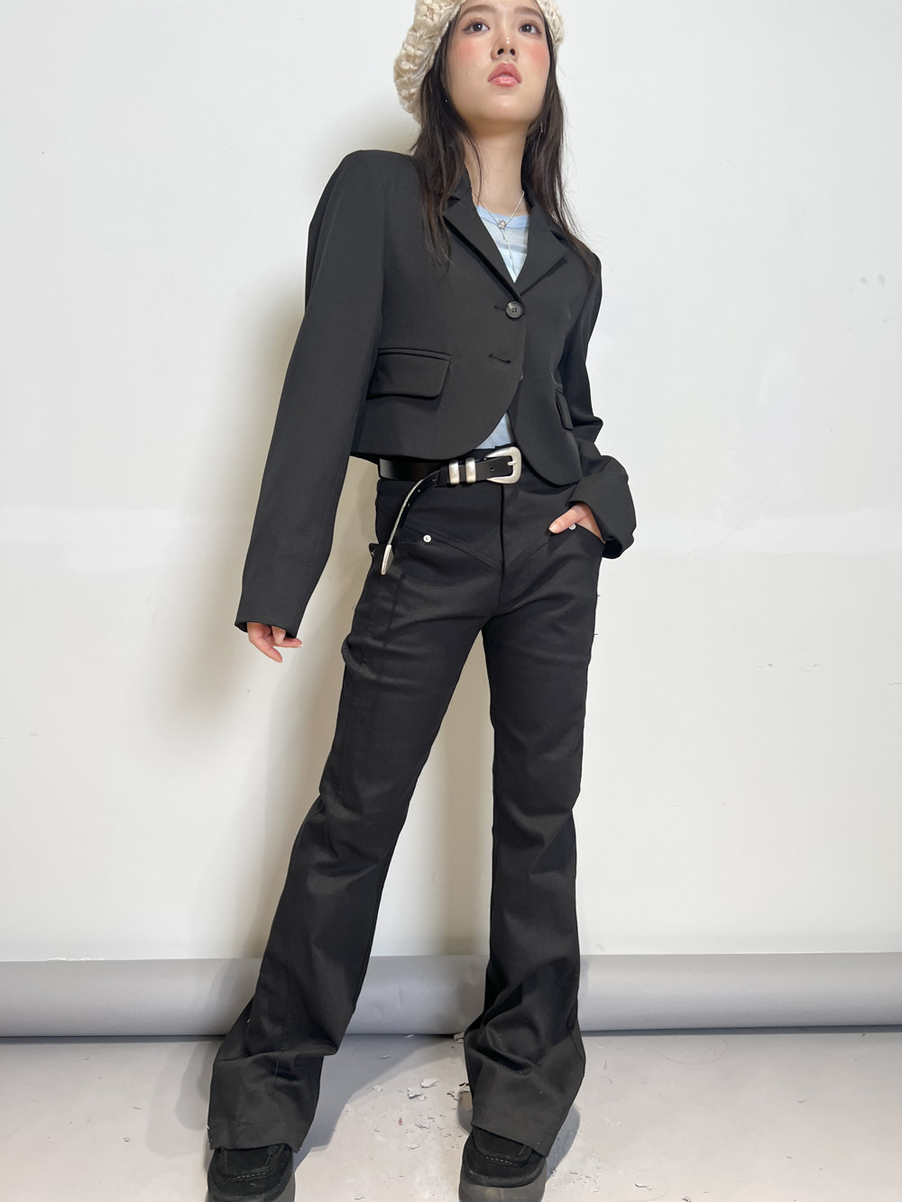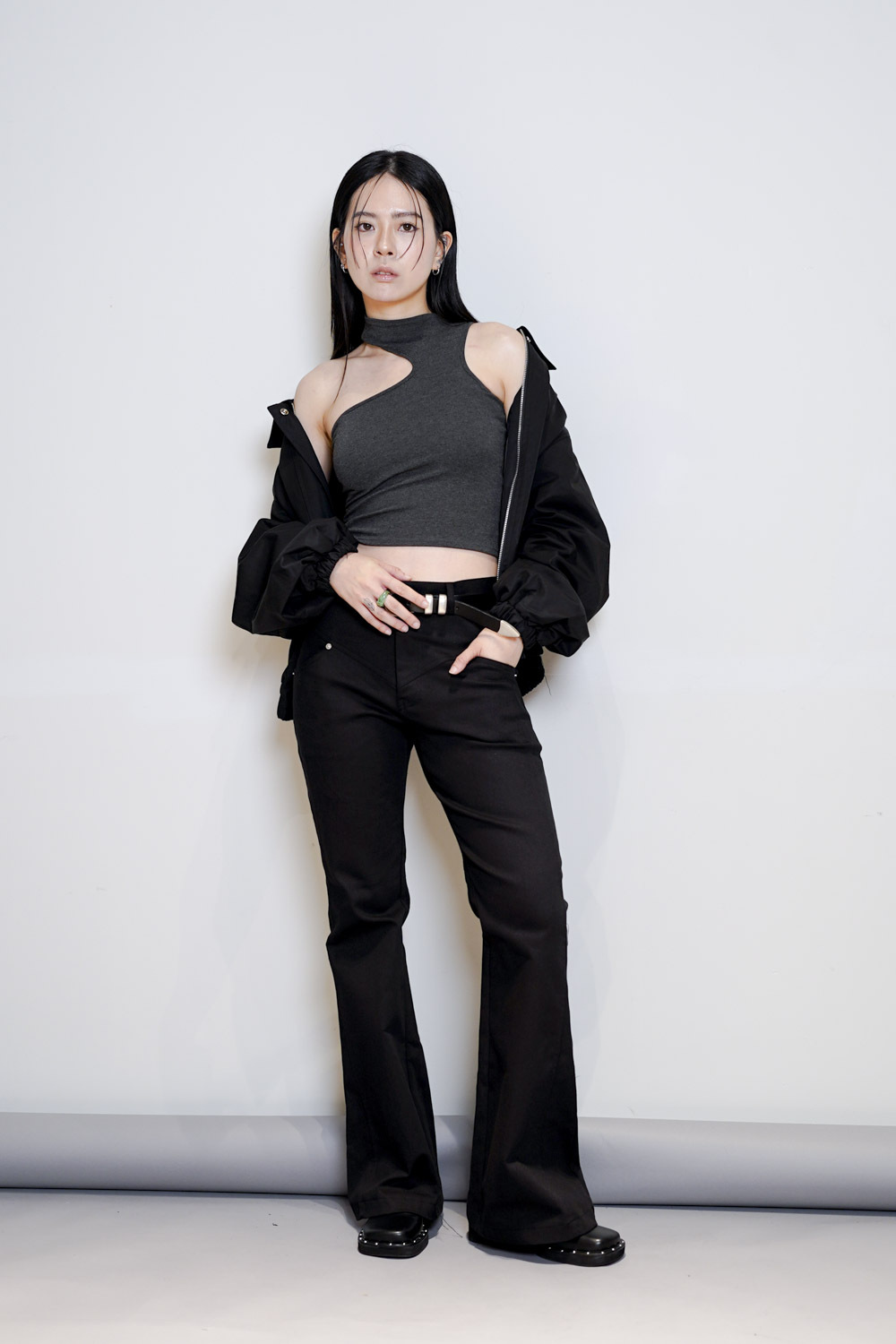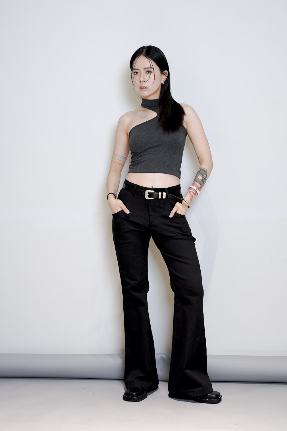 簡單襯一件crop tee + 質感皮帶已可出門/