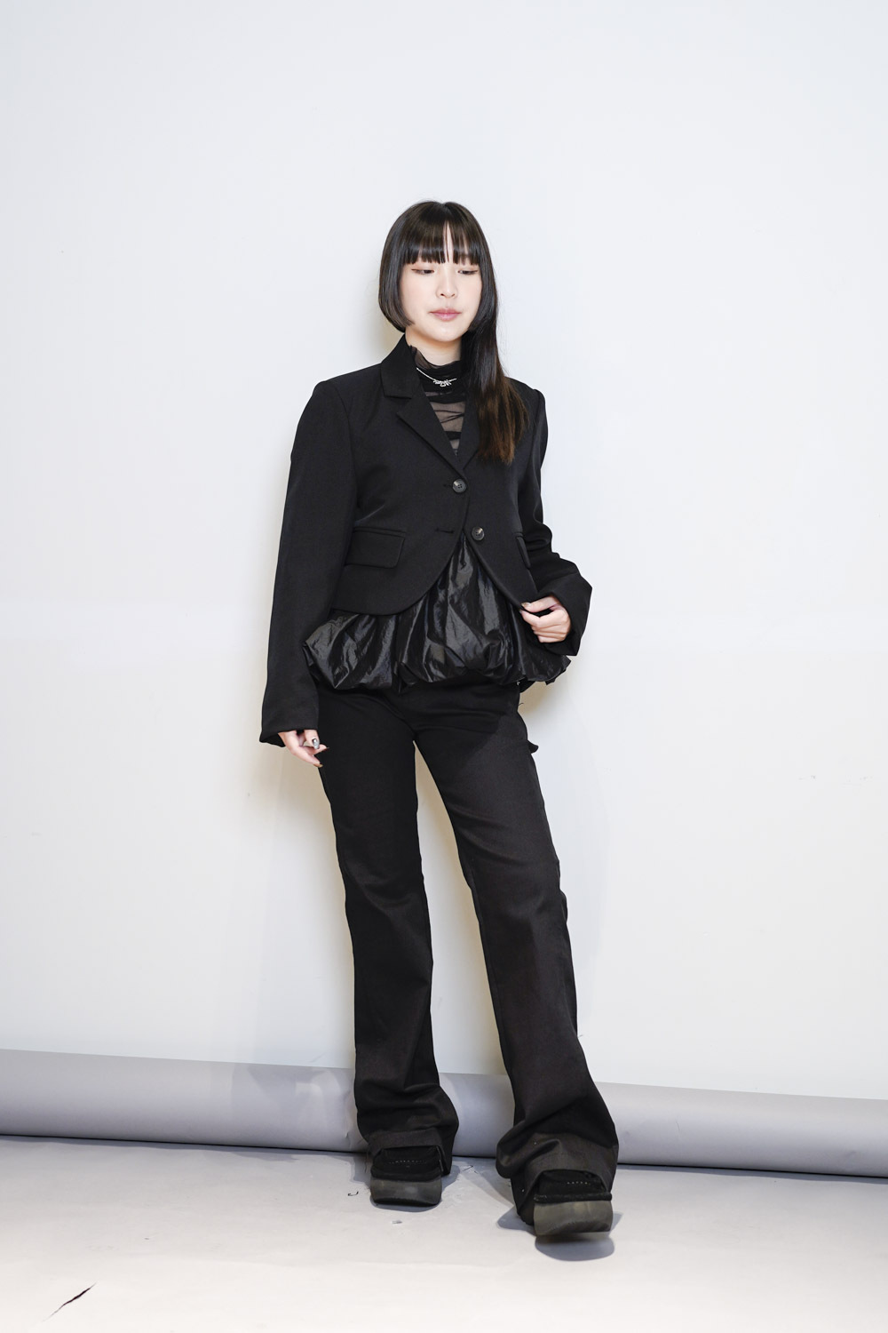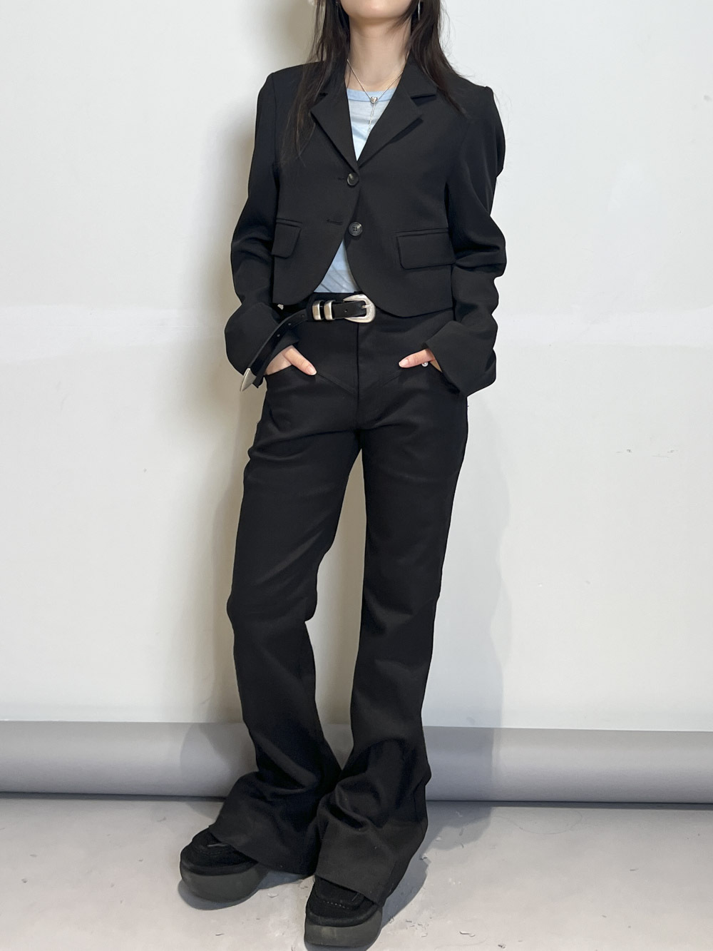 褲腳長度剛好收窄蓋到鞋面