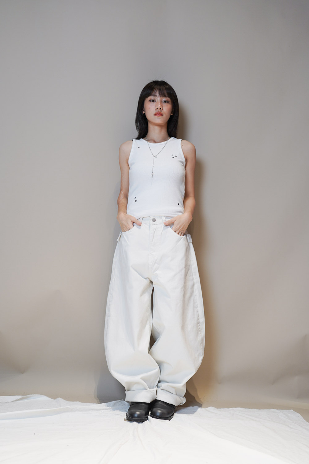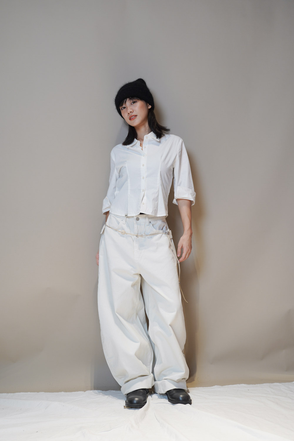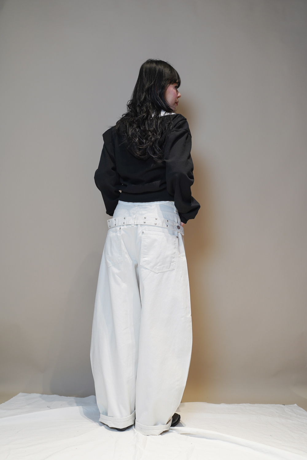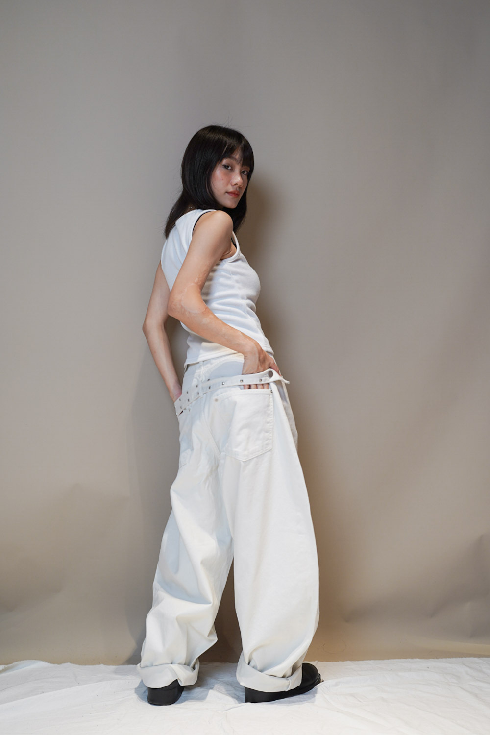 Happy price~ belt attached baggy jeans (WHITE/BLACK) - S/M/L