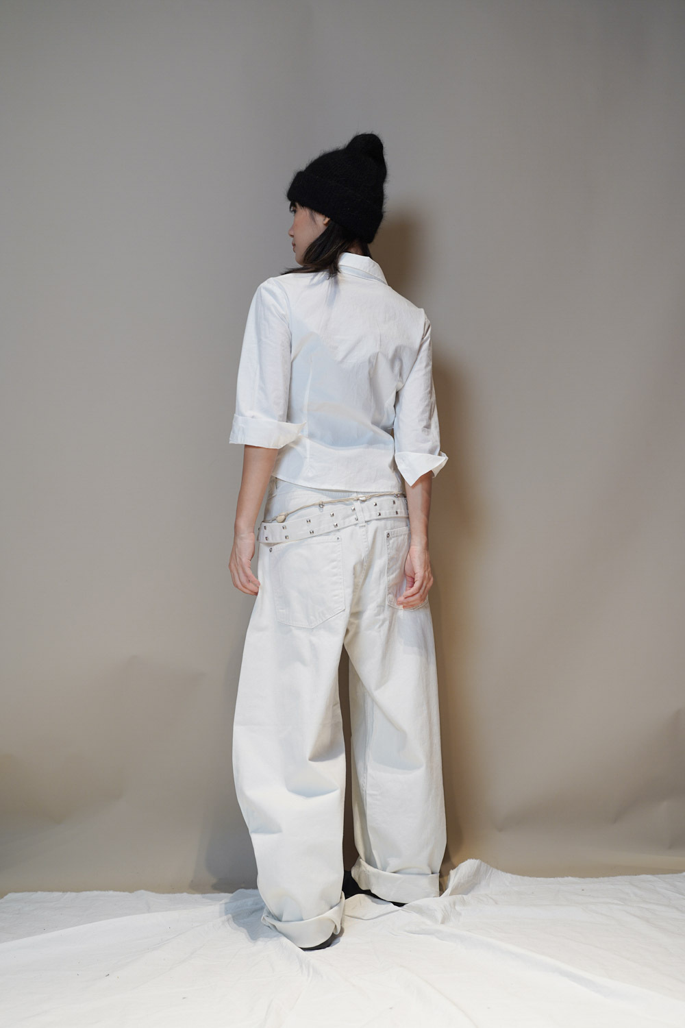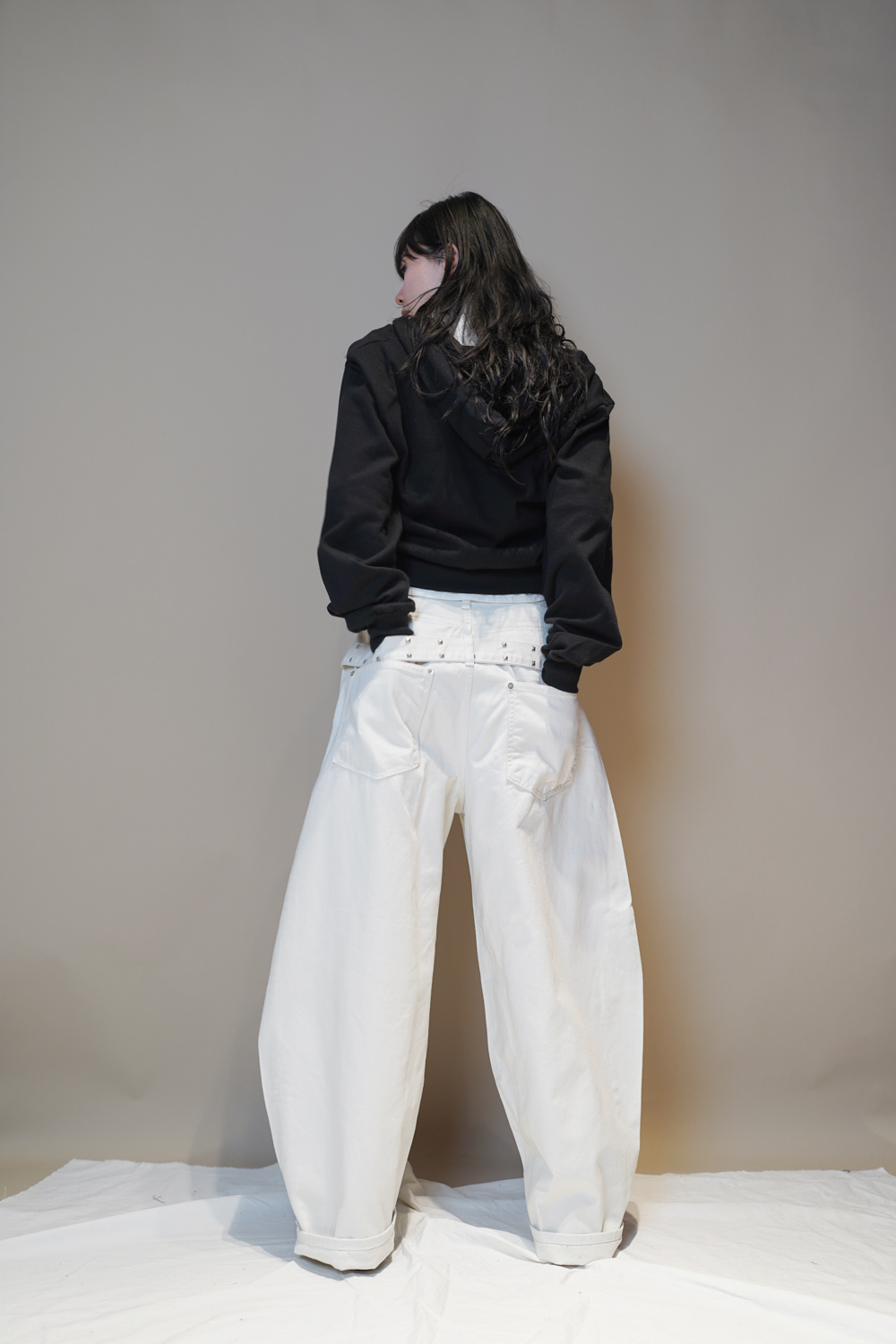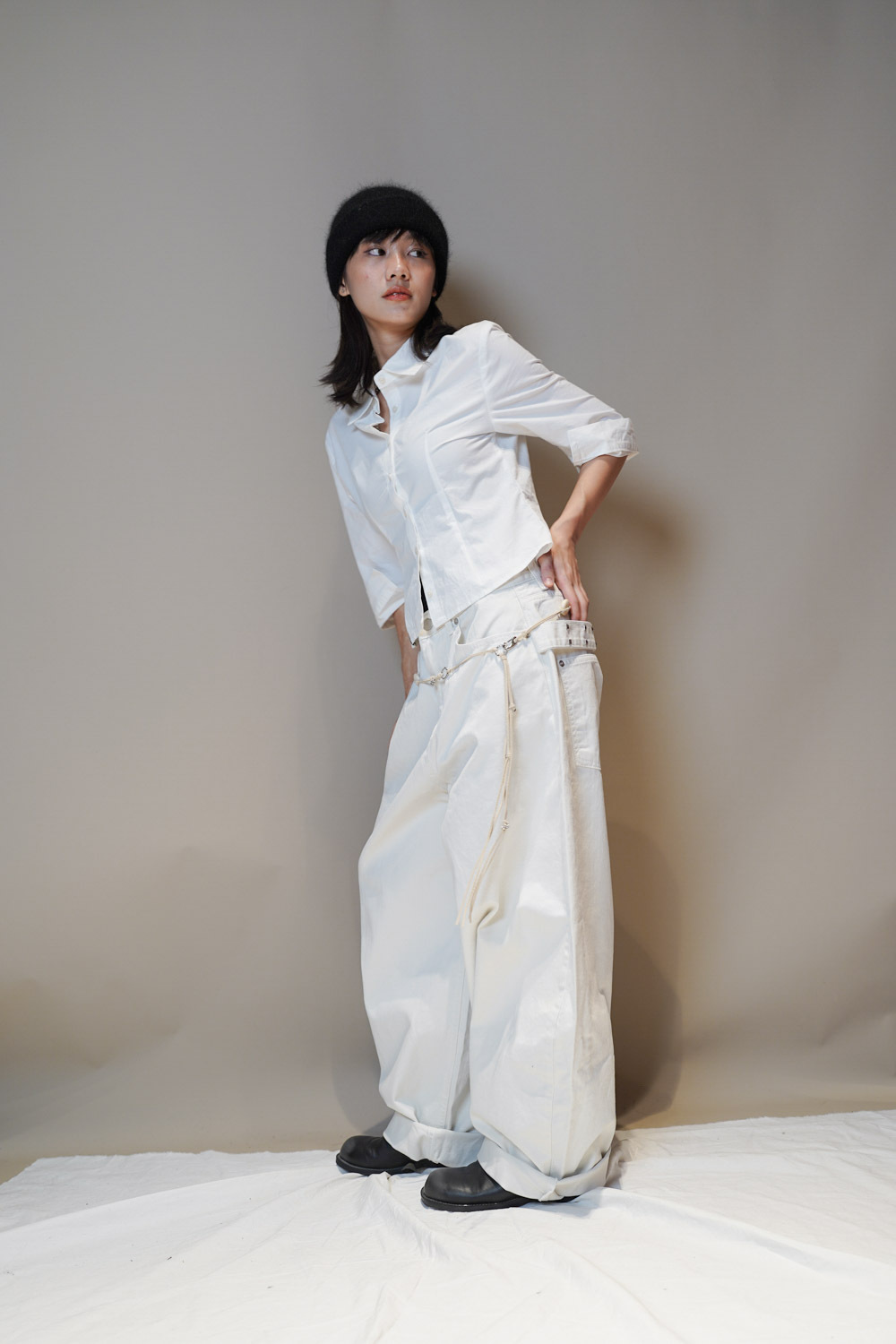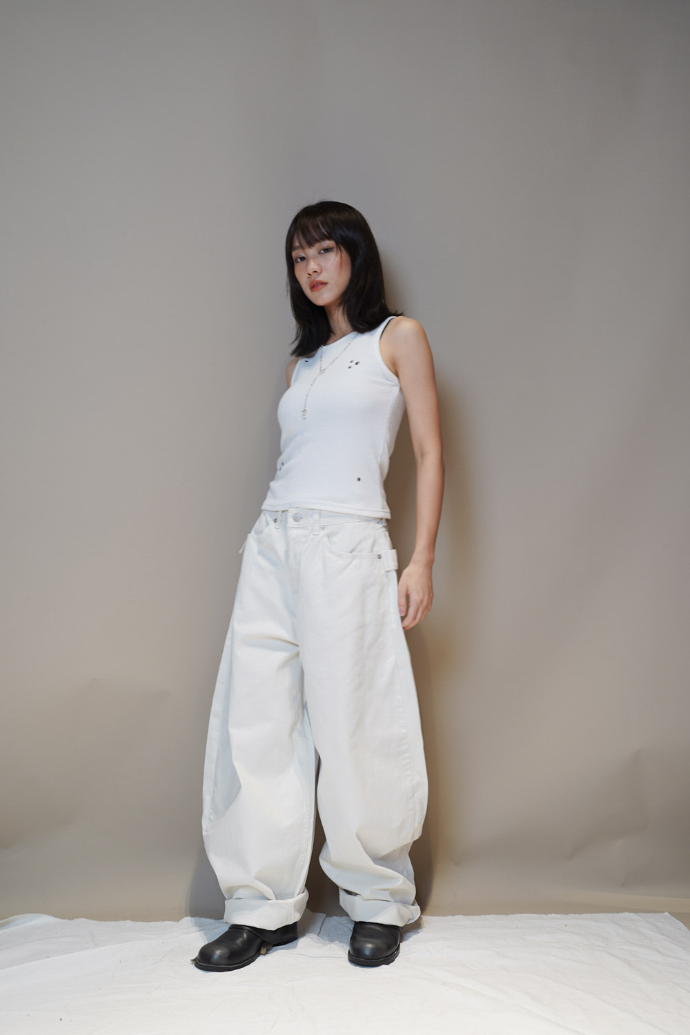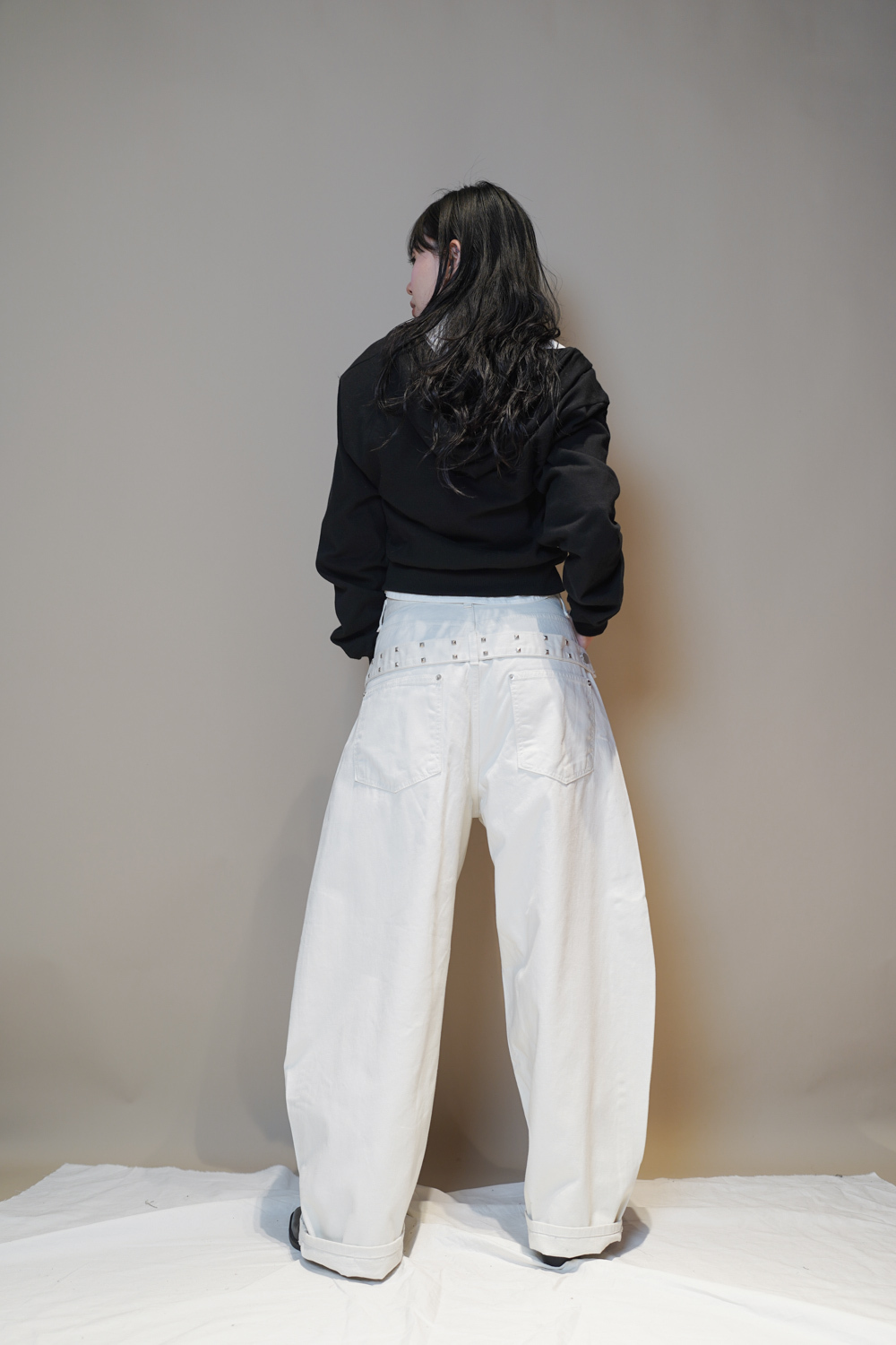 Happy price~ belt attached baggy jeans (WHITE/BLACK) - S/M/L