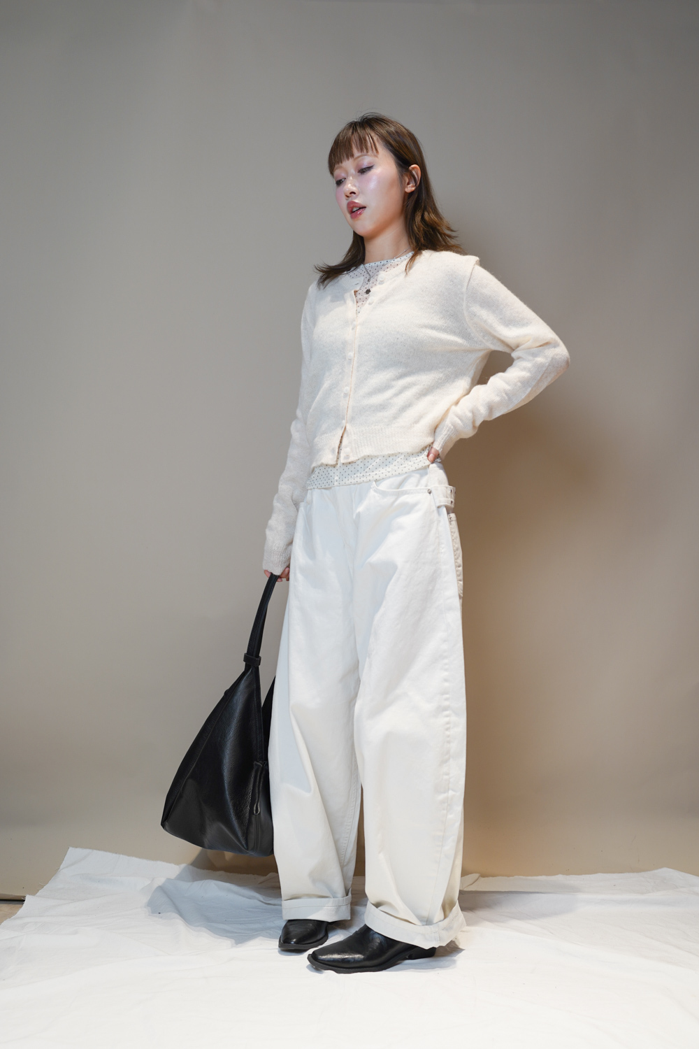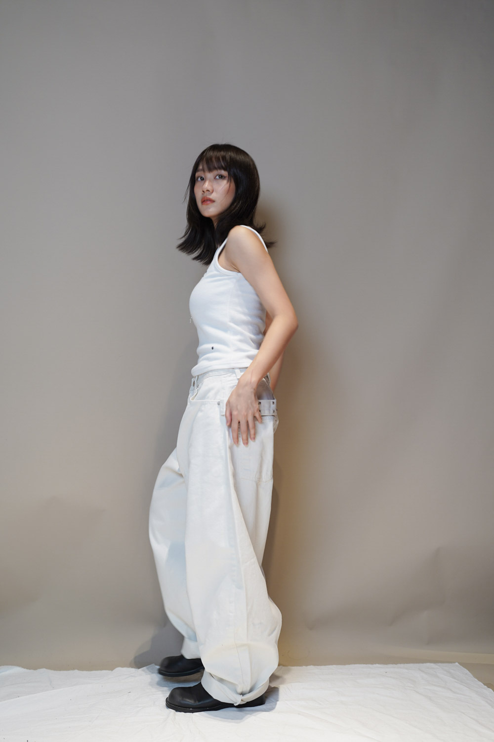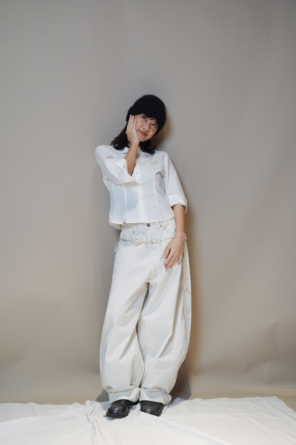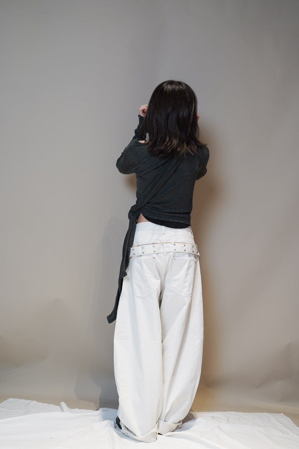 Happy price~ belt attached baggy jeans (WHITE/BLACK) - S/M/L