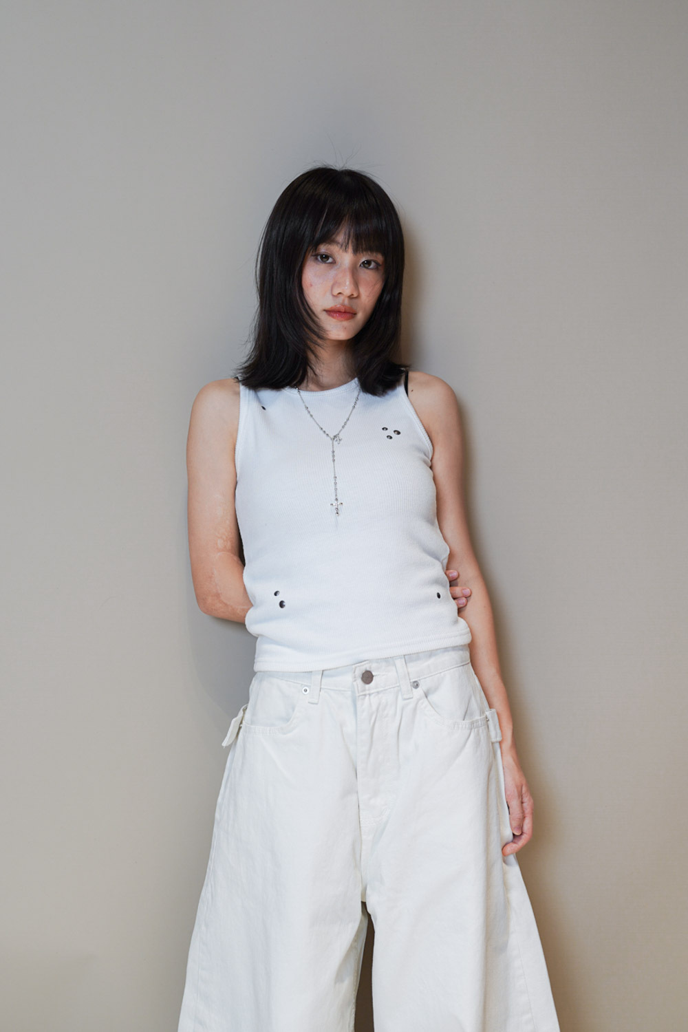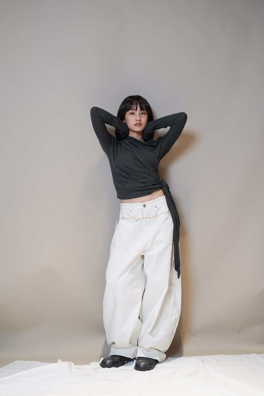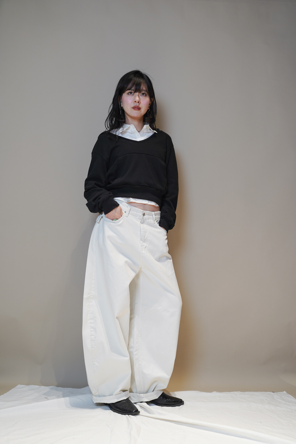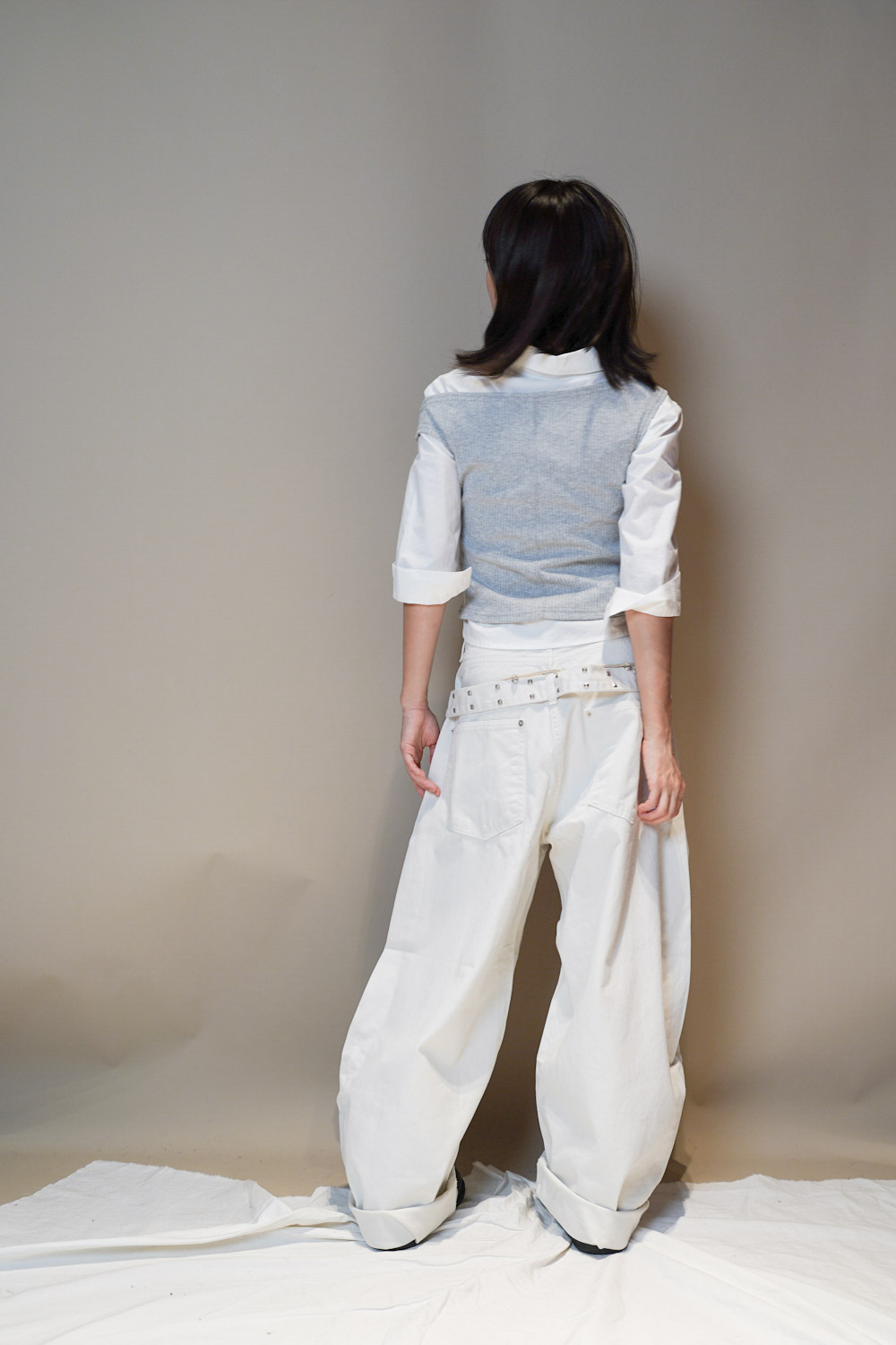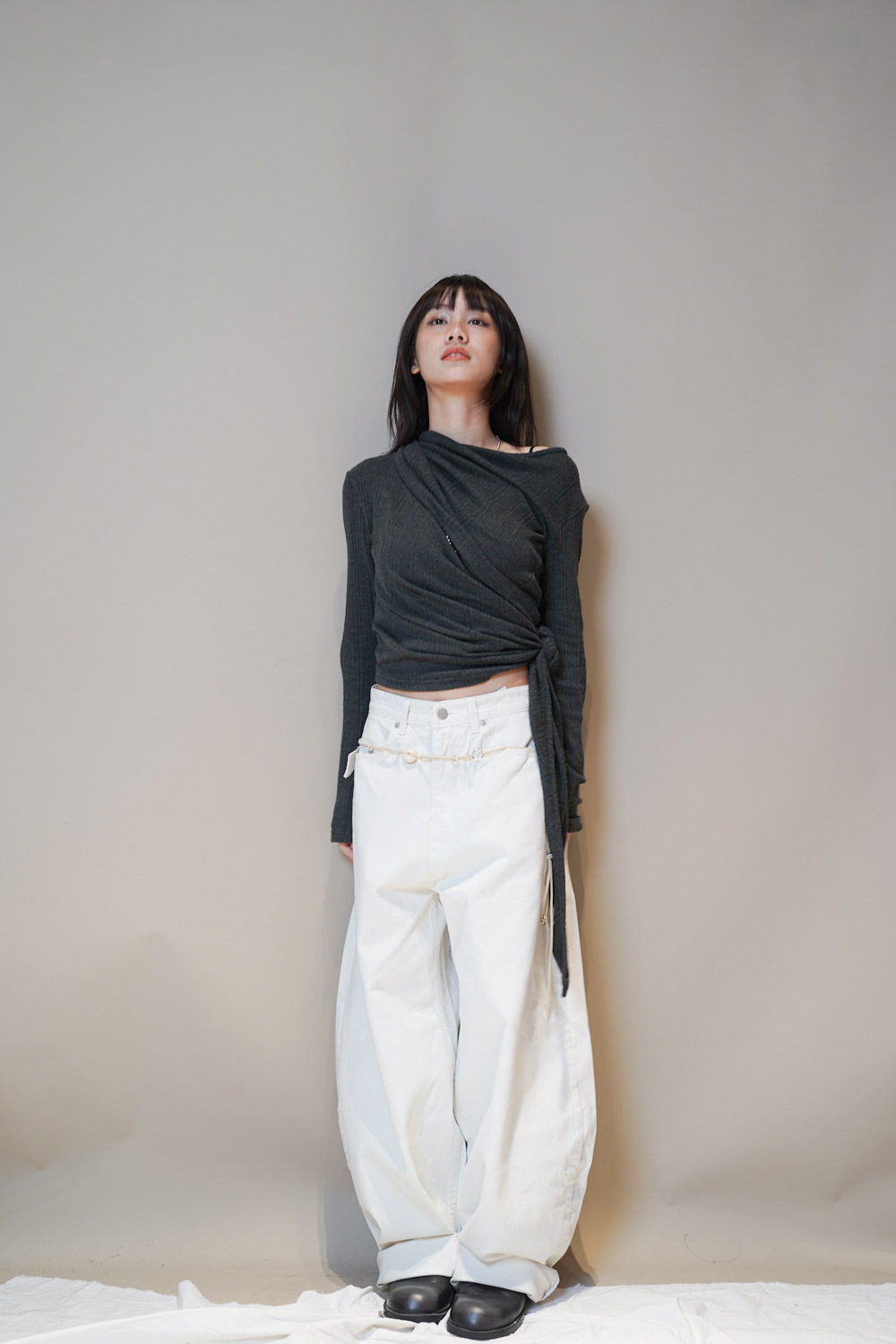 Happy price~ belt attached baggy jeans (WHITE/BLACK) - S/M/L