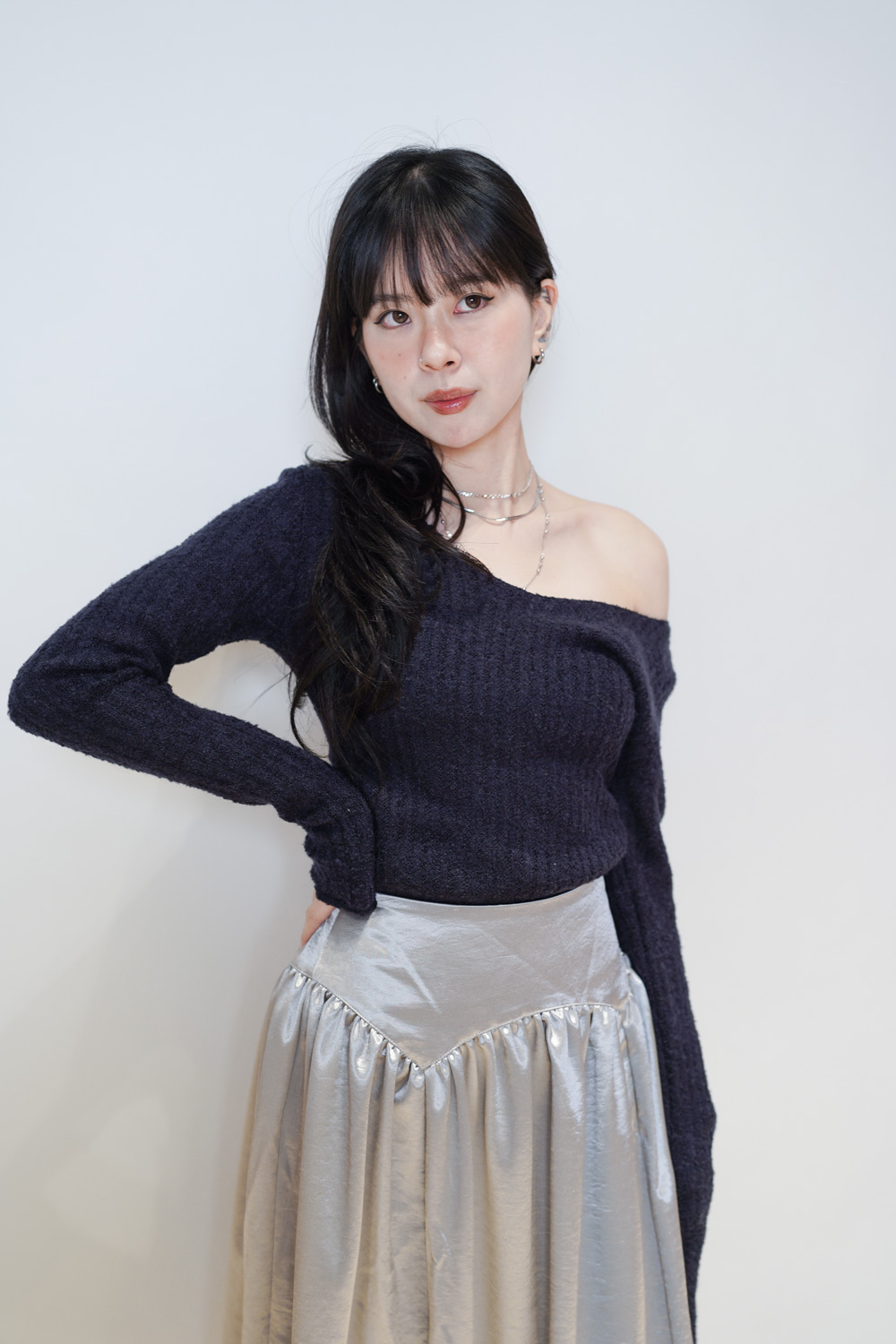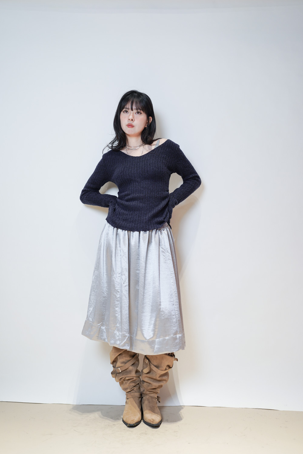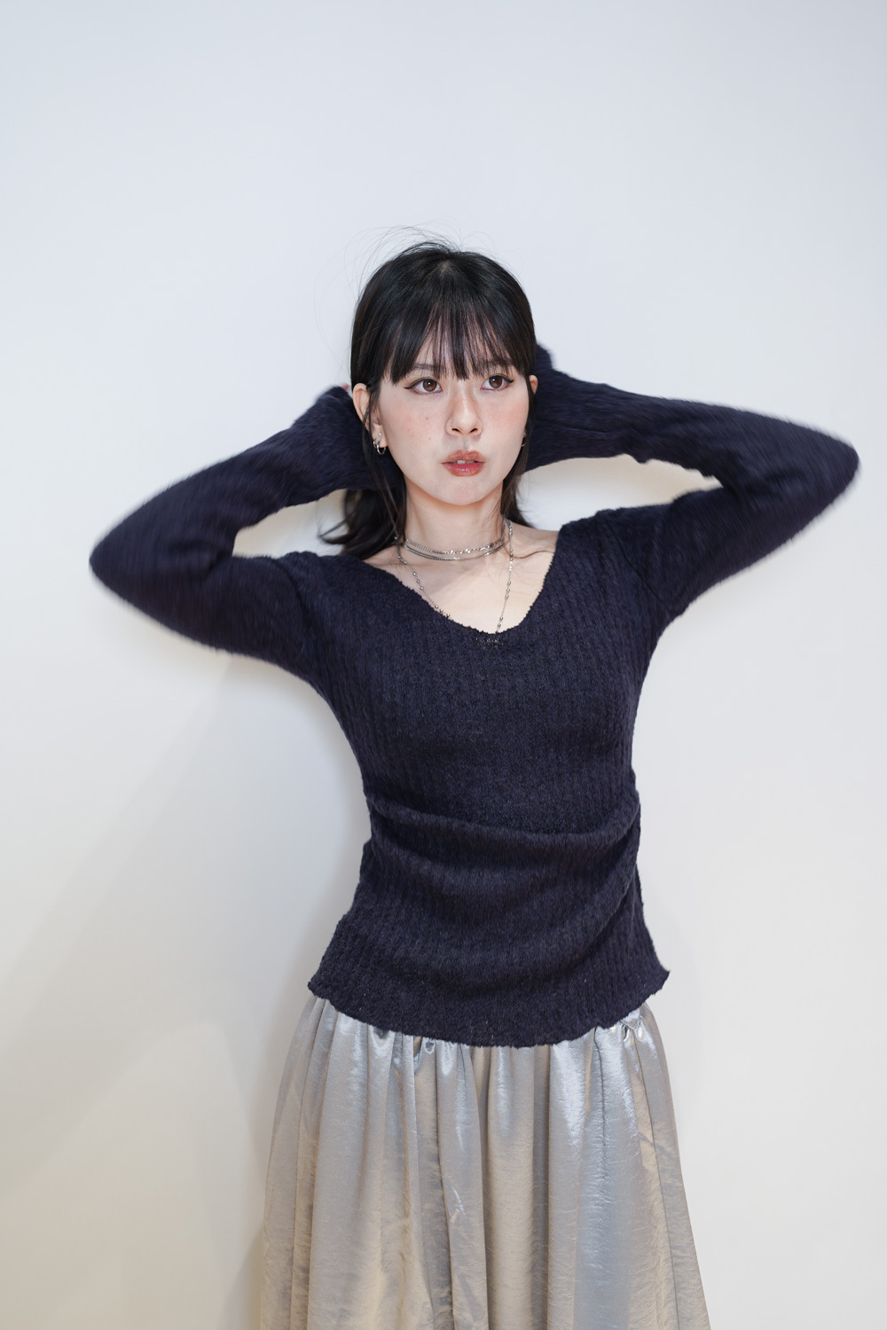 Happy price~ Big V slim long knit (PINK/ NAVY)
