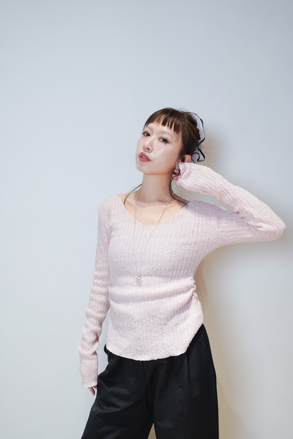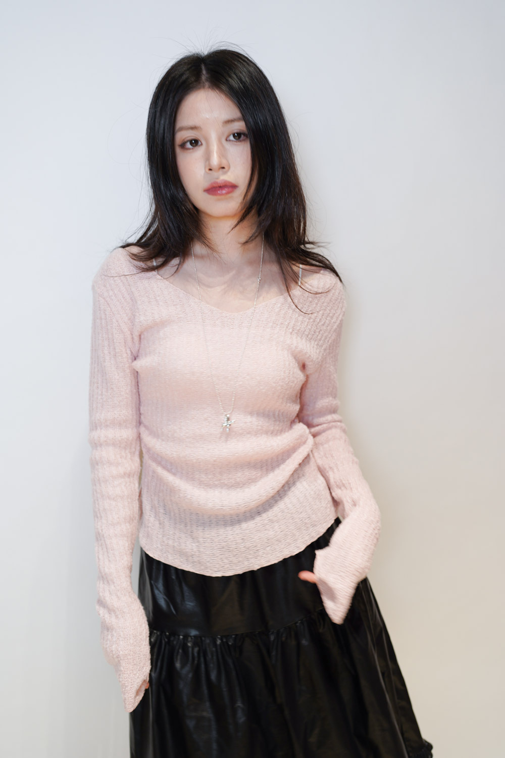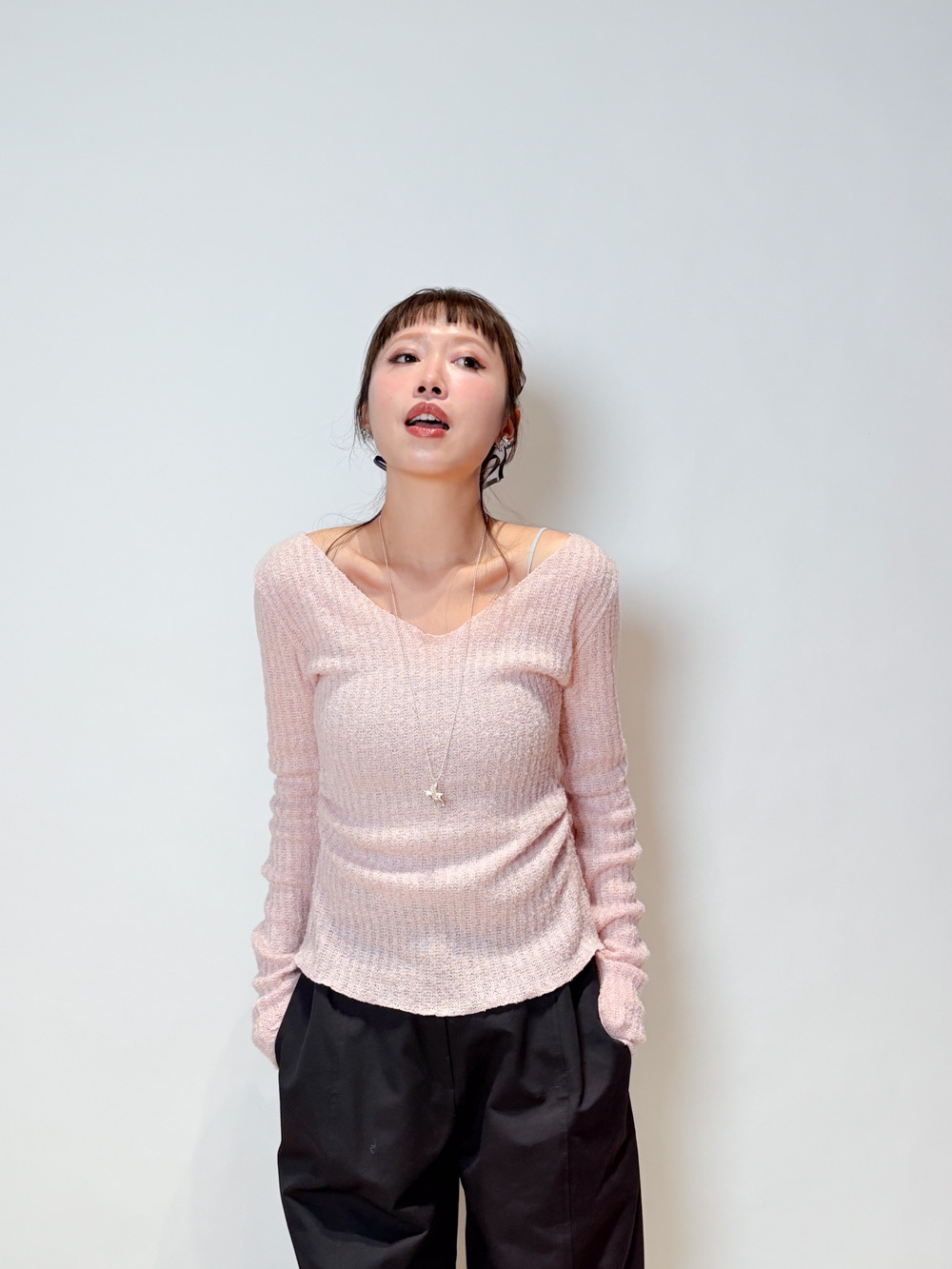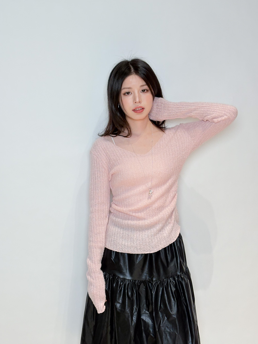 Happy price~ Big V slim long knit (PINK/ NAVY)
