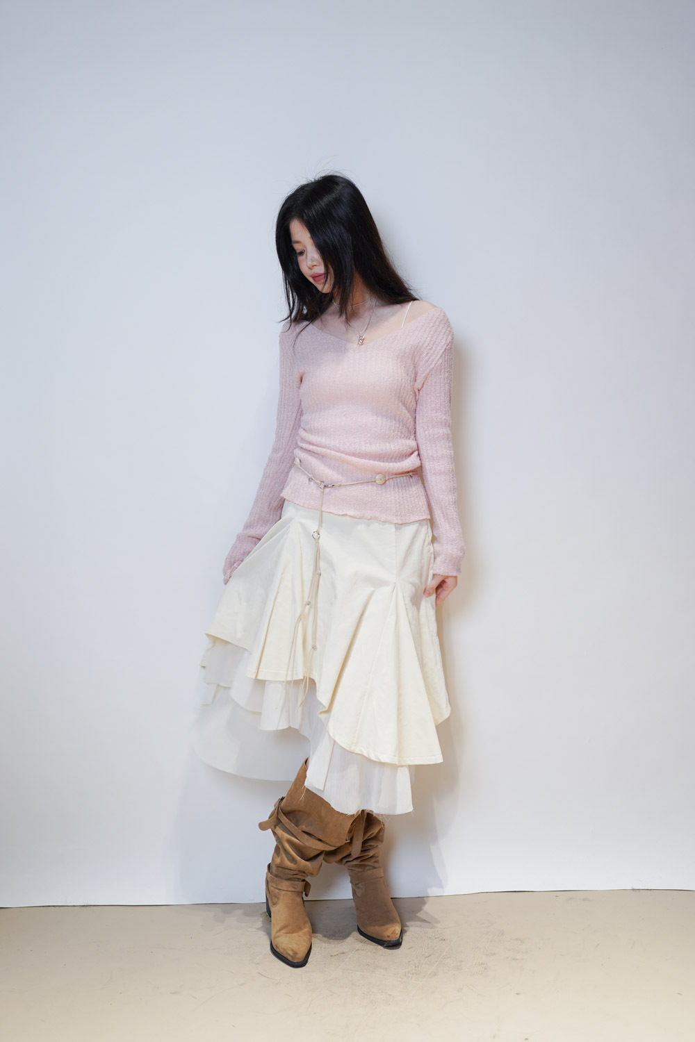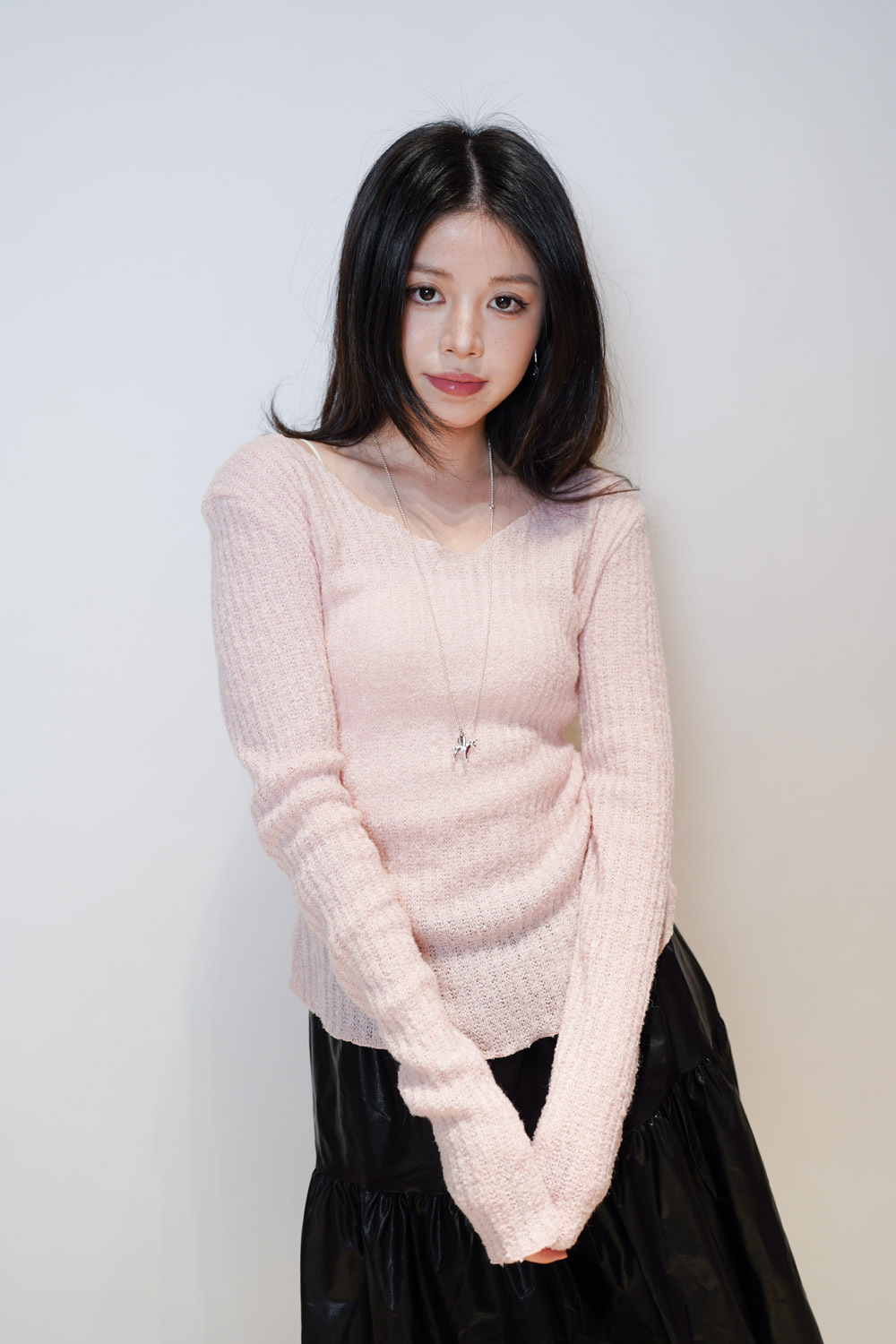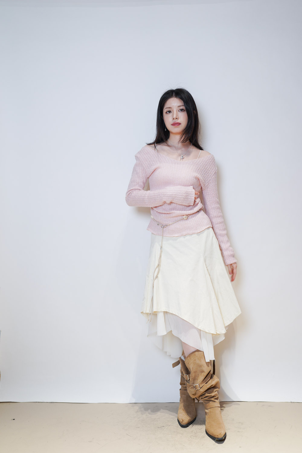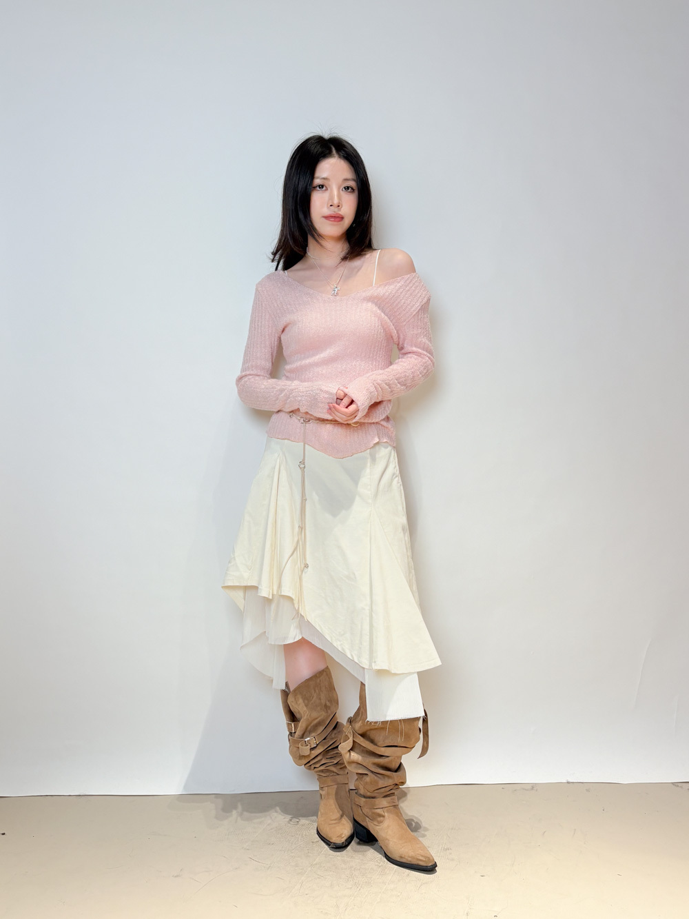 Happy price~ Big V slim long knit (PINK/ NAVY)