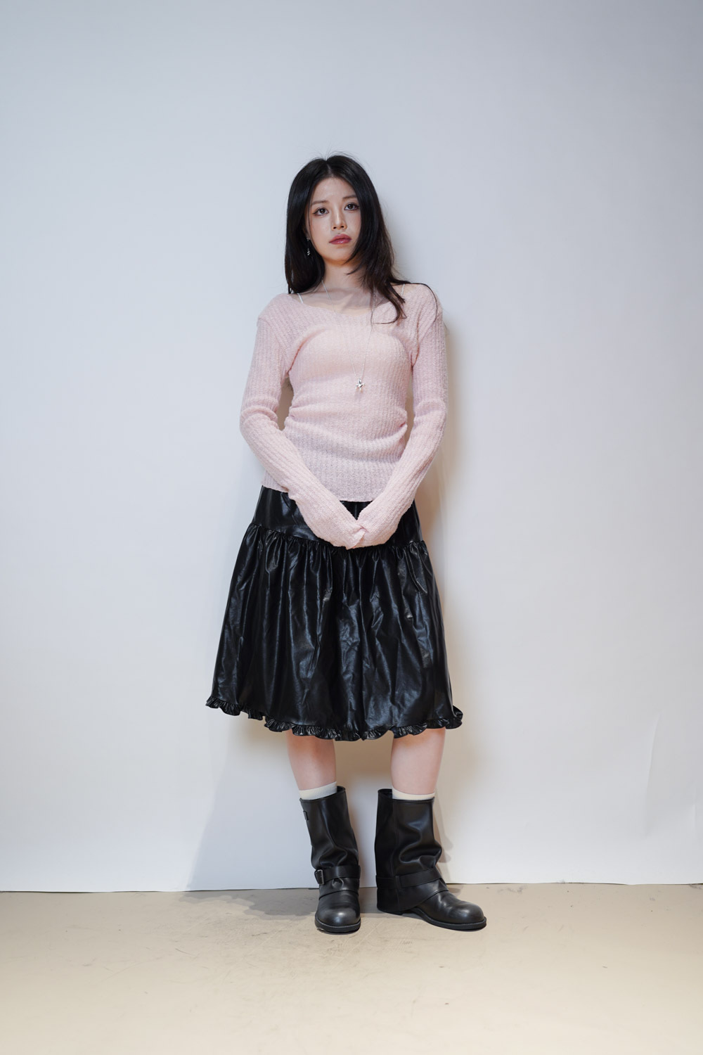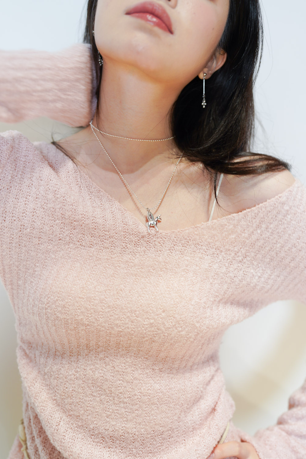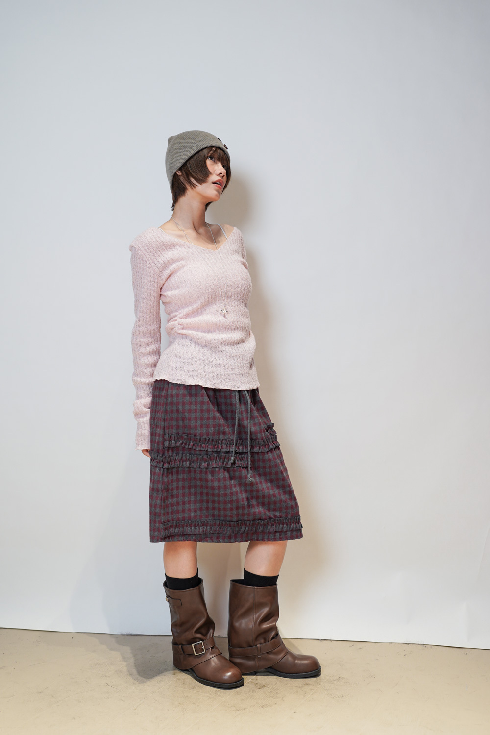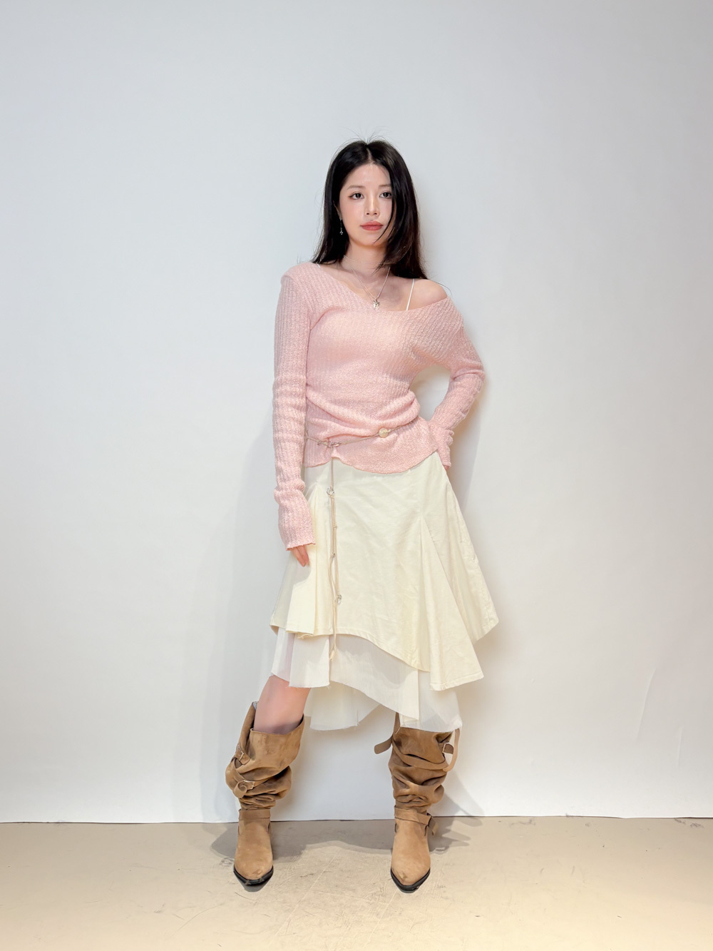 Happy price~ Big V slim long knit (PINK/ NAVY)