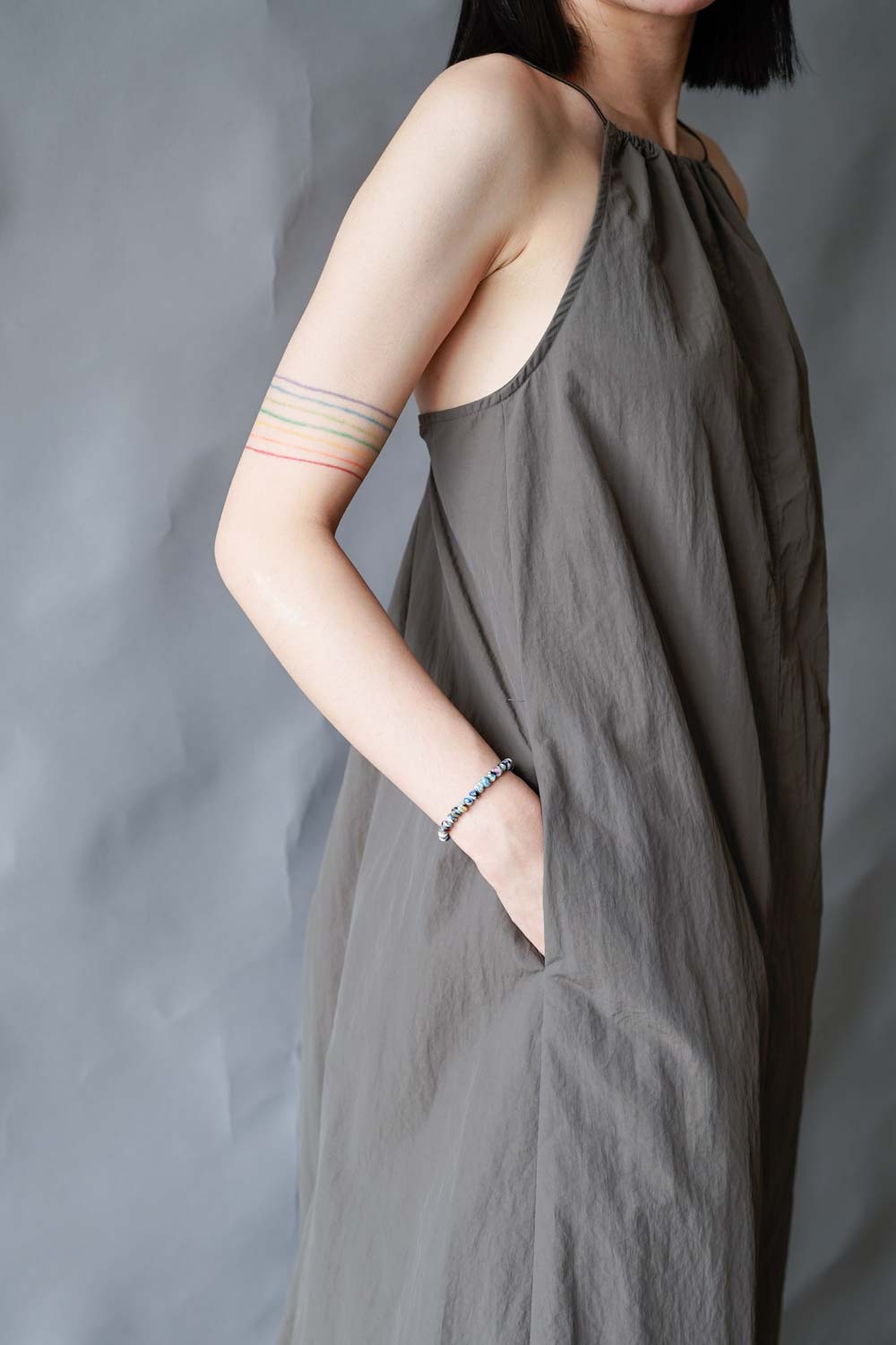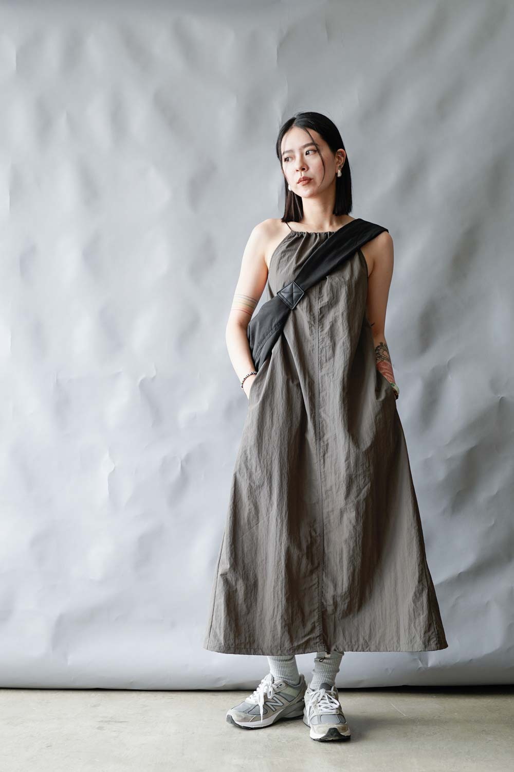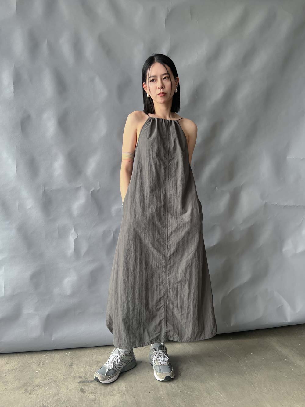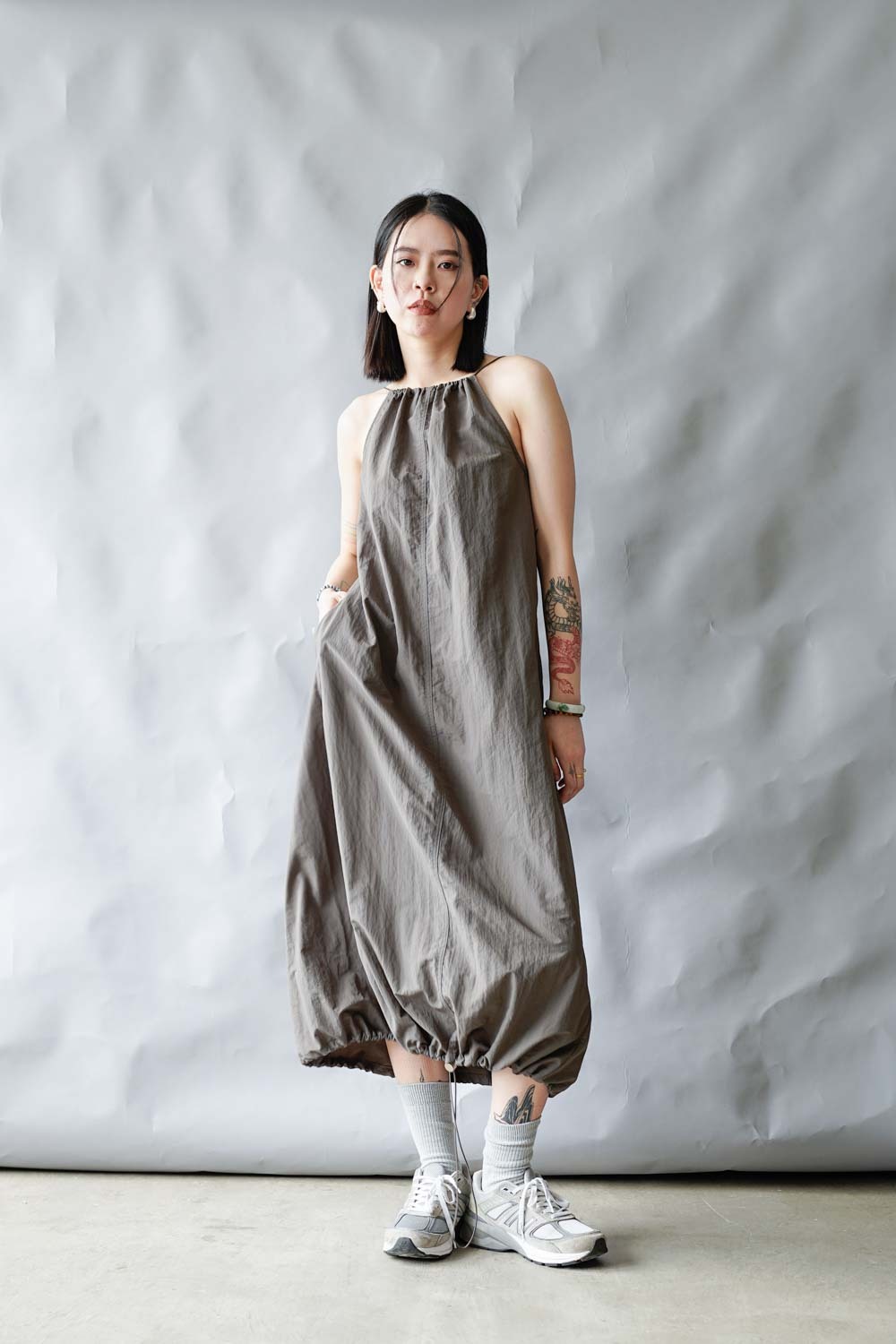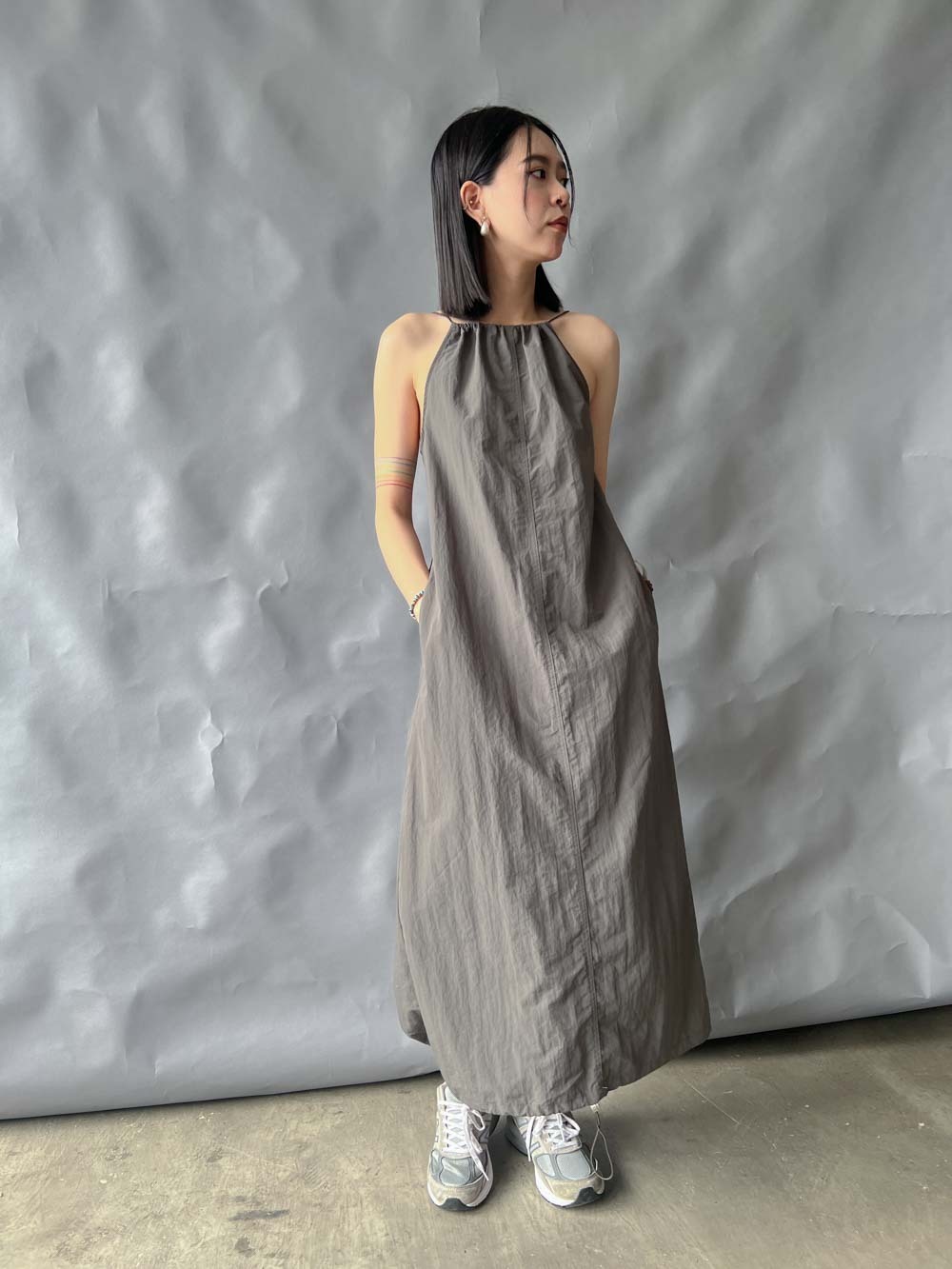 彈性:低 / 透膚程度:white: 微透(建議穿著淺色內衣);grey: 不透 / 內里:無 / 口袋:有