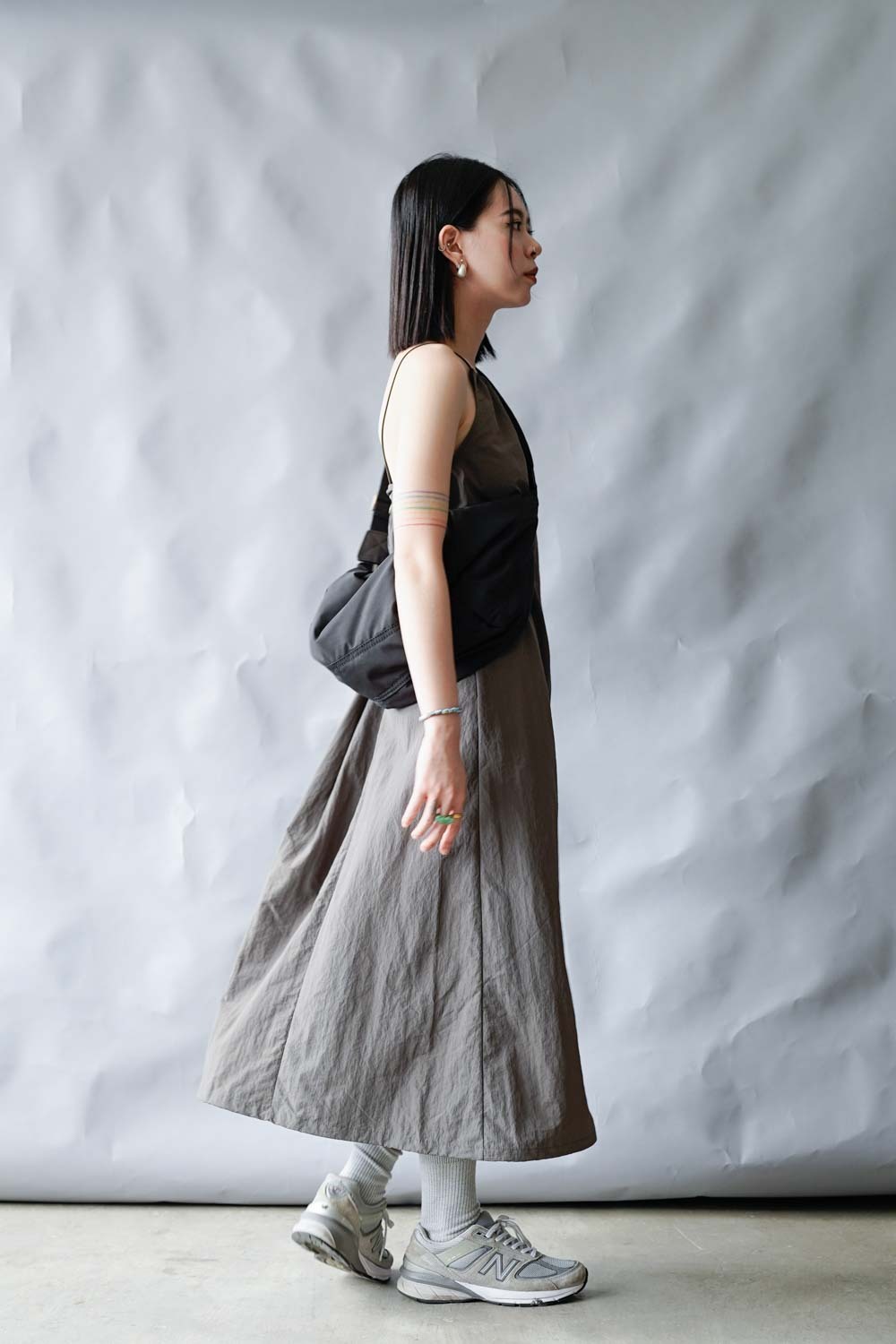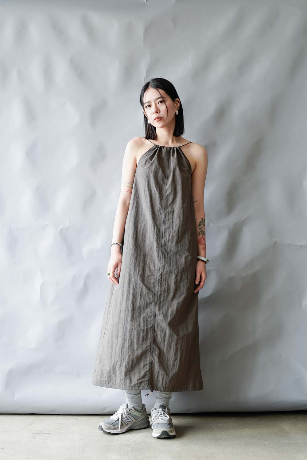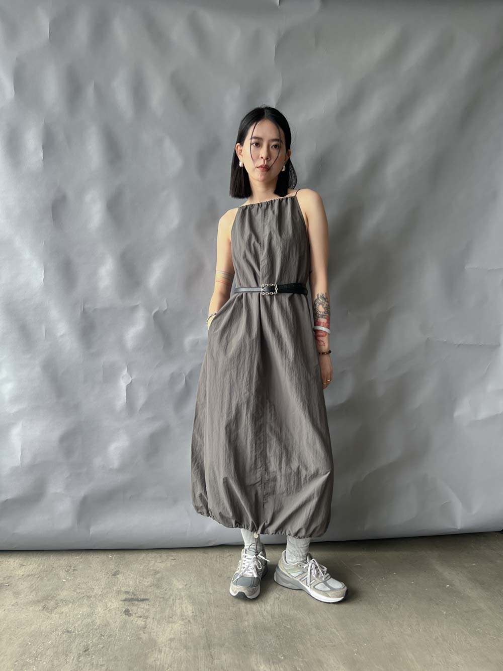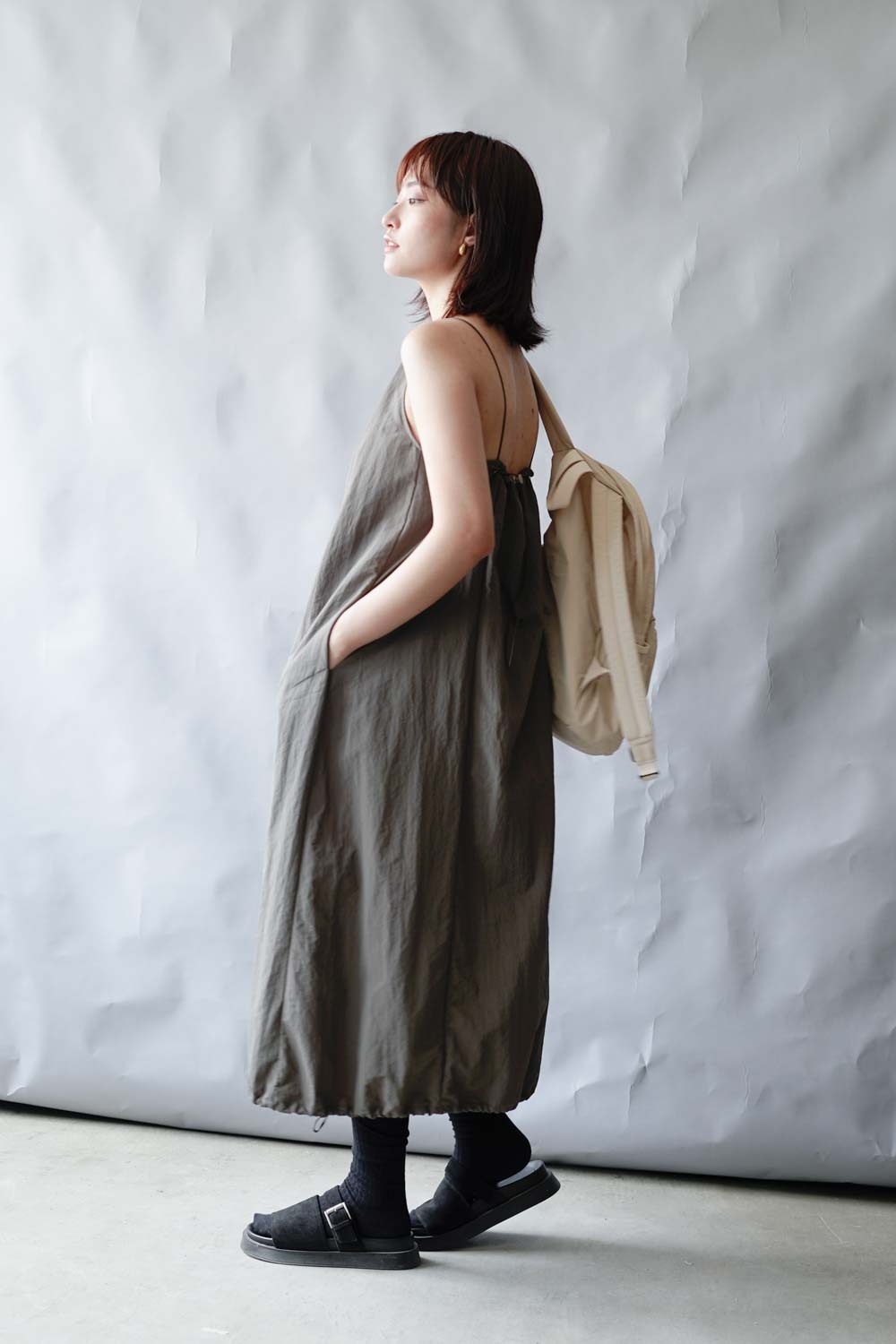 彈性:低 / 透膚程度:white: 微透(建議穿著淺色內衣);grey: 不透 / 內里:無 / 口袋:有