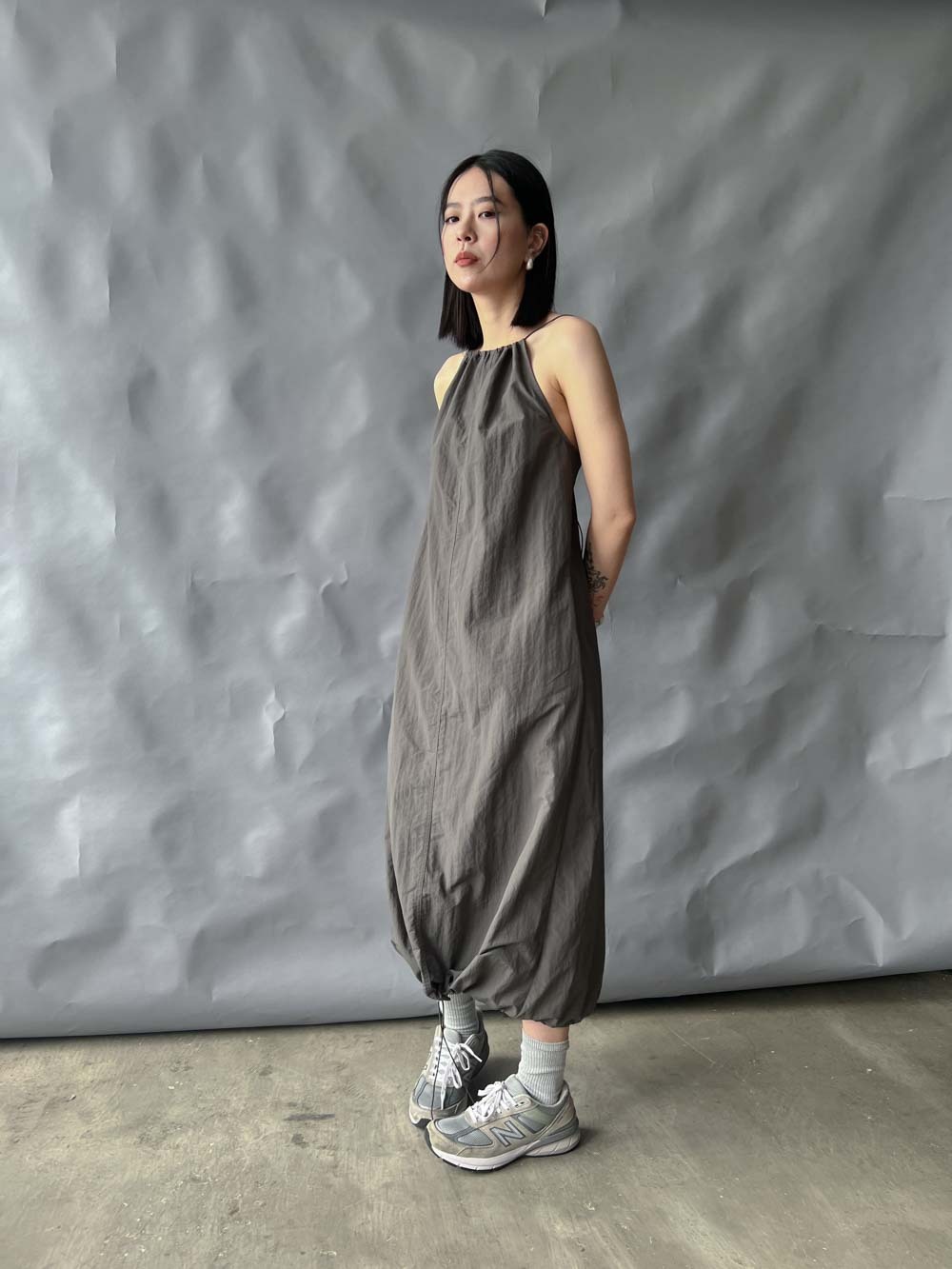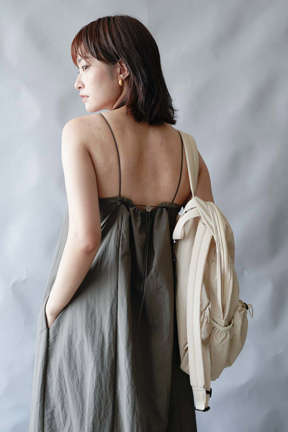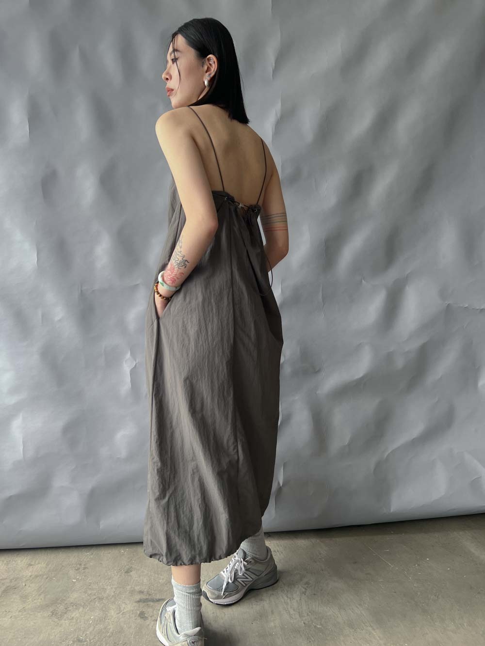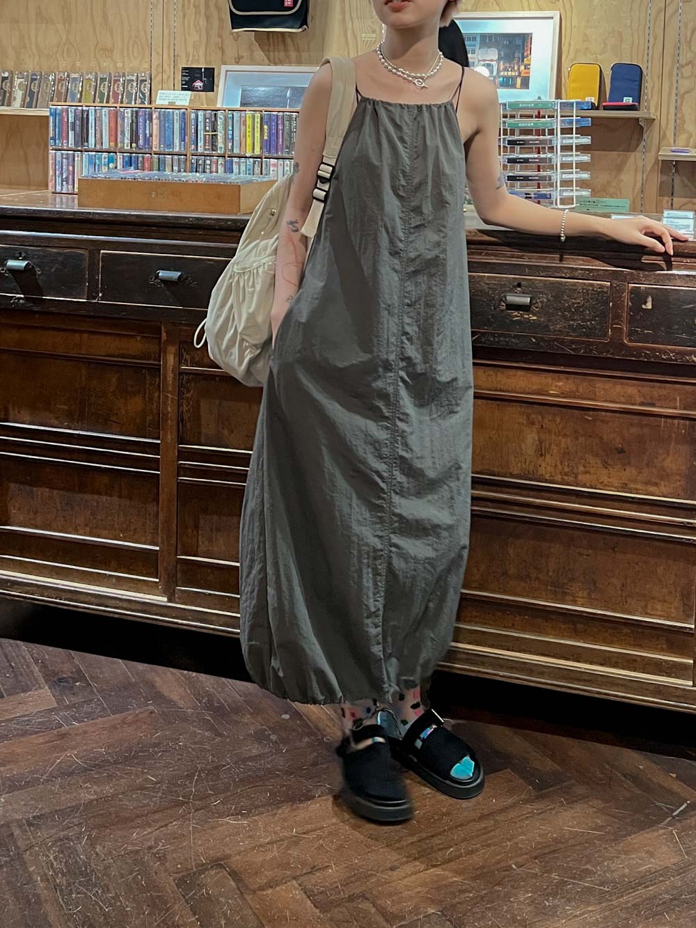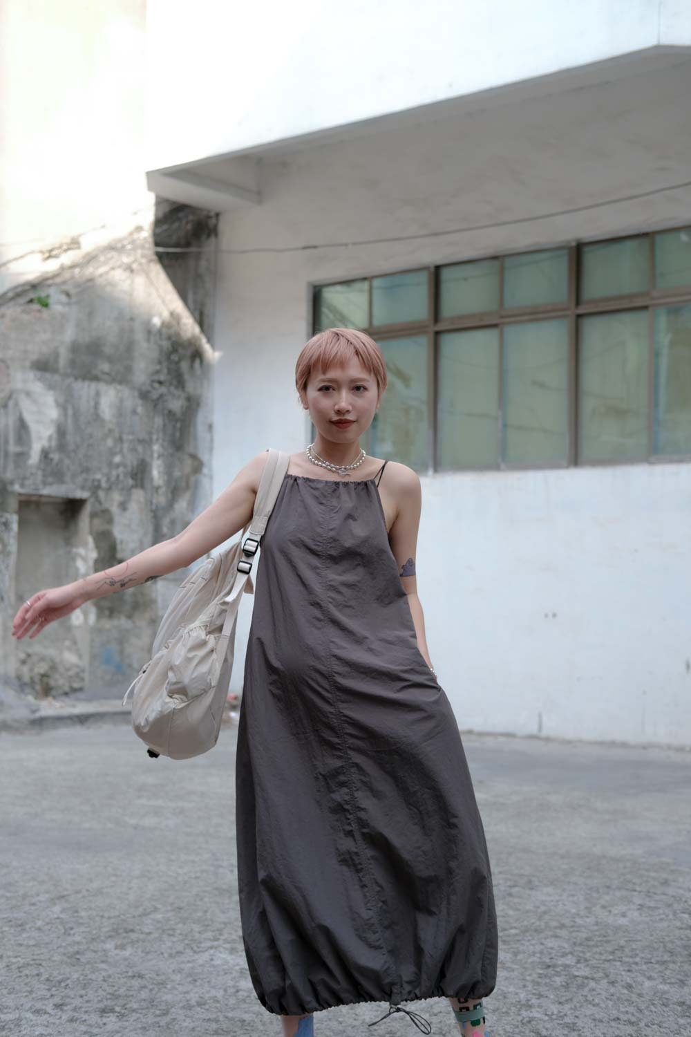 彈性:低 / 透膚程度:white: 微透(建議穿著淺色內衣);grey: 不透 / 內里:無 / 口袋:有