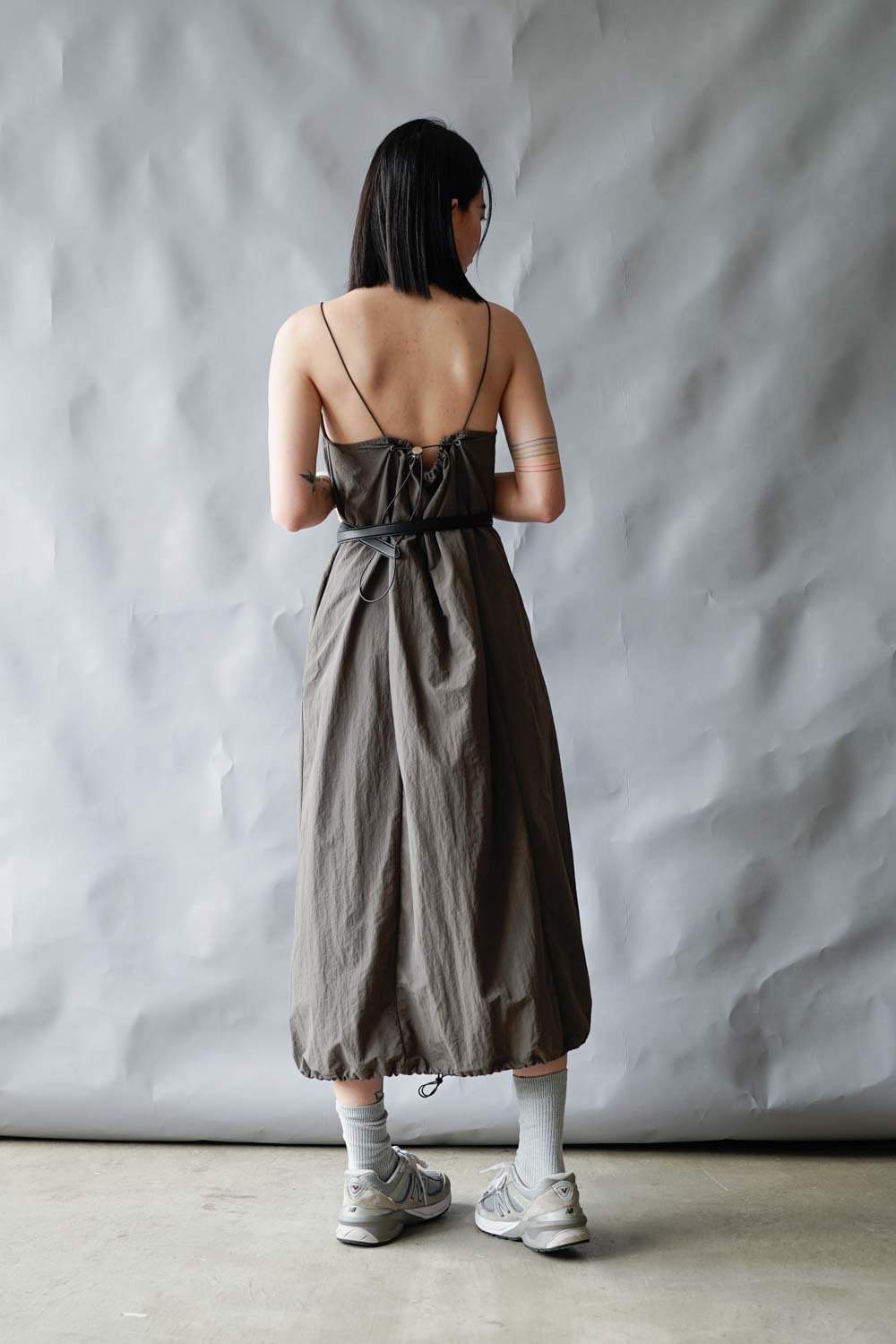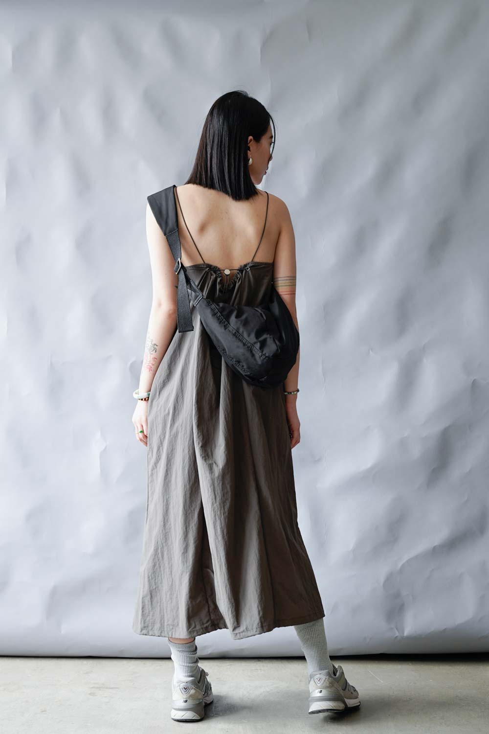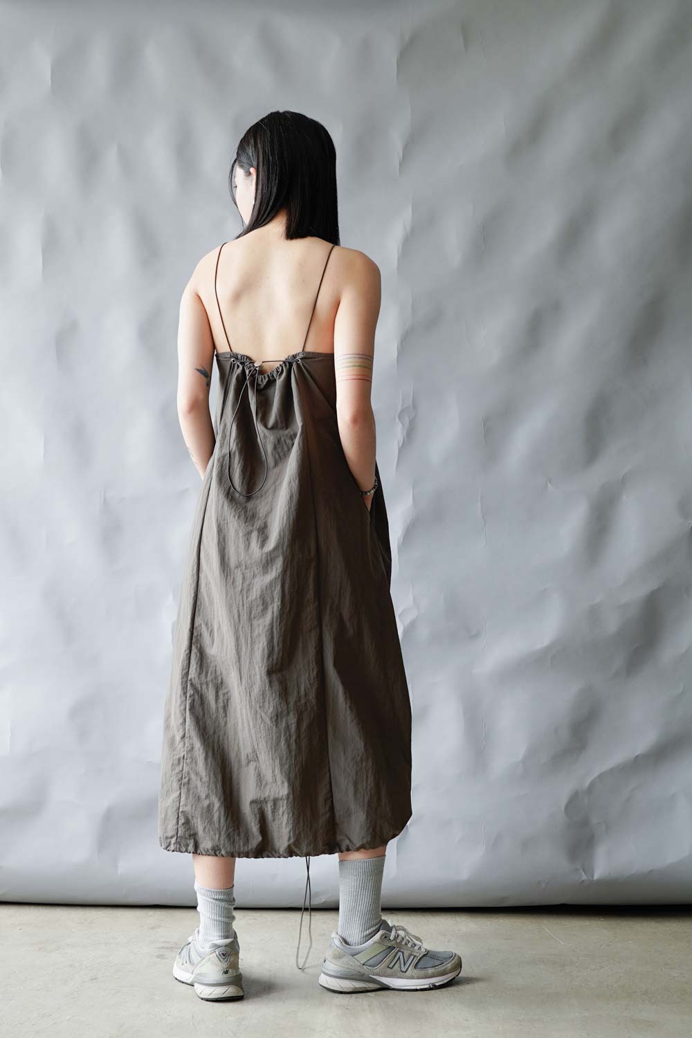 Chest: free (後有拉繩) / Waist (from shoulder 48cm) : 104cm (41”) / Hip(from waist 18cm) : 114cm (45") / Length: front: 118cm;back:100cm (not included strap)