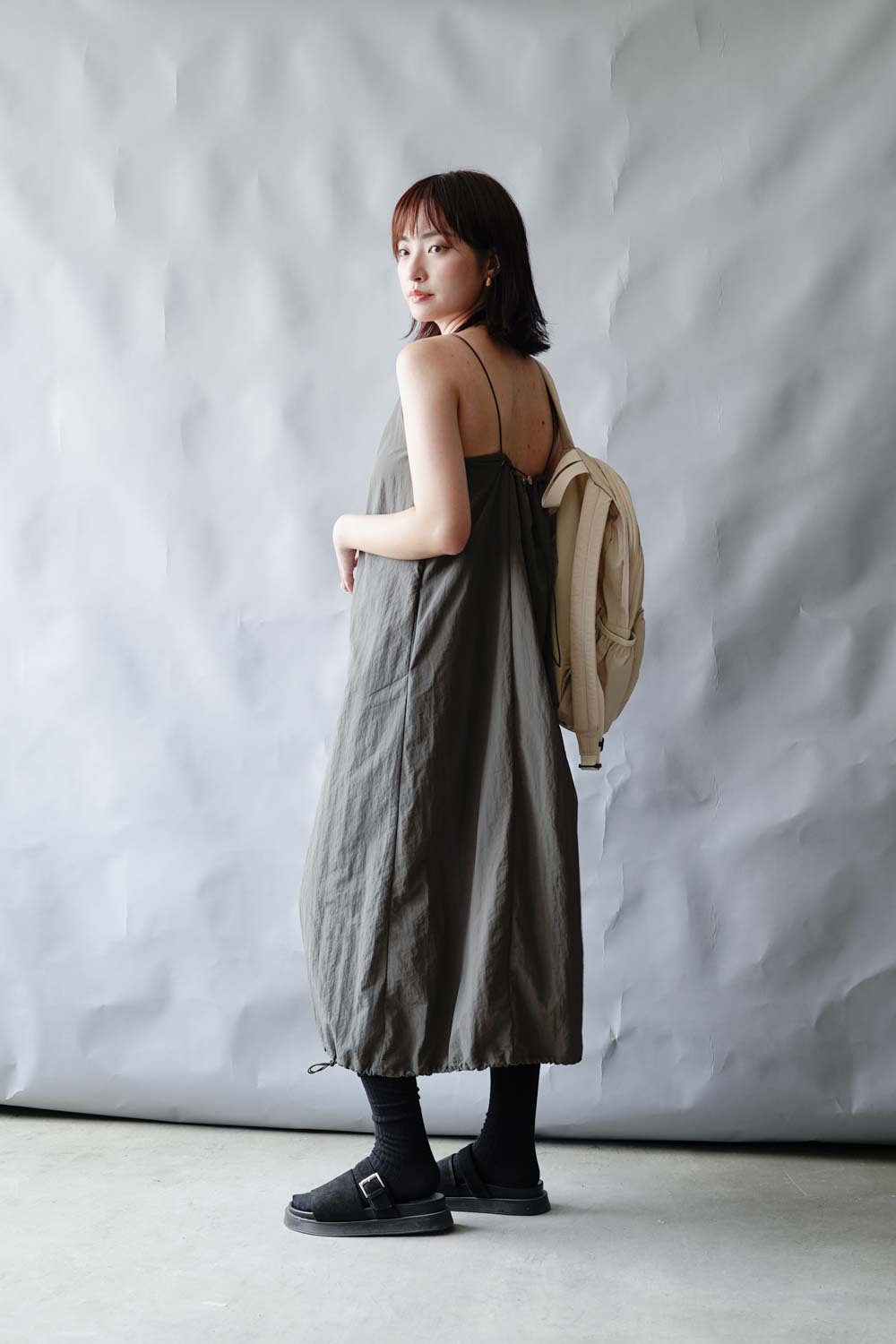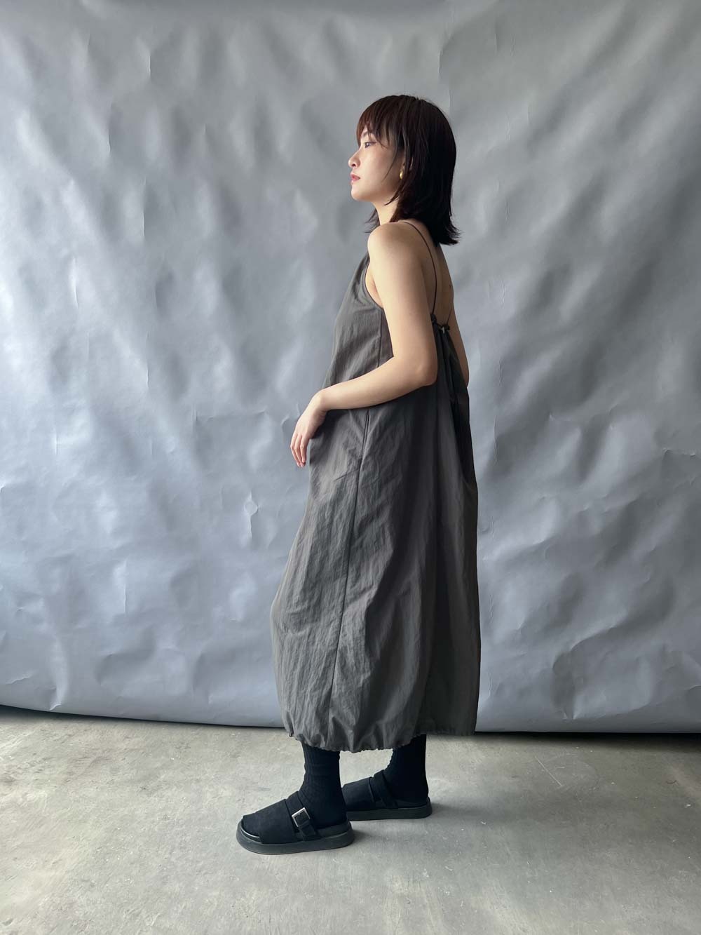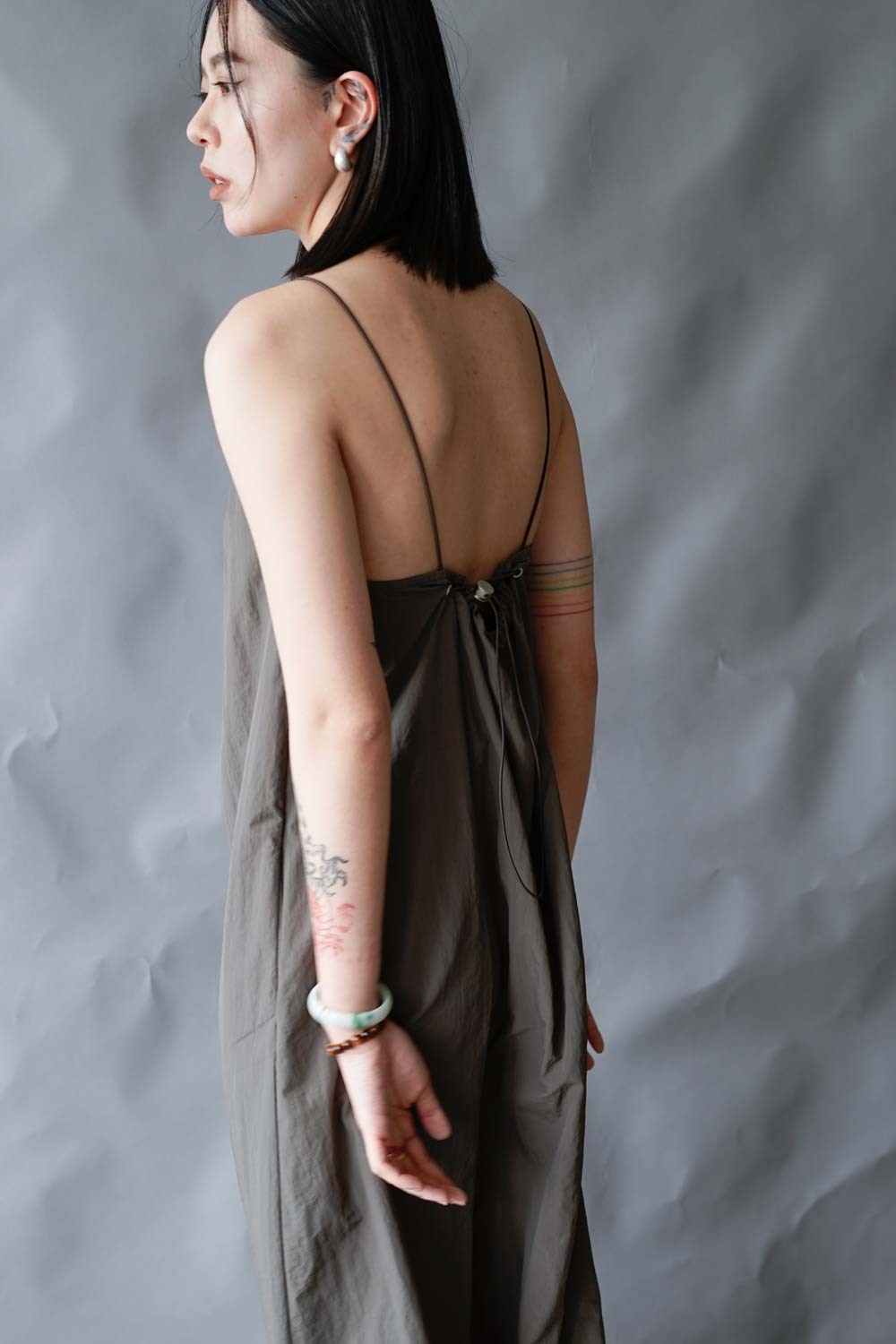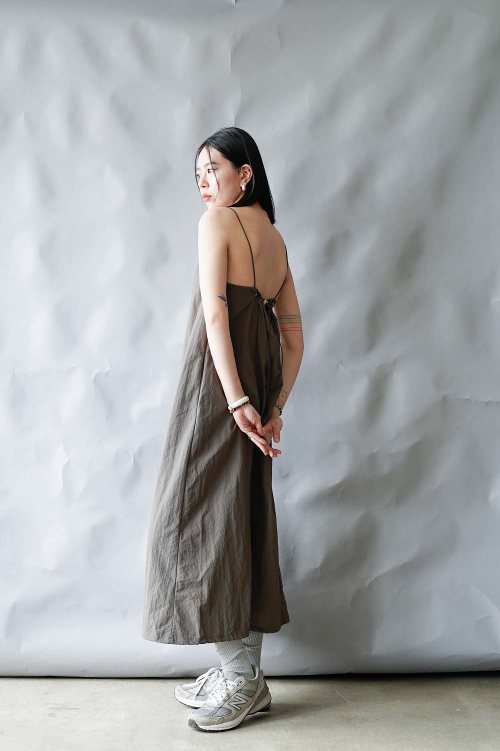 Chest: free (後有拉繩) / Waist (from shoulder 48cm) : 104cm (41”) / Hip(from waist 18cm) : 114cm (45") / Length: front: 118cm;back:100cm (not included strap)