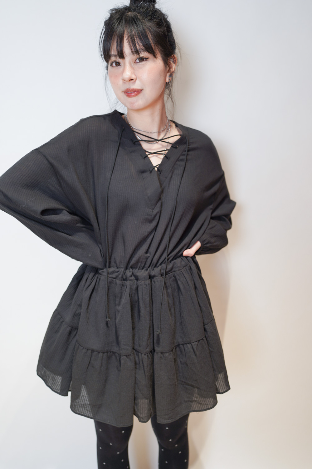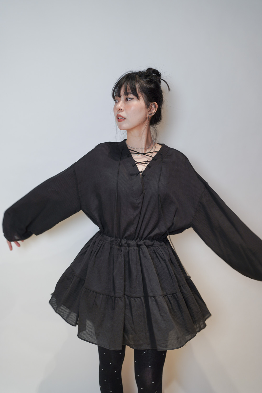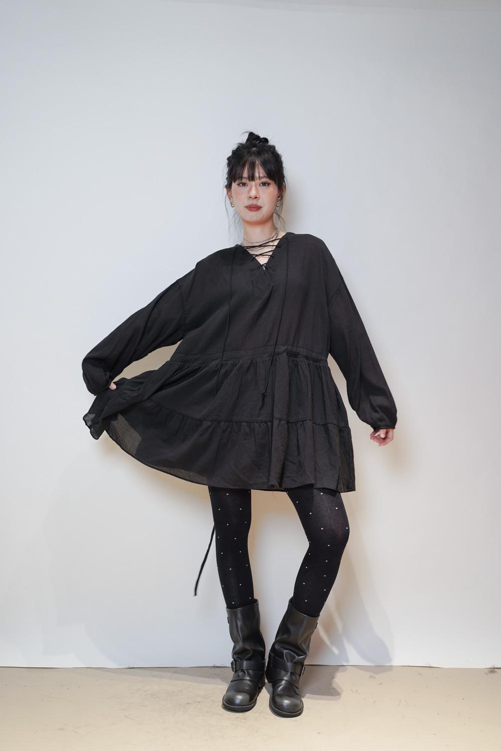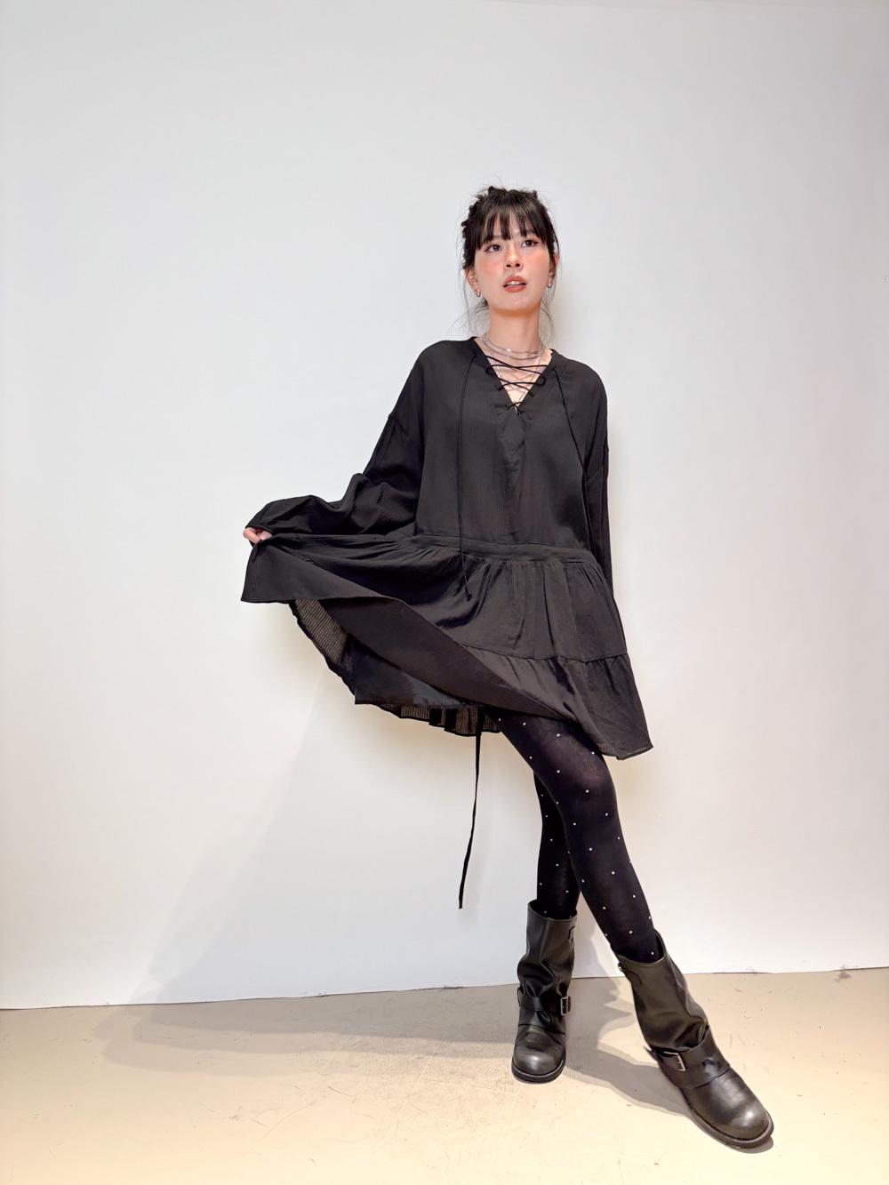Happy price~ cross string boho dress (IVORY/ BLACK)