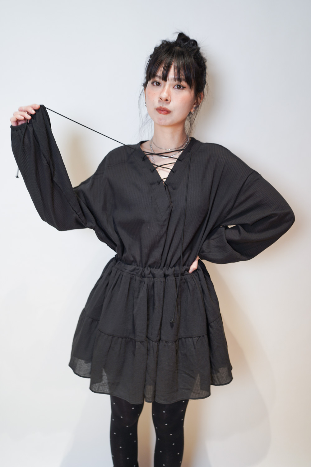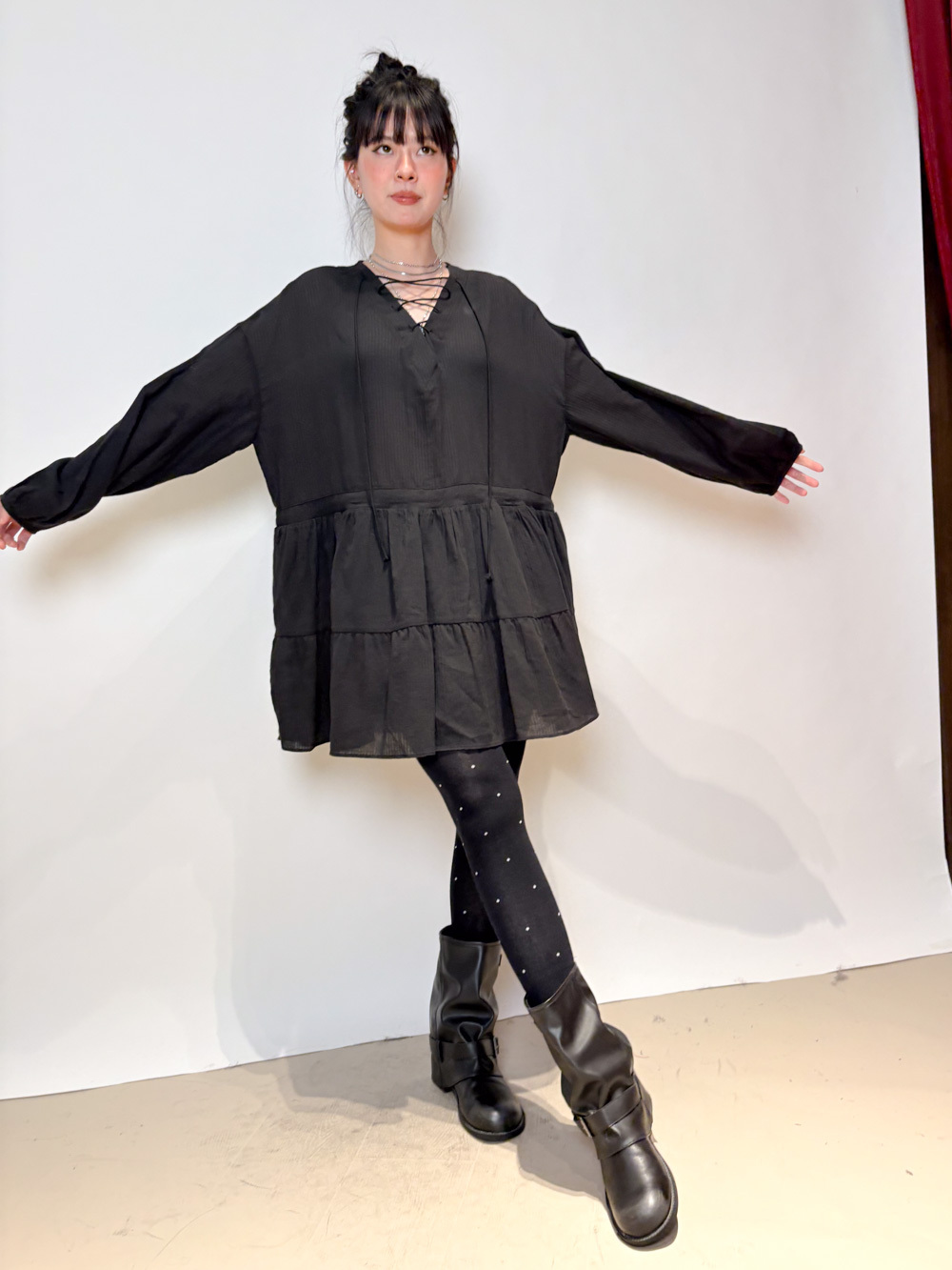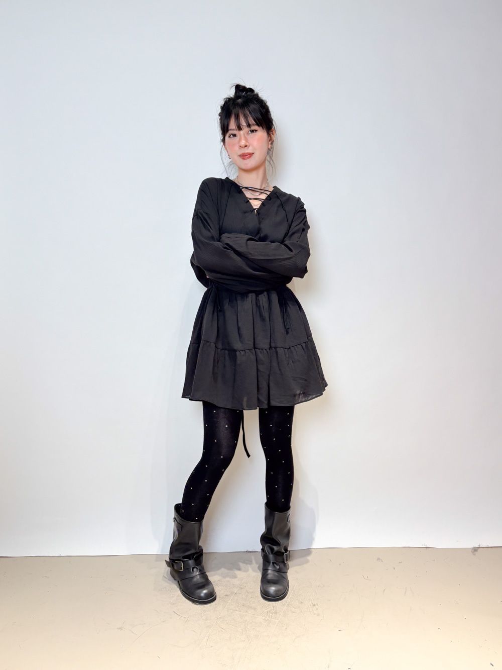 Happy price~ cross string boho dress (IVORY/ BLACK)